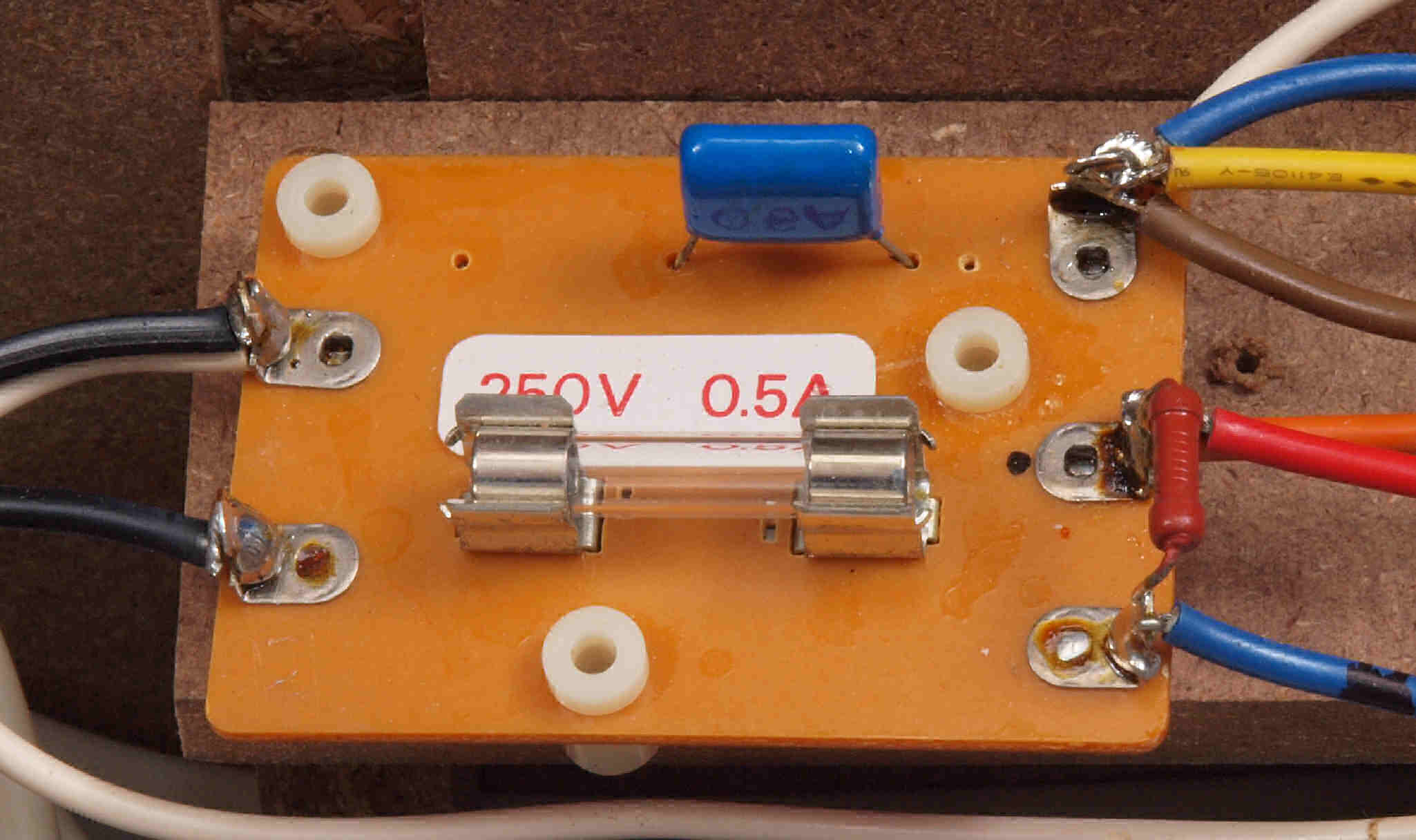 | C61. 修理中 ヒューズ取付け台裏。 | ||||||||||||