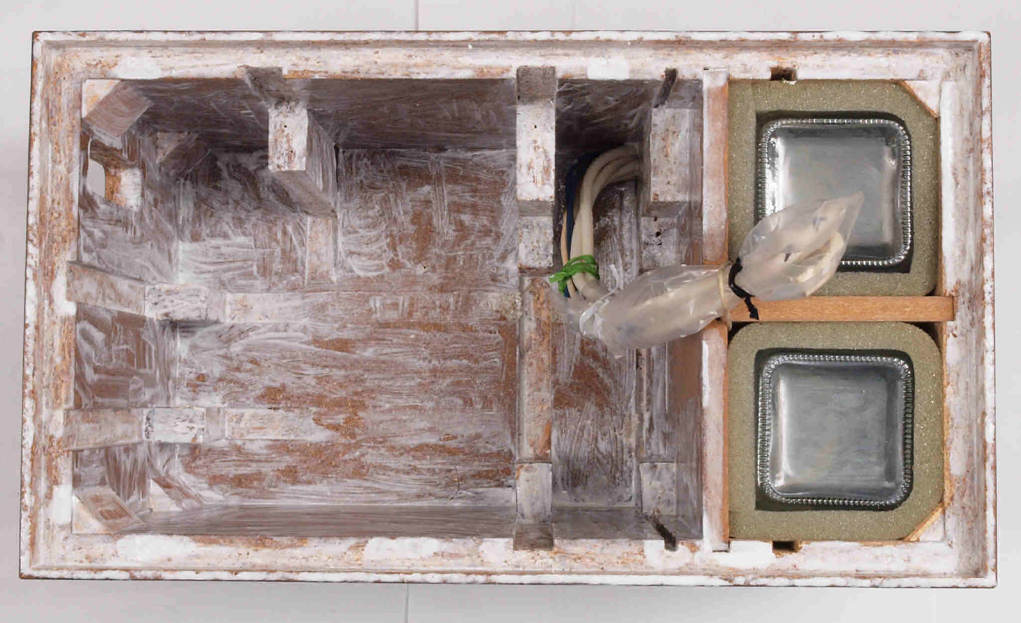 | C41. 修理前 接着材が劣化した木箱圧縮板右側。 | ||||||||||||