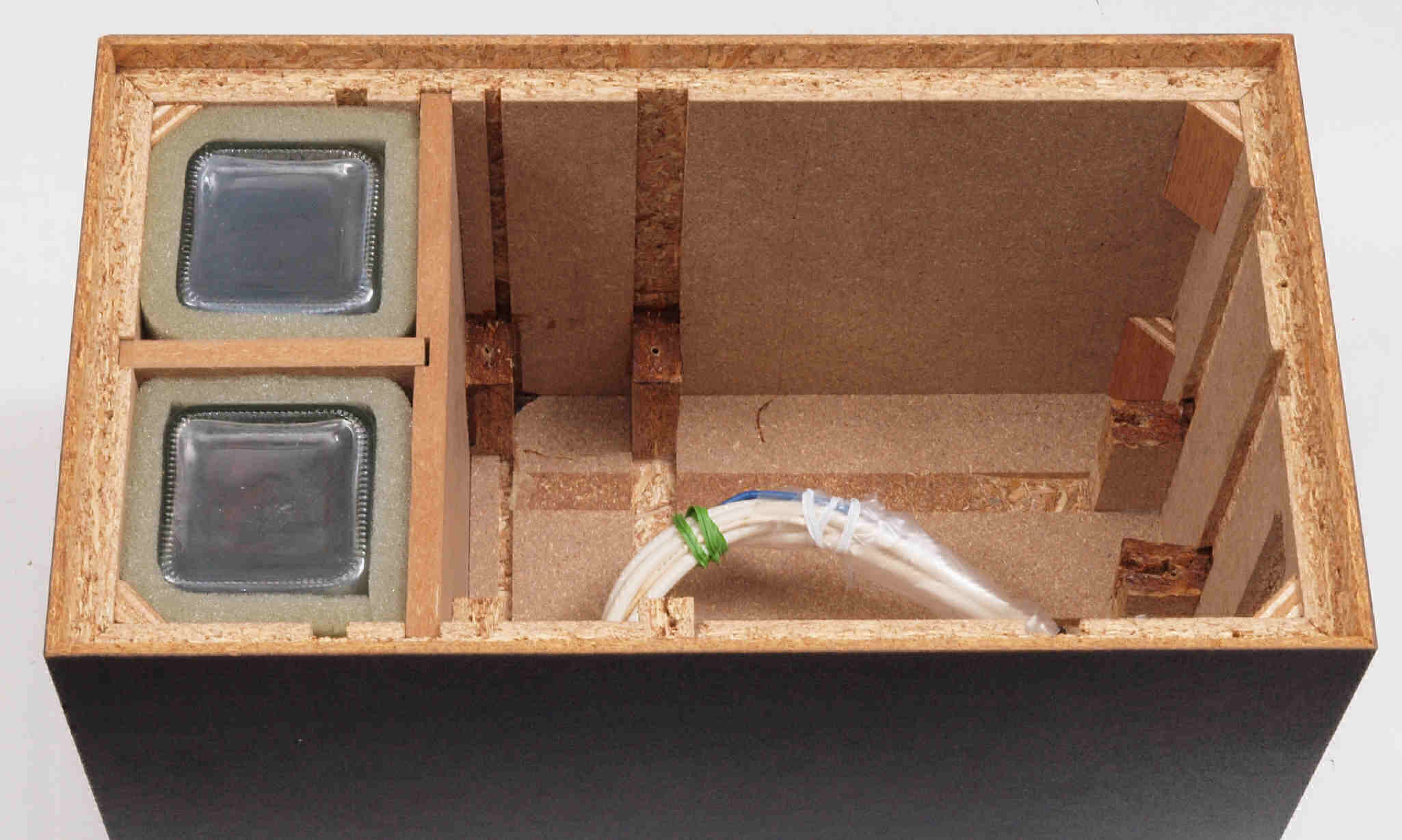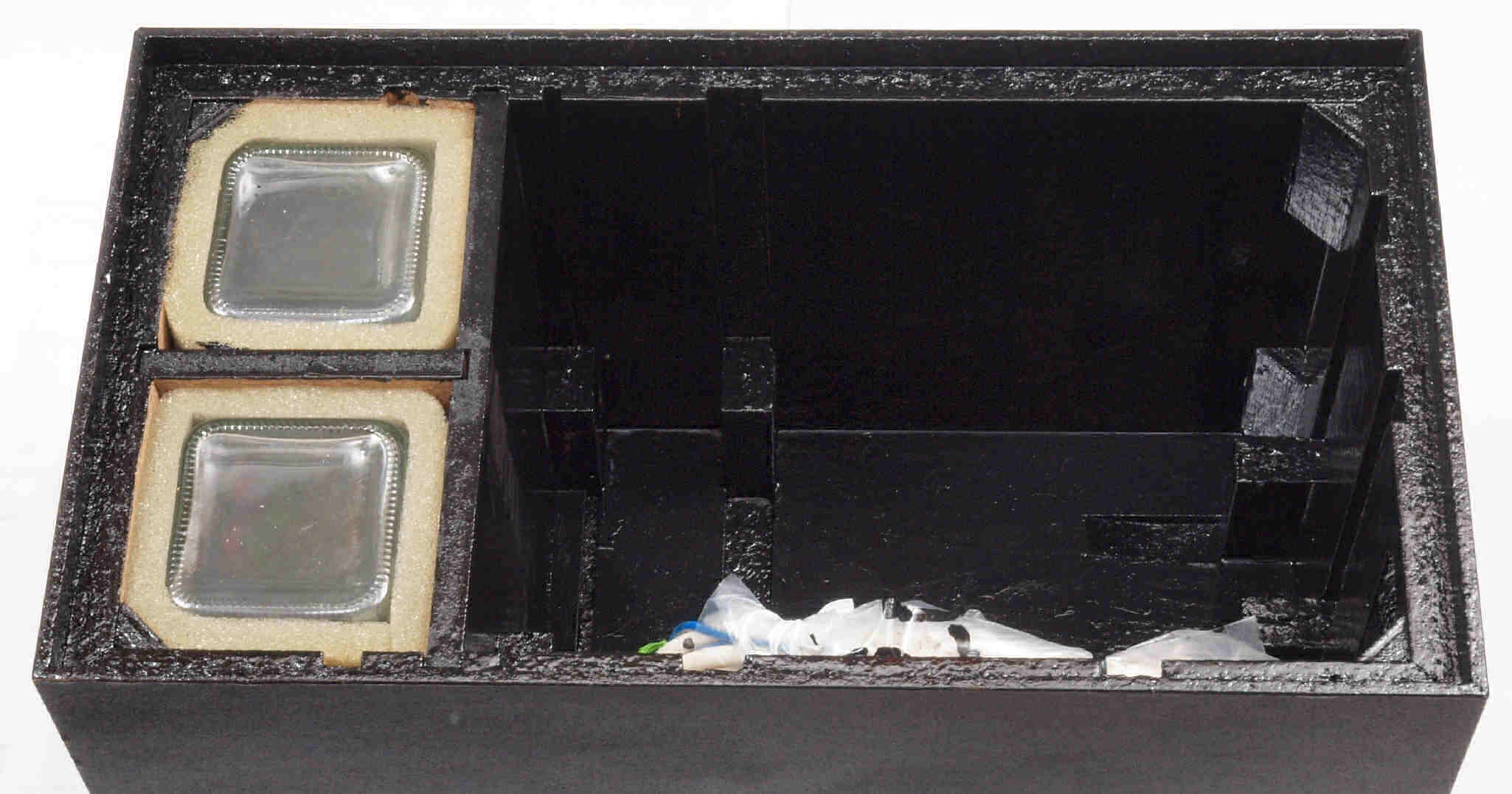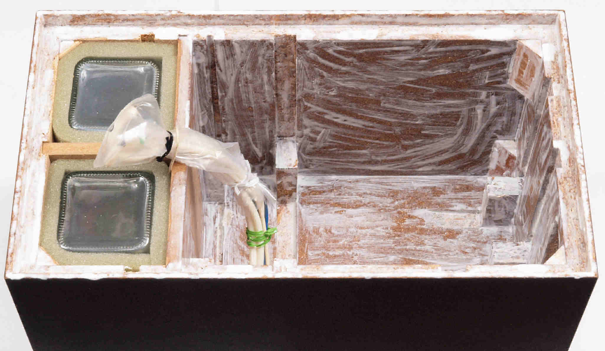 | C44. 修理前 接着材が劣化した木箱圧縮板左側。 | ||||||||||||