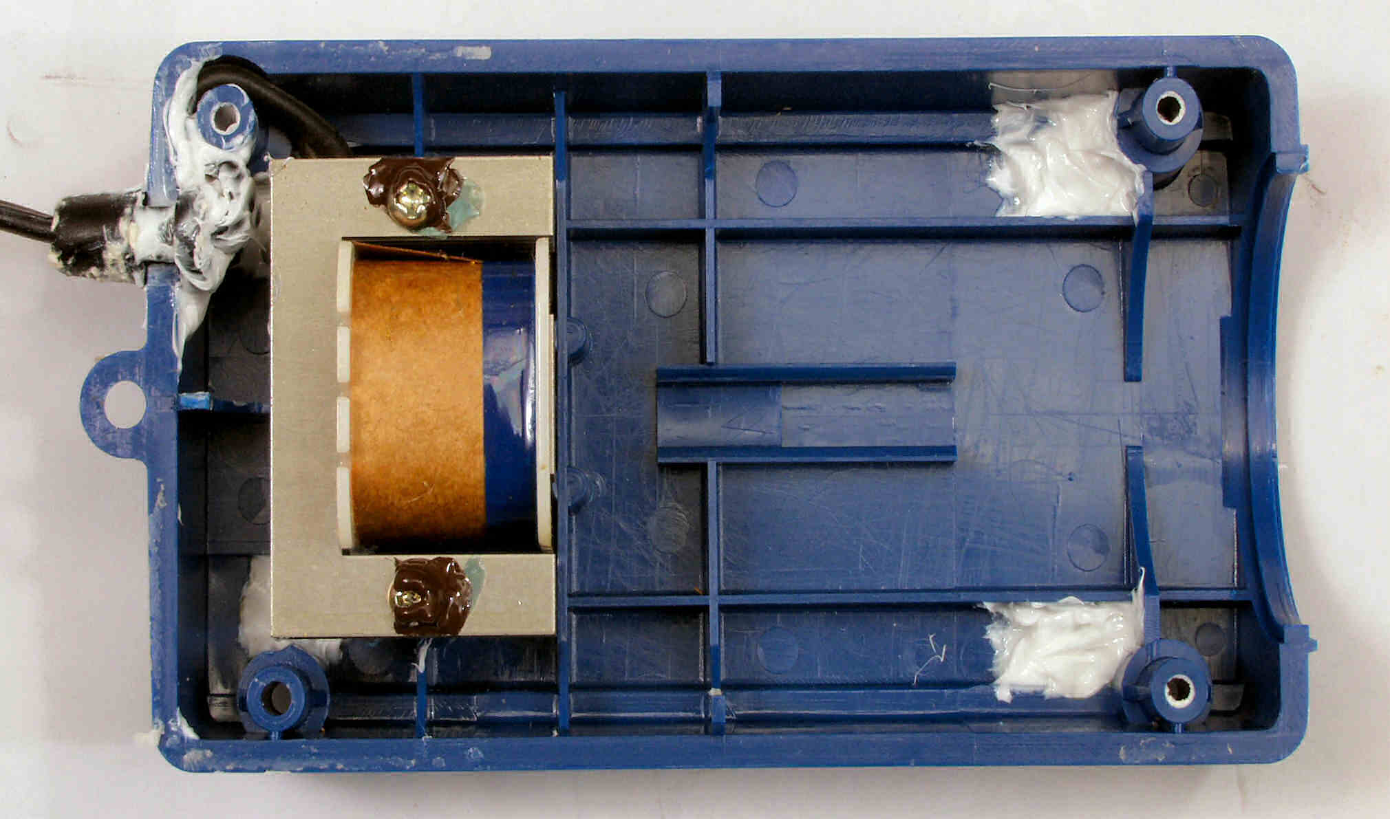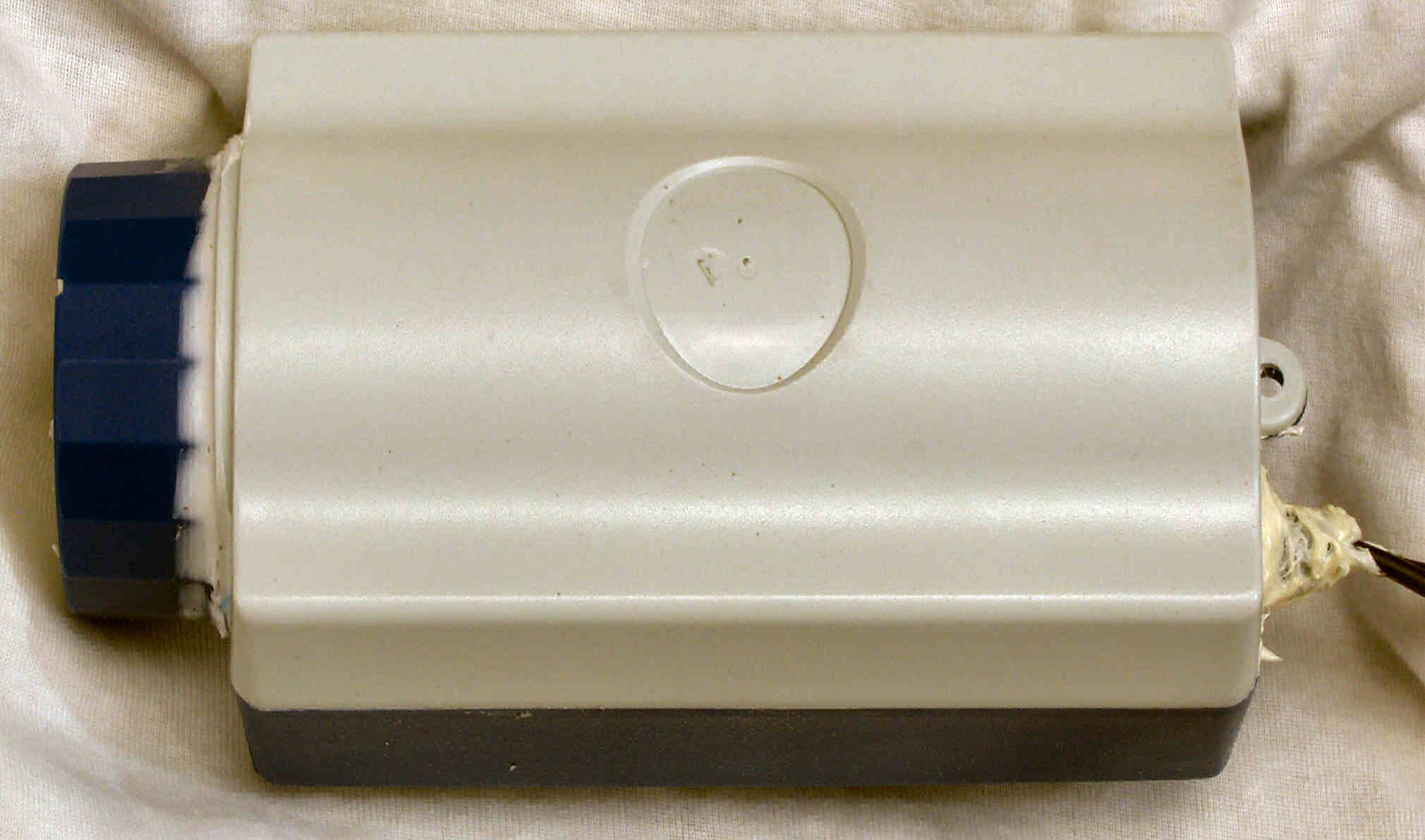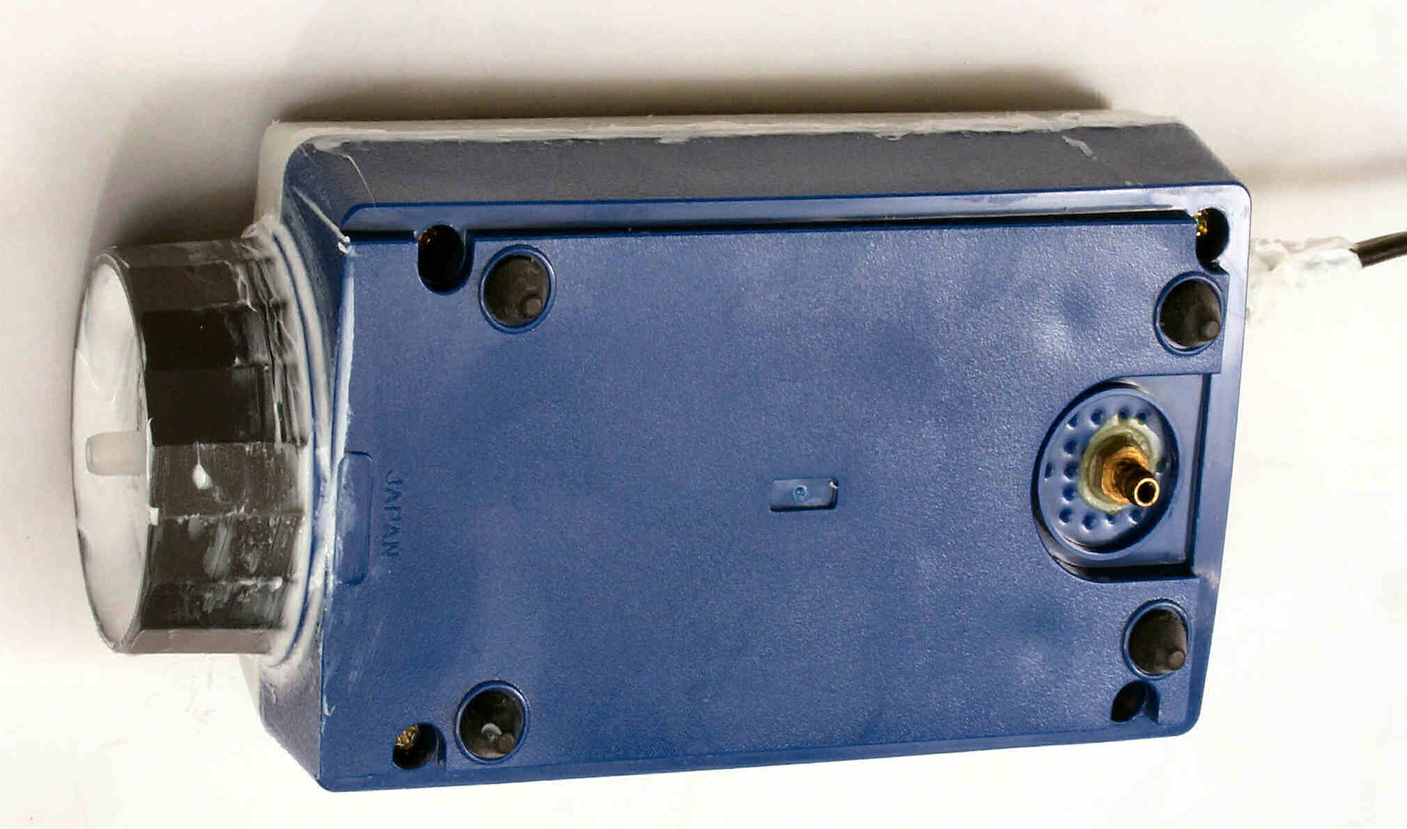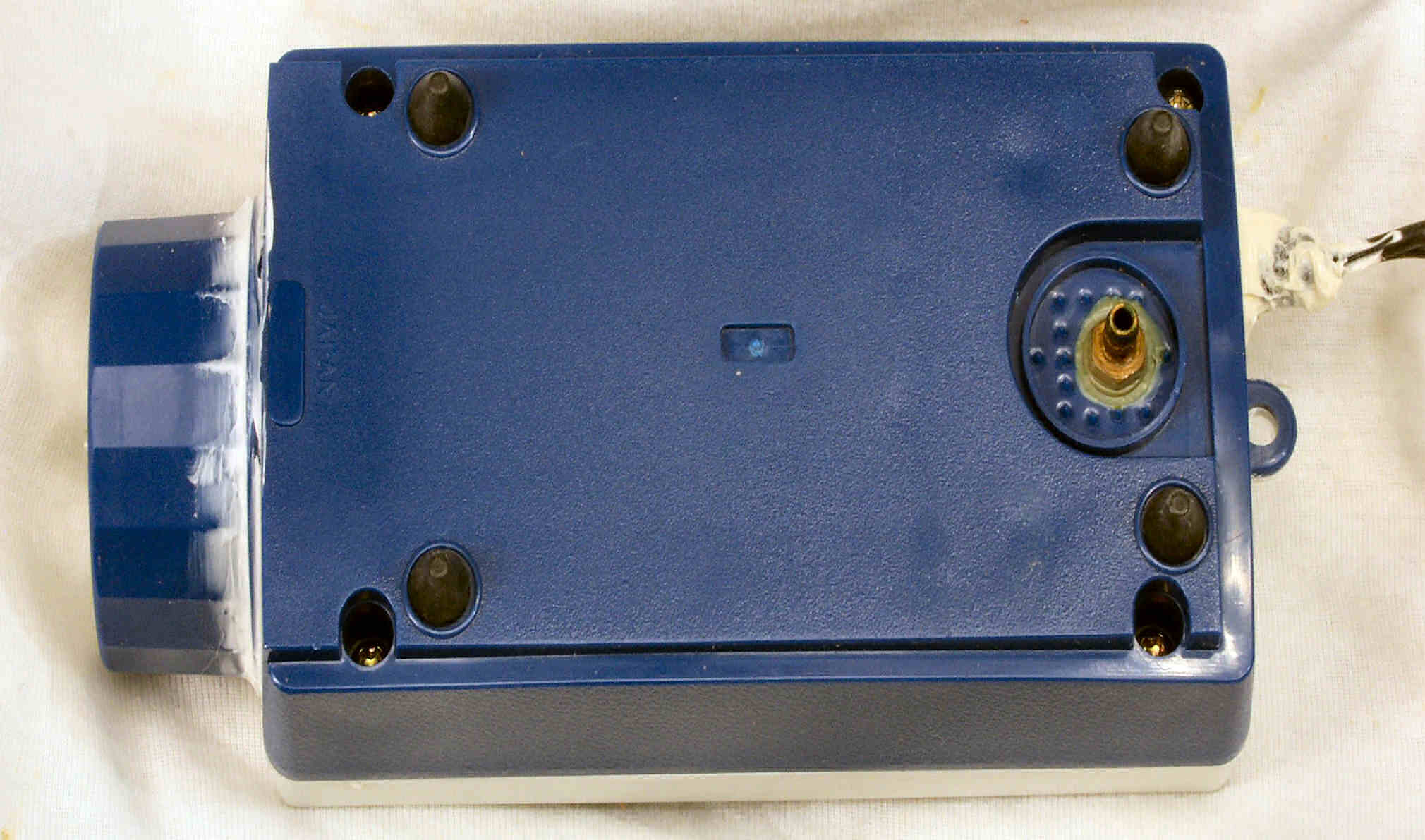 | C. 修理状況 C1A. 修理中、ケース。圧縮材の糊がきかなくなり始めているので、ボンドを塗る。 又、何回もネジを開閉したので、ネジ穴が大きくなり、効かない。 |