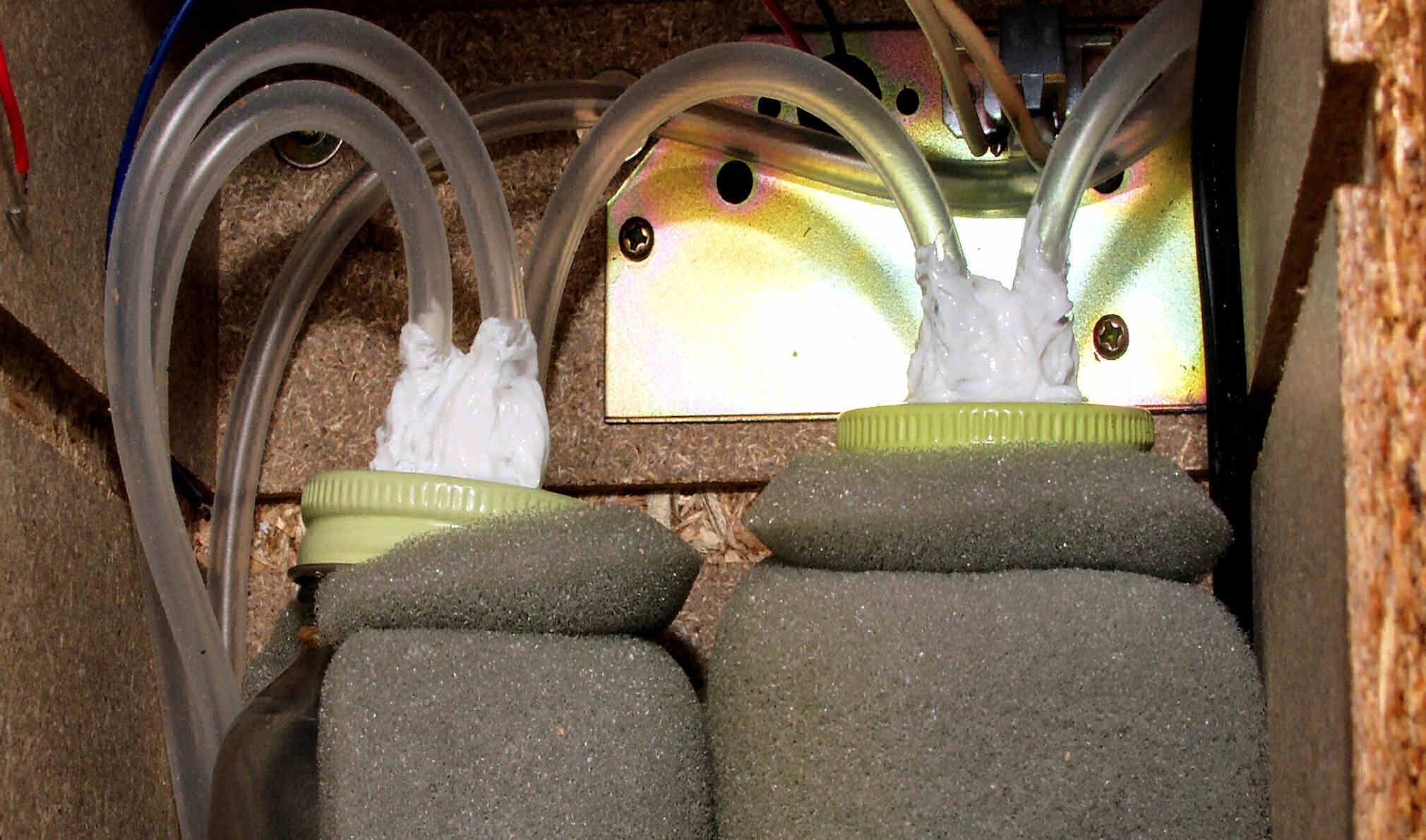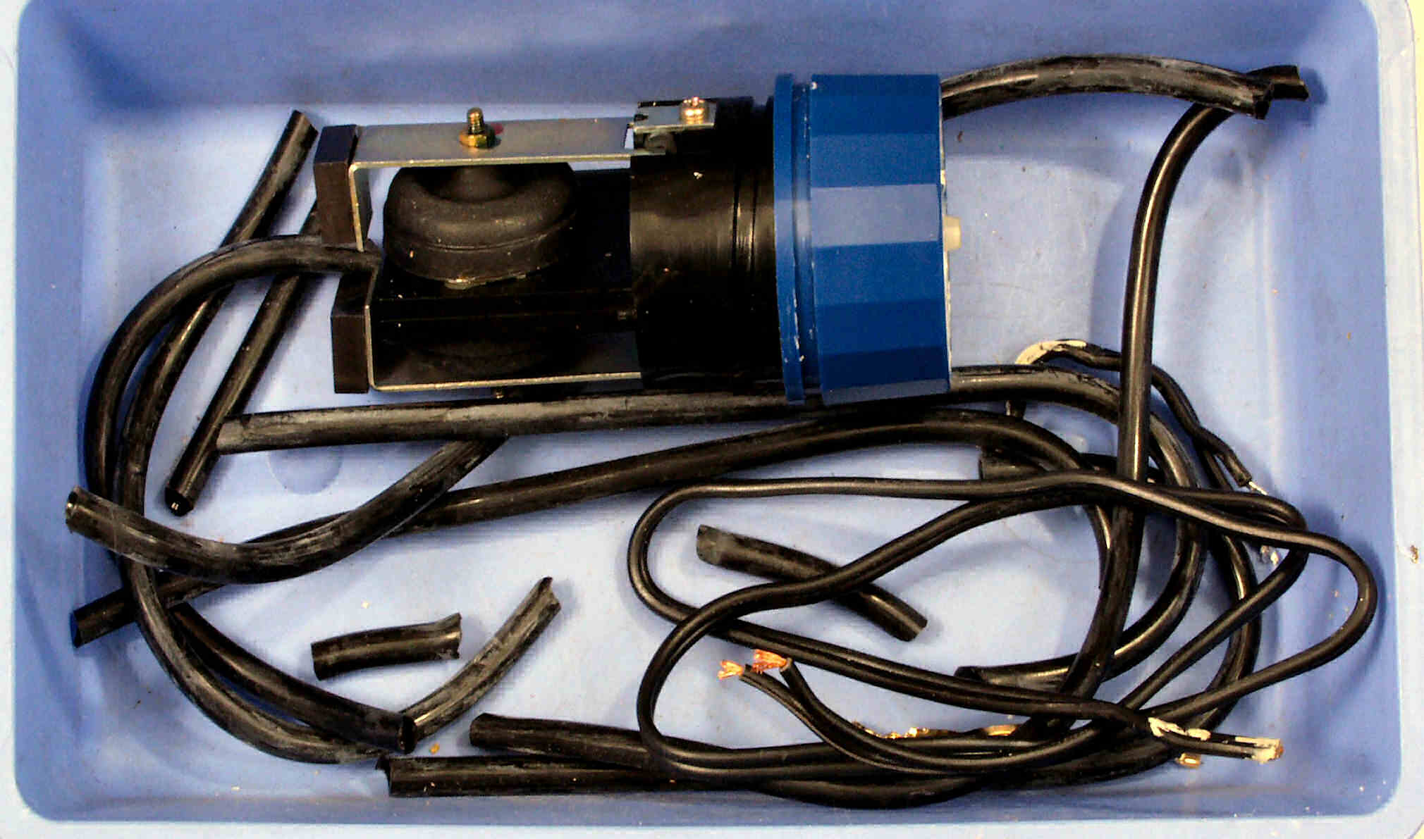 | A2A. 点検中 蓋を取り、ポンプをどかす。 ホースがカチカチであちらこちらでヒビが入り。直ぐに折れる。 |