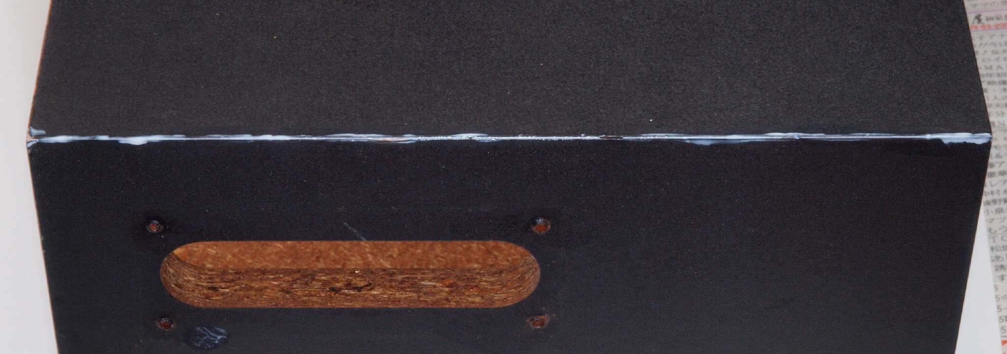 | CD1. 修理中 外箱角のビニールクロス、 突き合わせにボンドを流し込む。 |