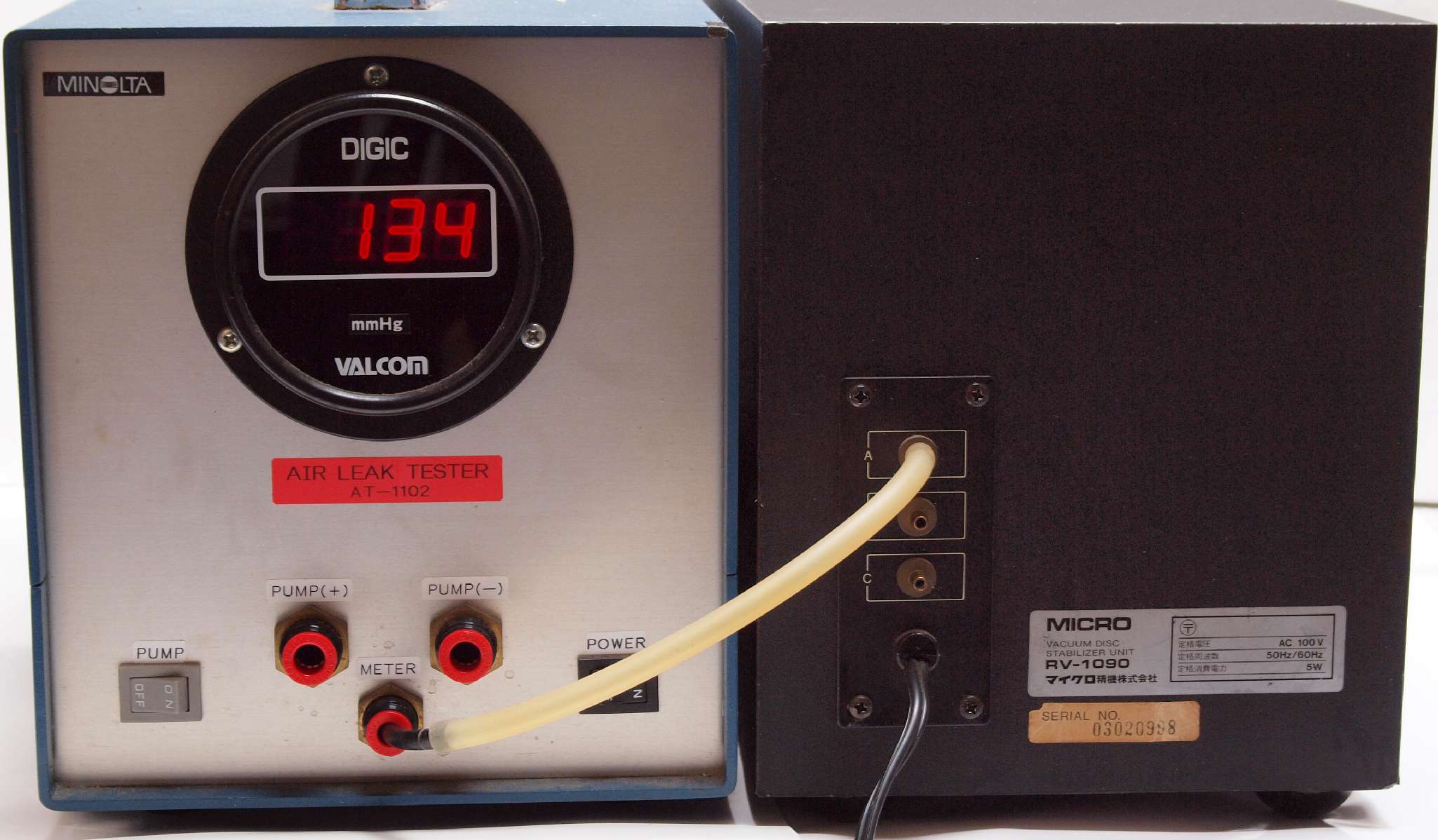| E2. 「B=吸い込」 の圧力測定。 Aより低いのは圧力調整バイパスが有る為。 |