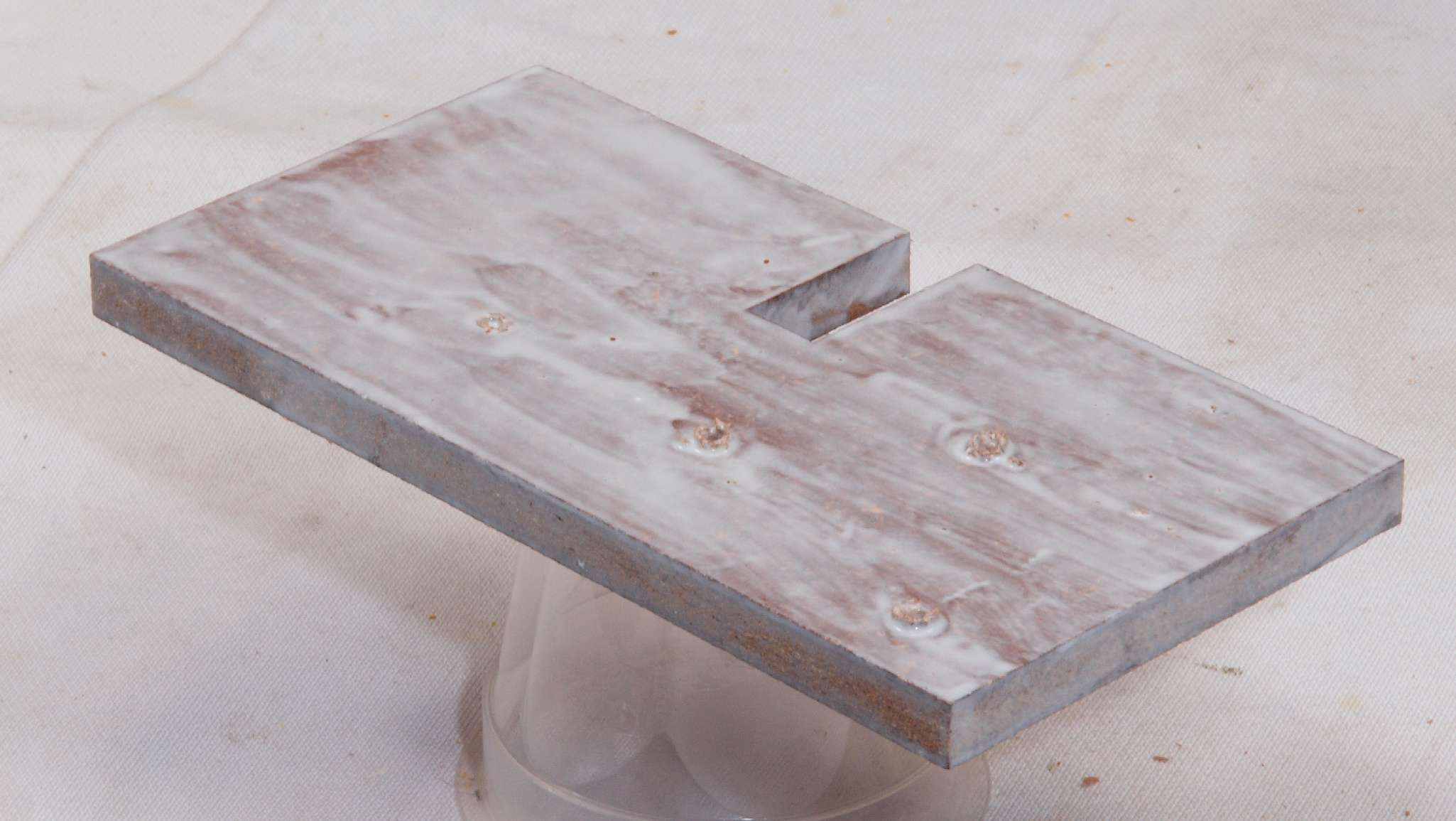 | C38. 修理中 圧縮板にボンドを塗って固める。左側。 |