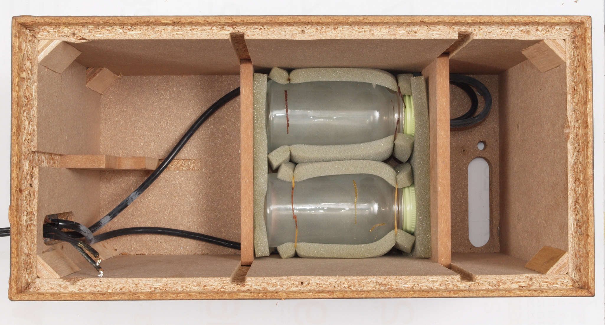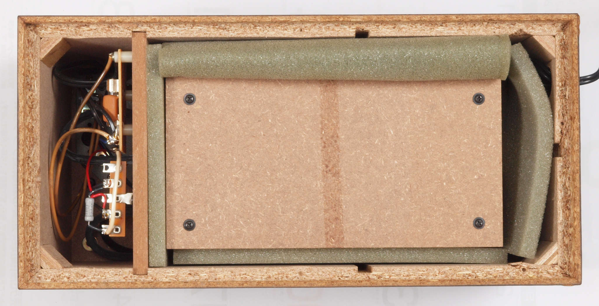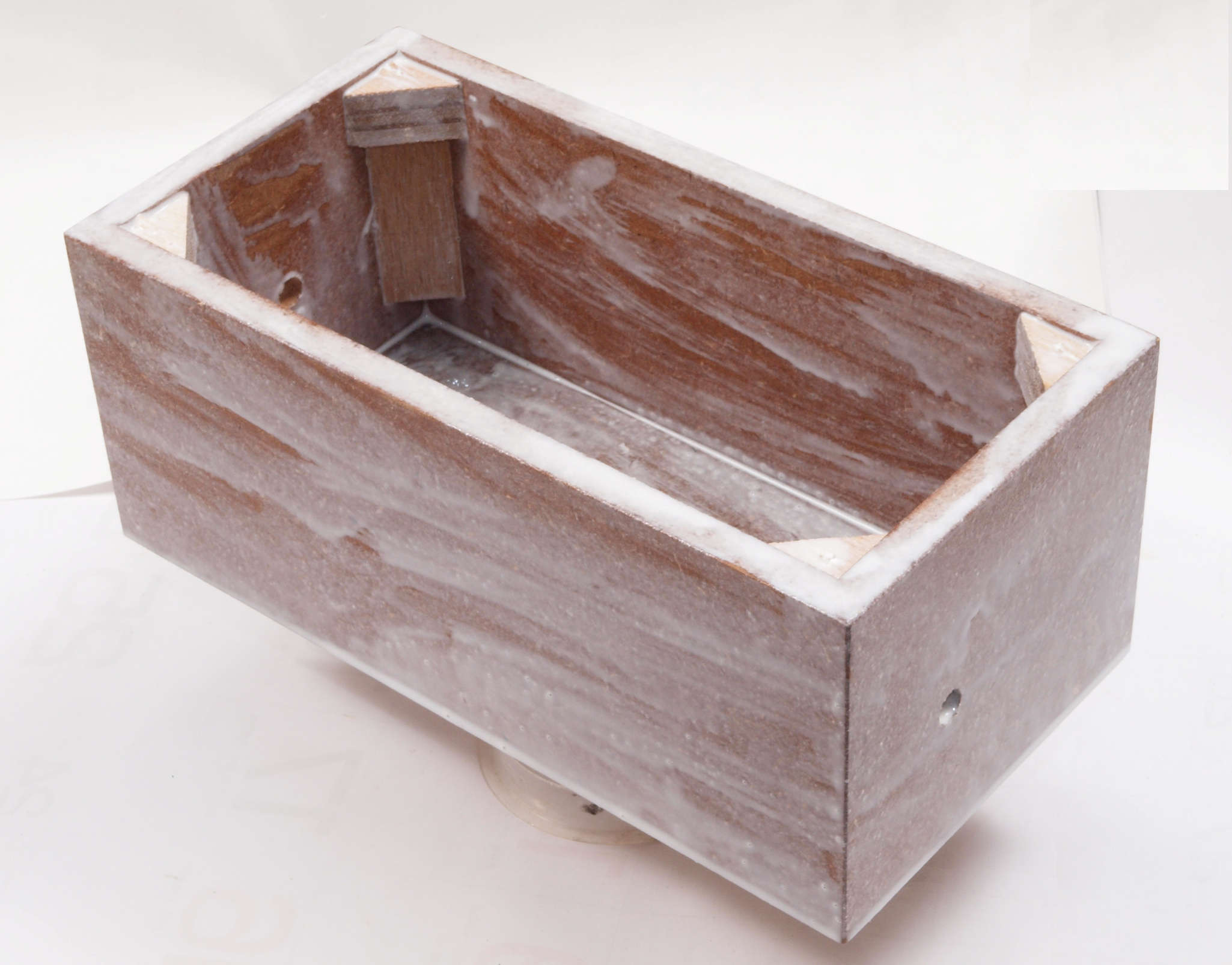 | C95. 修理中 ポンプケース木箱後左。圧縮板にボンドを塗って固める。 |