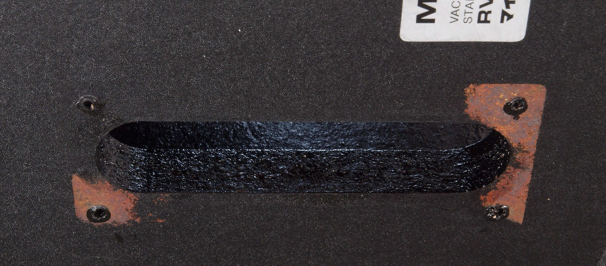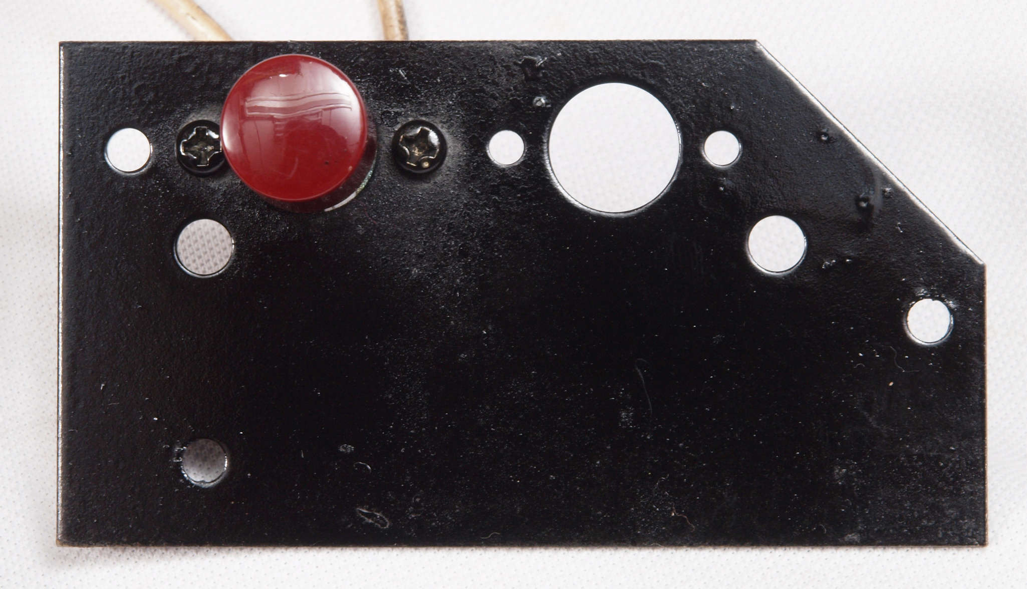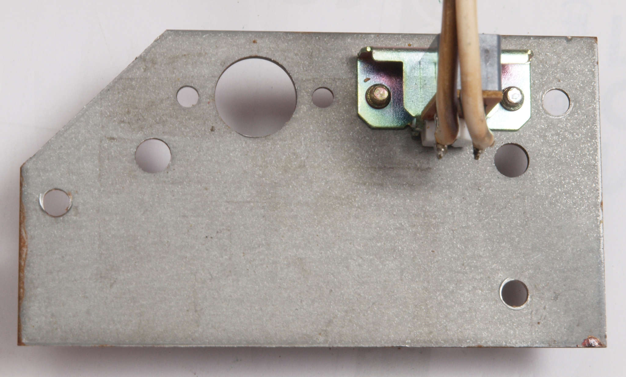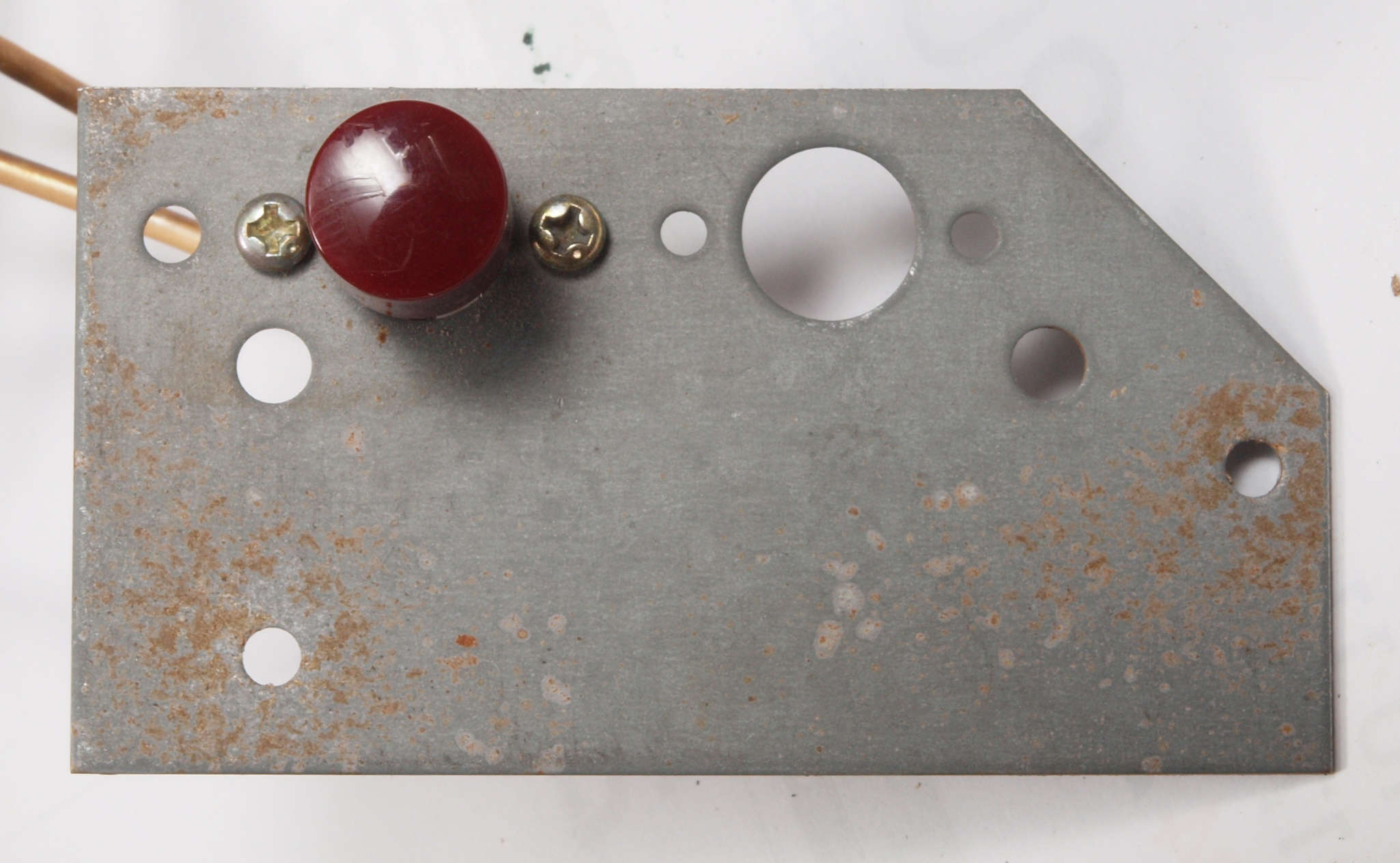 | CB2. 修理(塗装)後 電源SW取り付け板表。 プシュボタンが接着し有るのでこのまま、錆を落とし塗装する。 |
