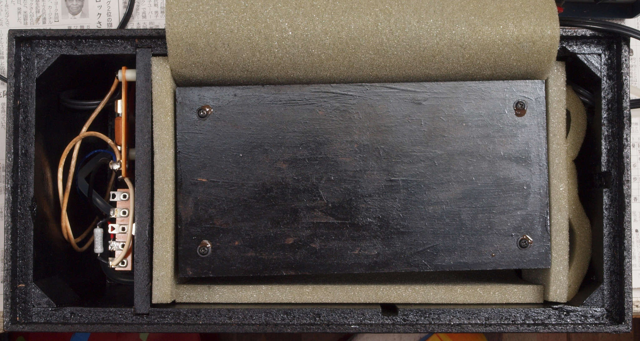 | 中 ヒューズ基板への電源コードが接続されている。過去の修理時か? |