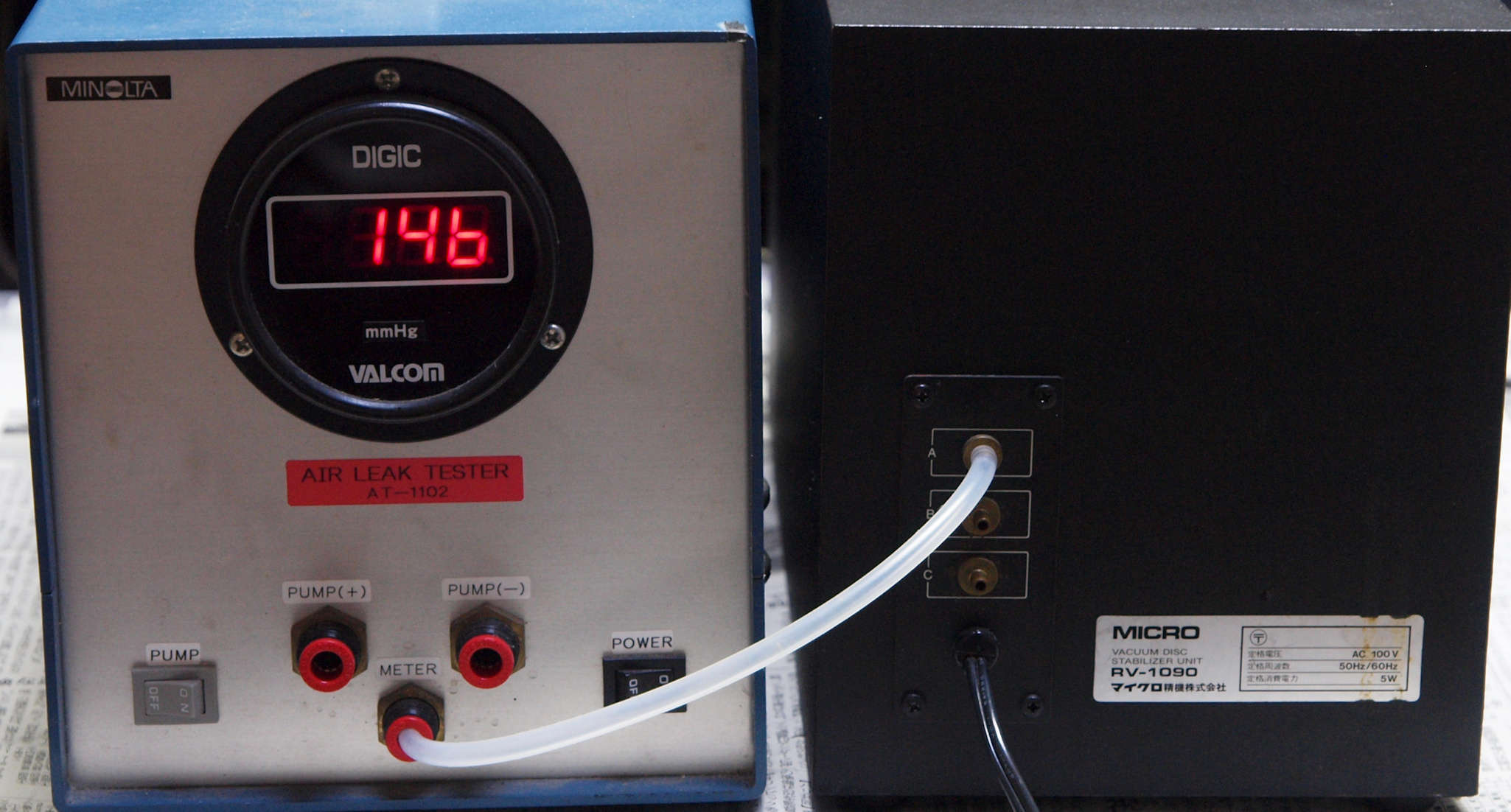 | E2. 「B=吸い込」 の圧力測定。 Aより低いのは圧力調整バイパスが有る為。 |