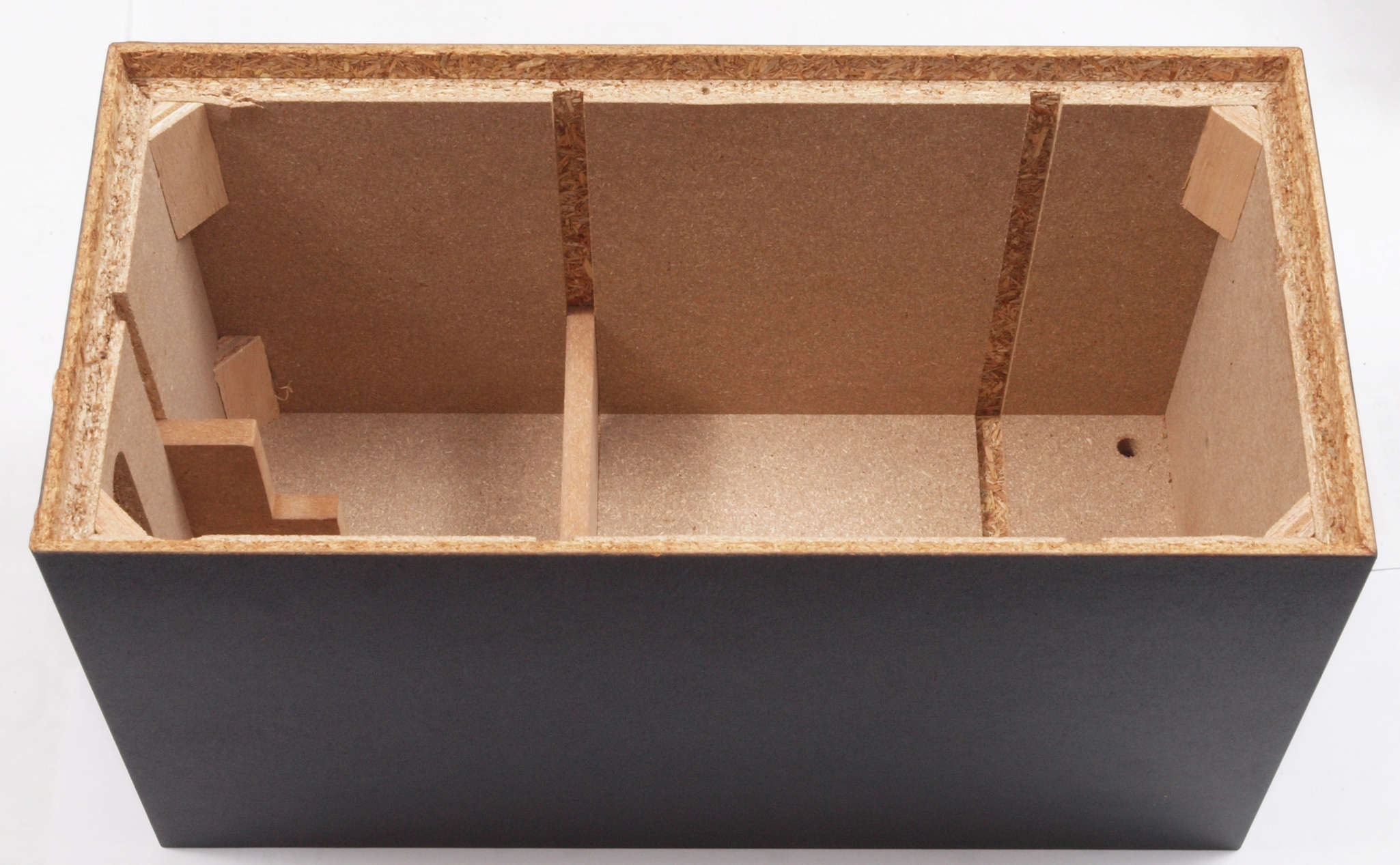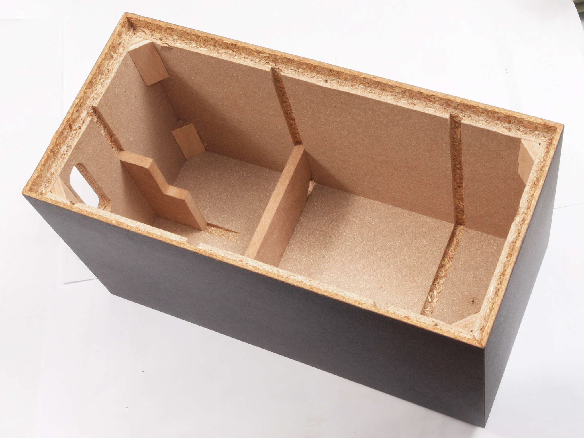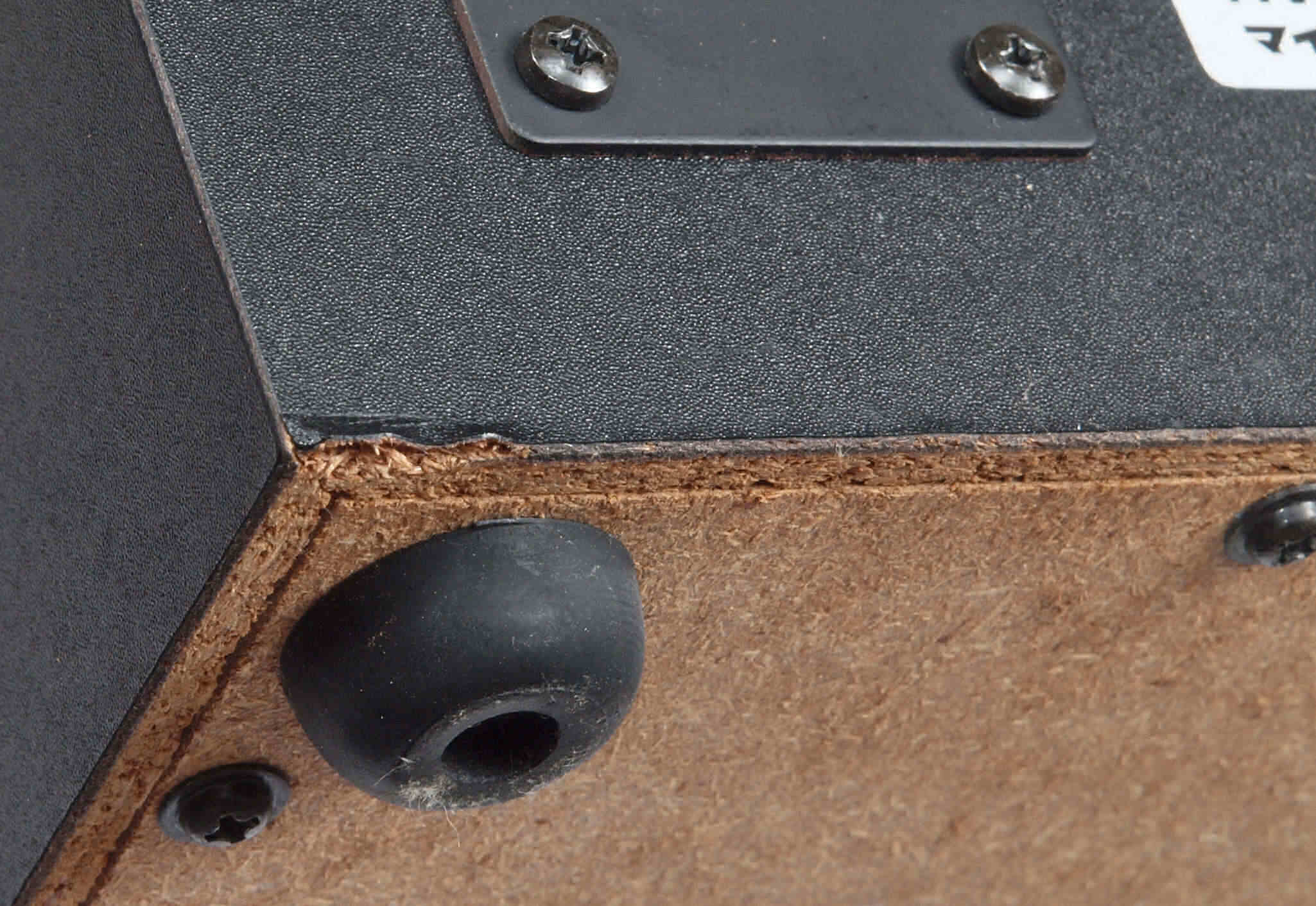 | C31. 修理前 接着材が劣化した木箱。左後内側見る。 |
