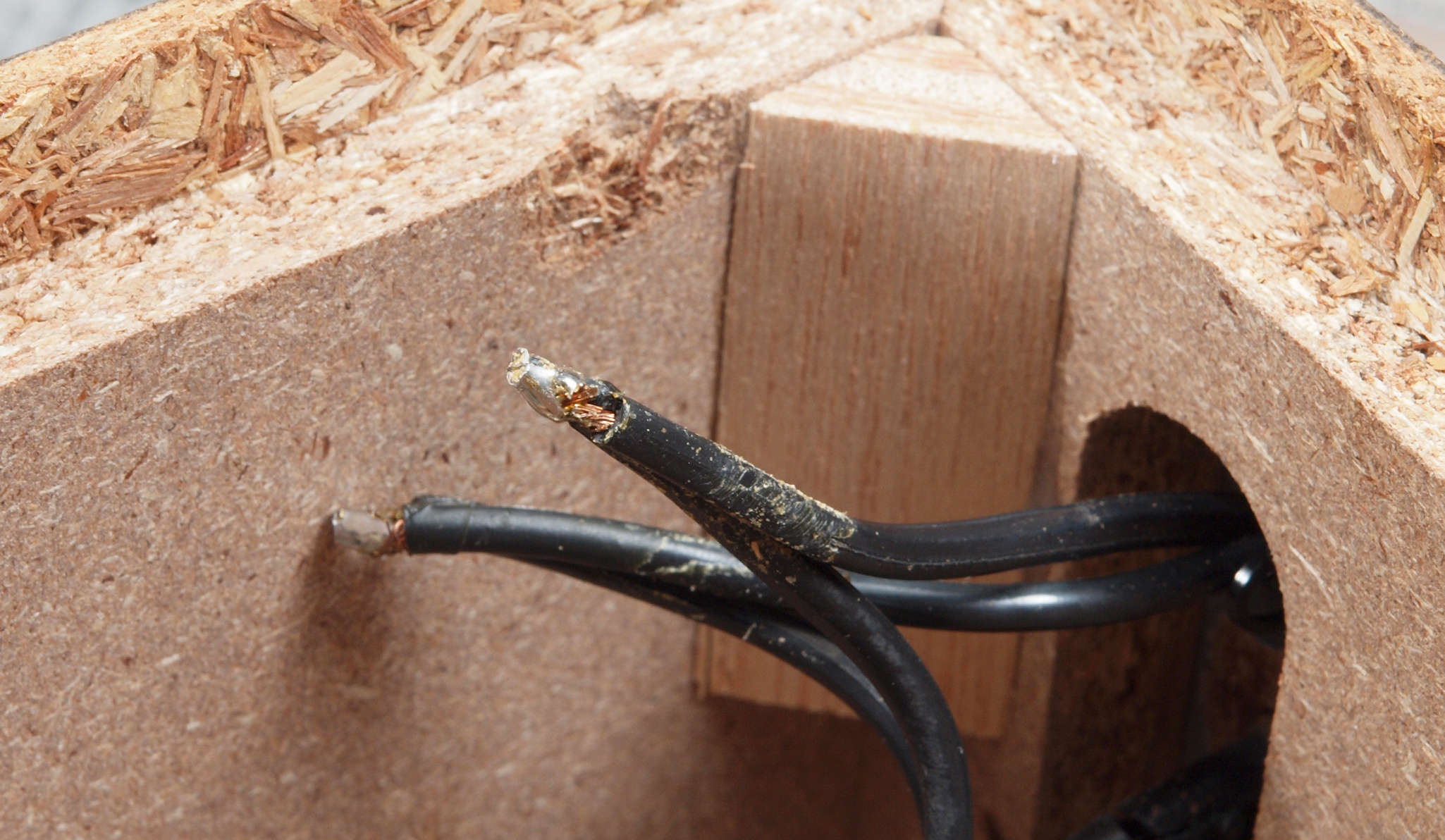 | A42. 点検中 ヒューズ基板への電源コードが接続。 半田されている。 |