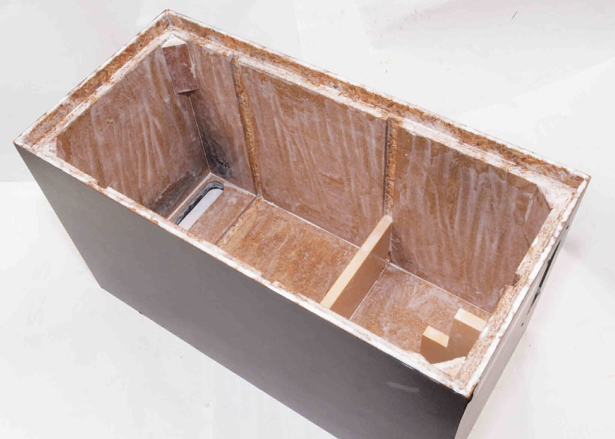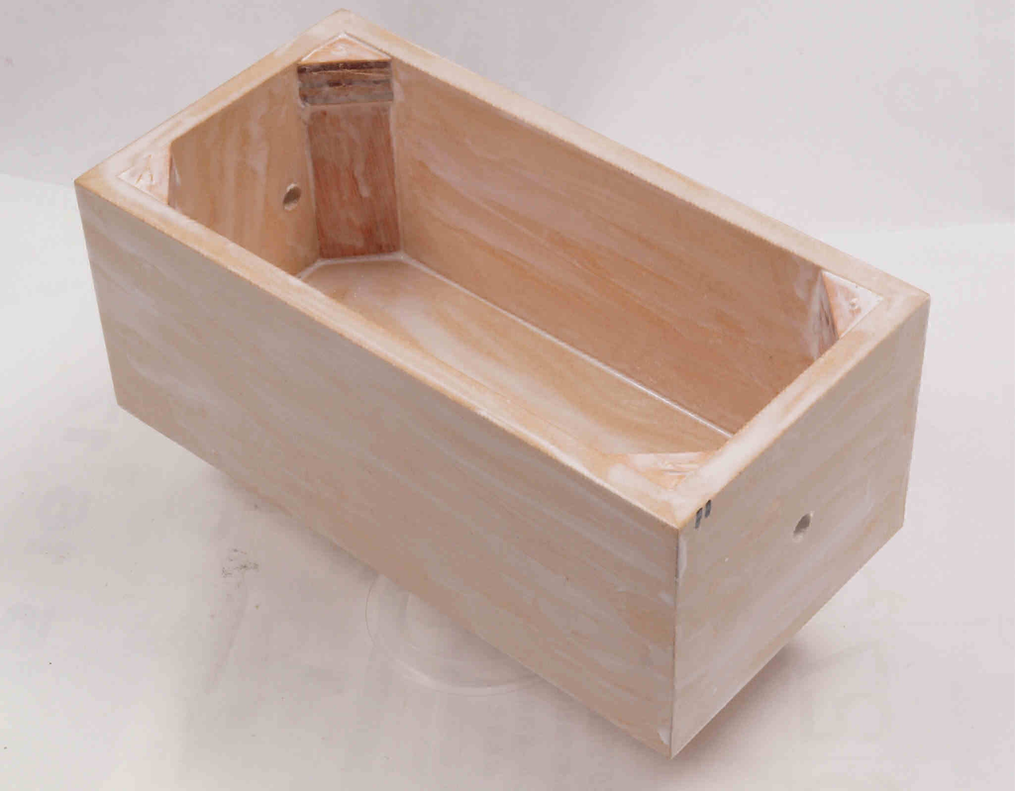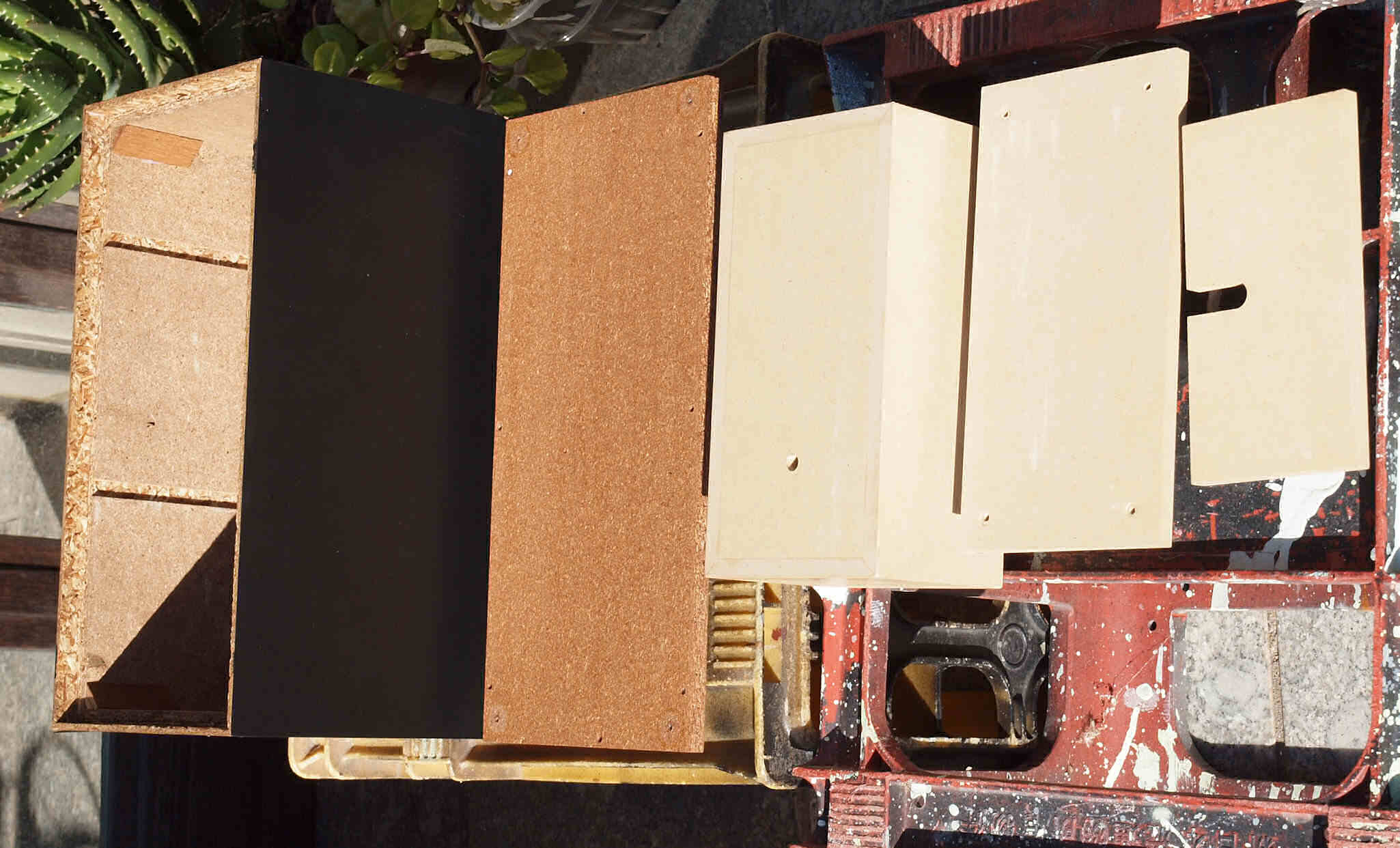 C37. 修理前 接着材が劣化した木箱。後左側。