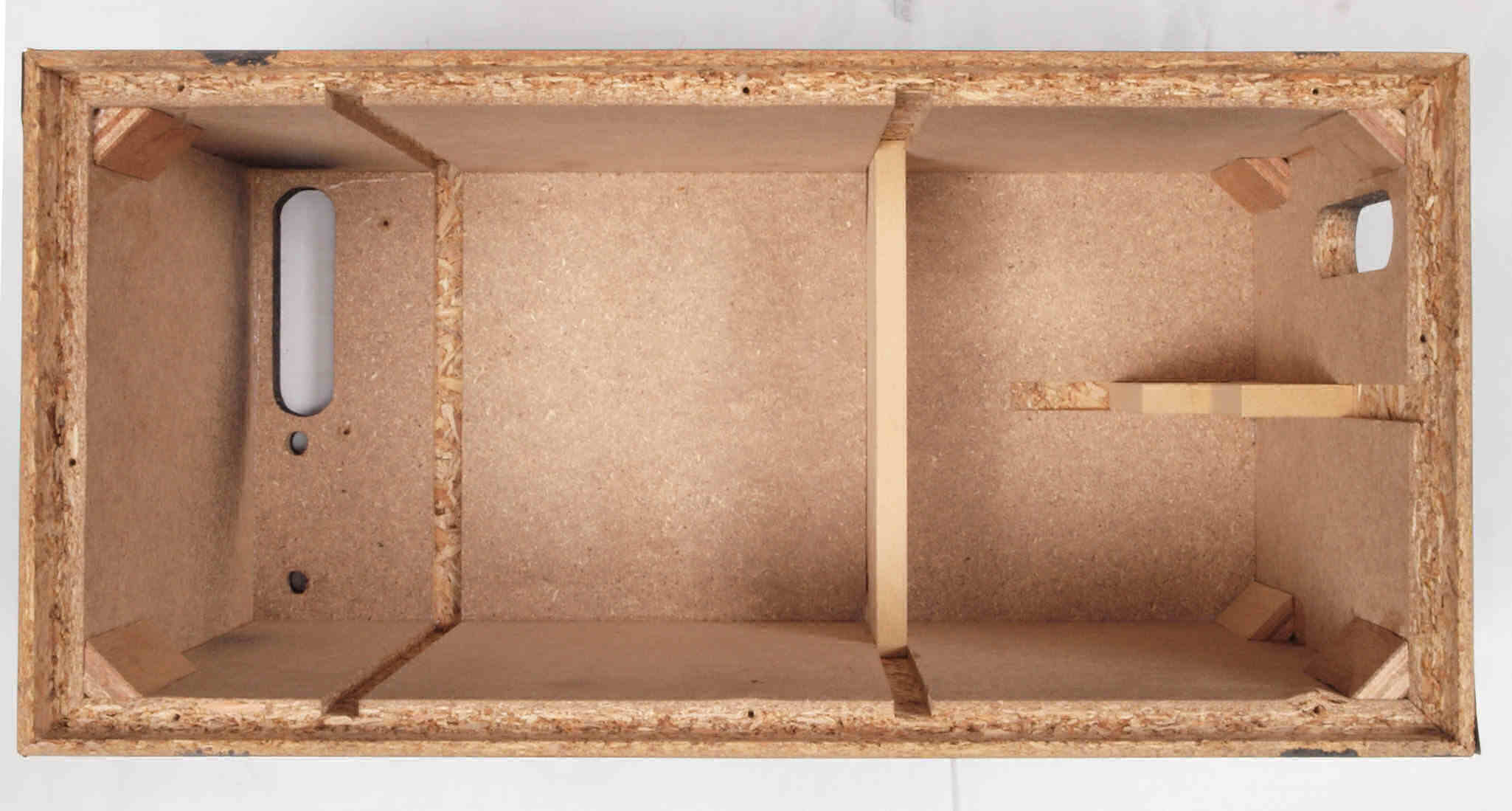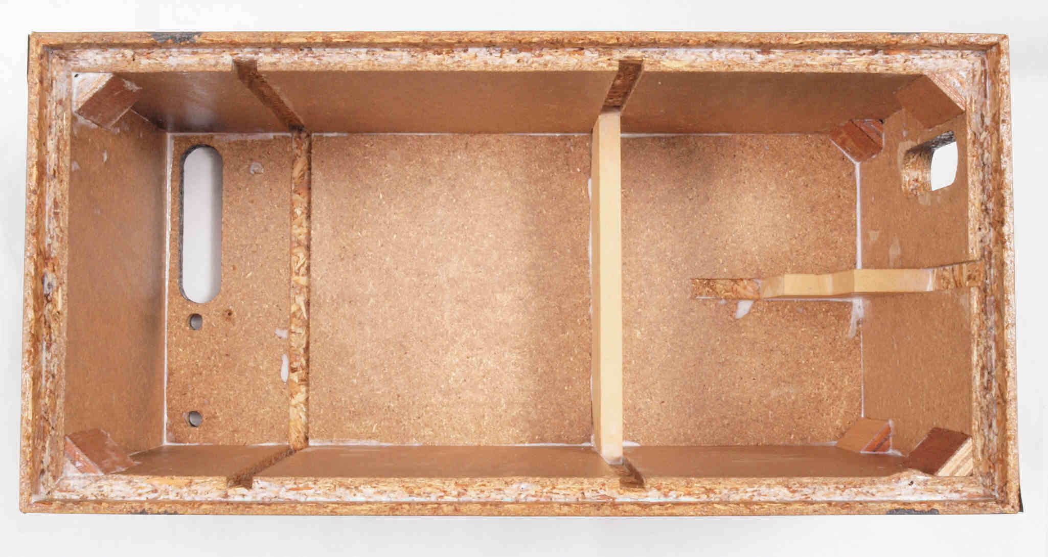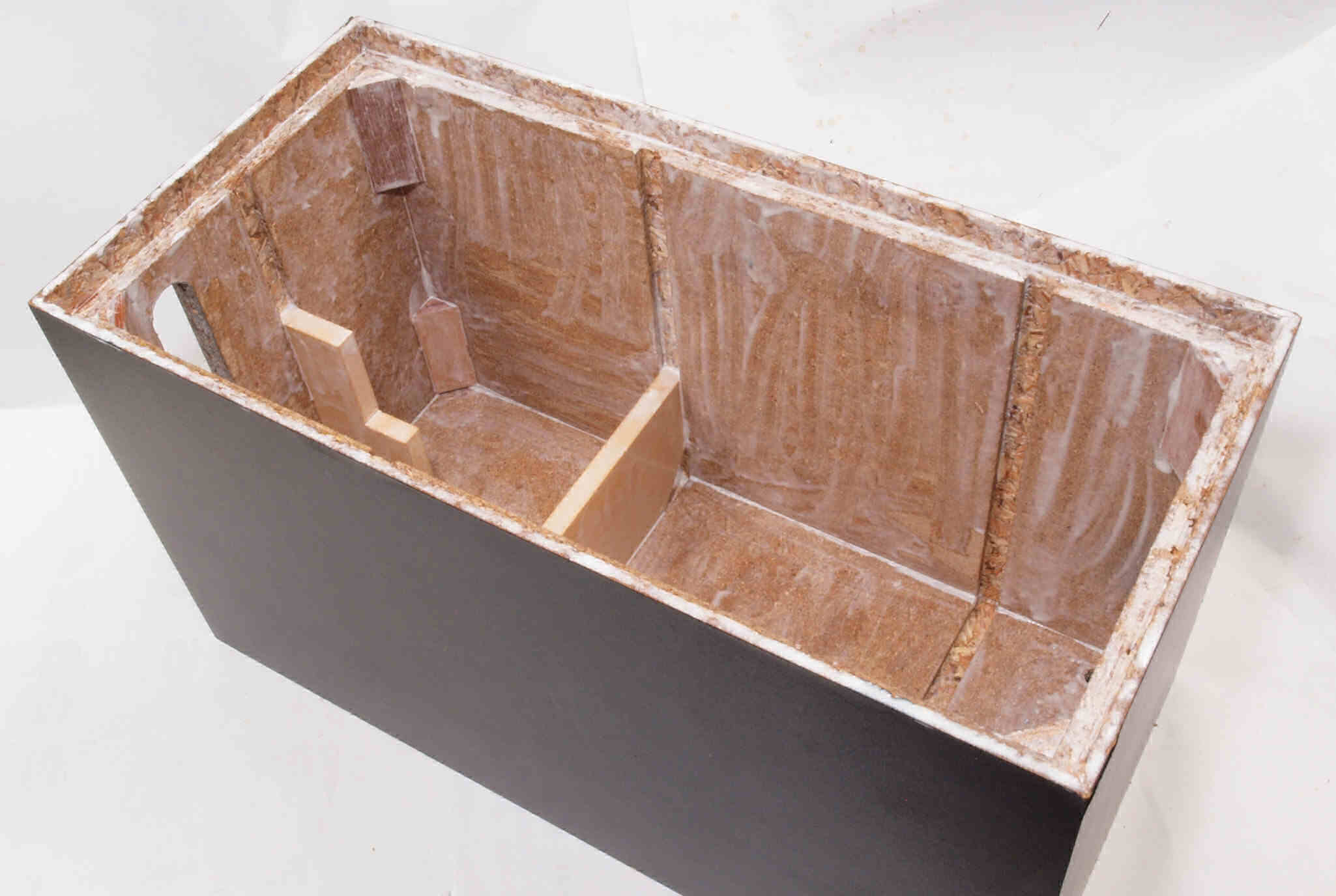 C37. 修理前 接着材が劣化した木箱。後左側。