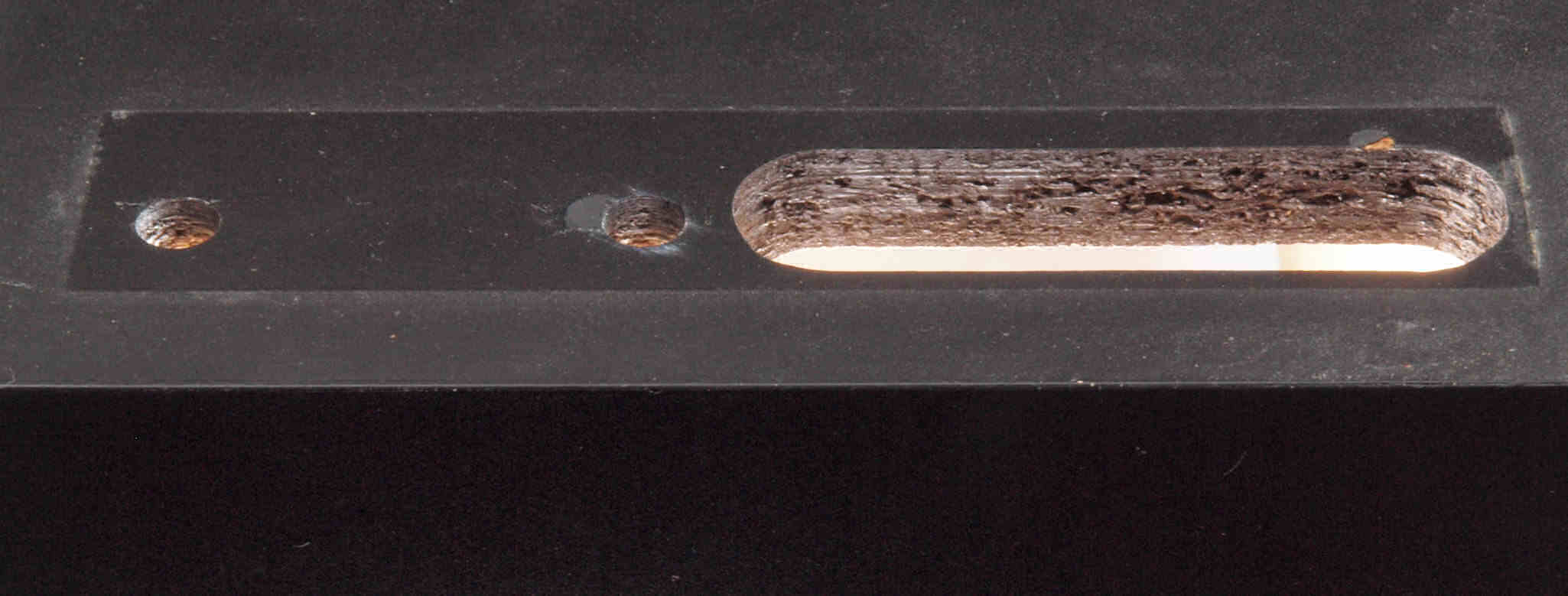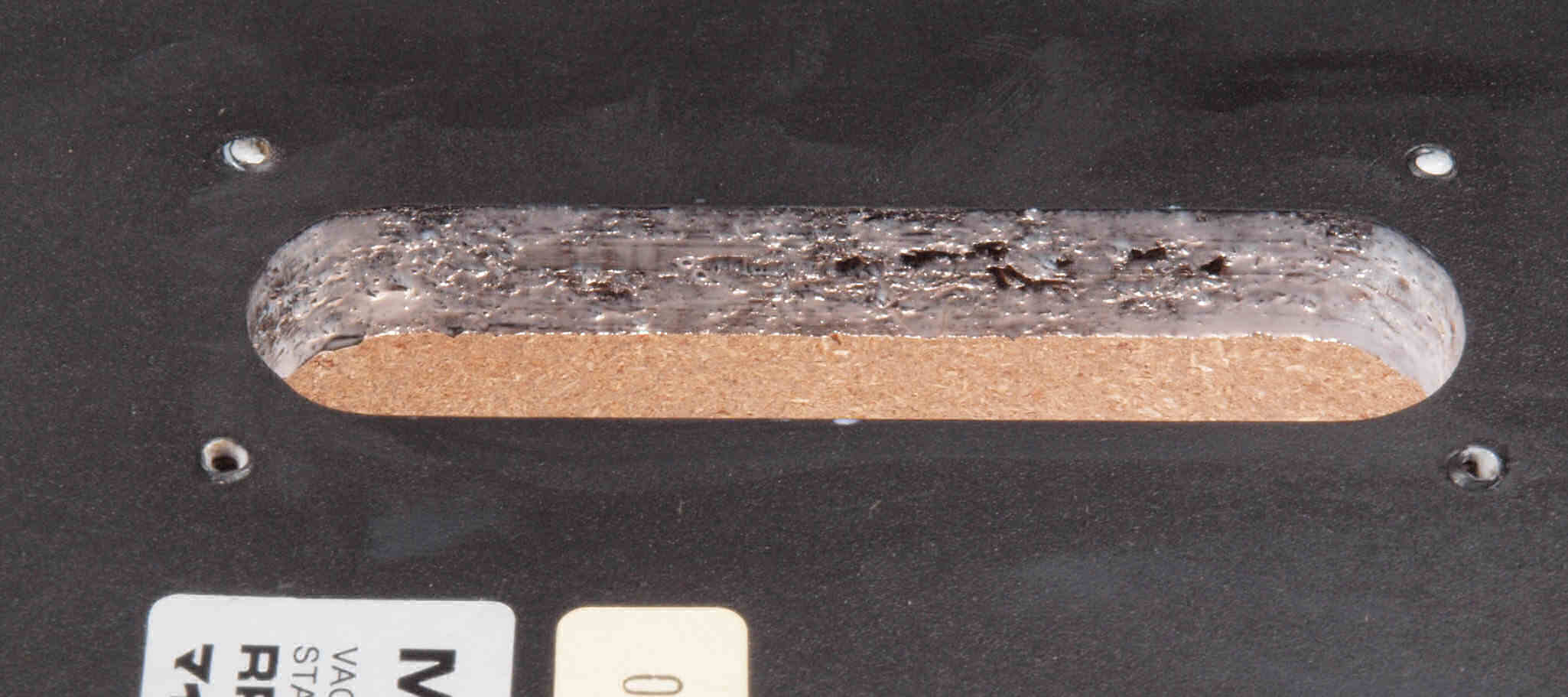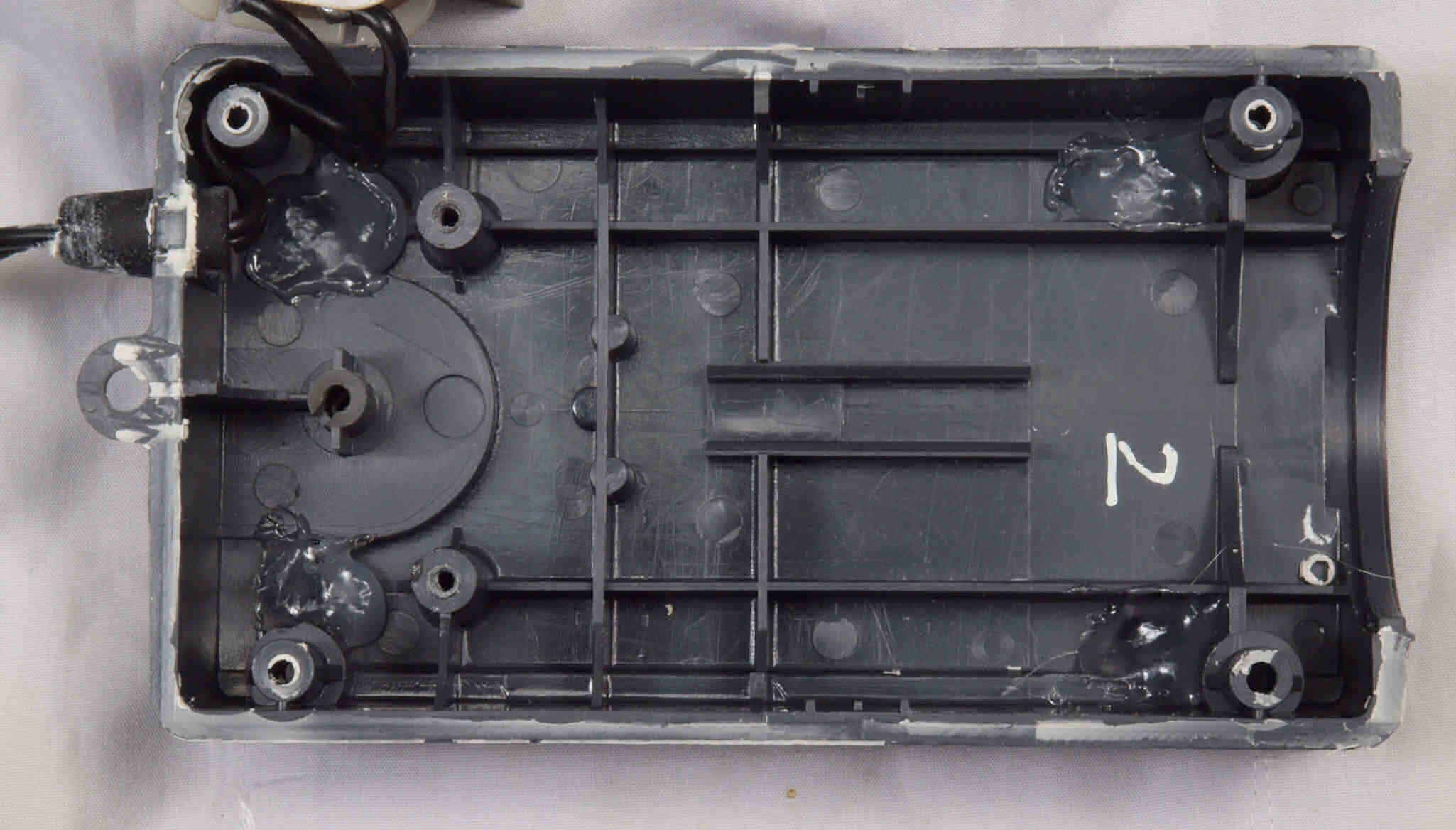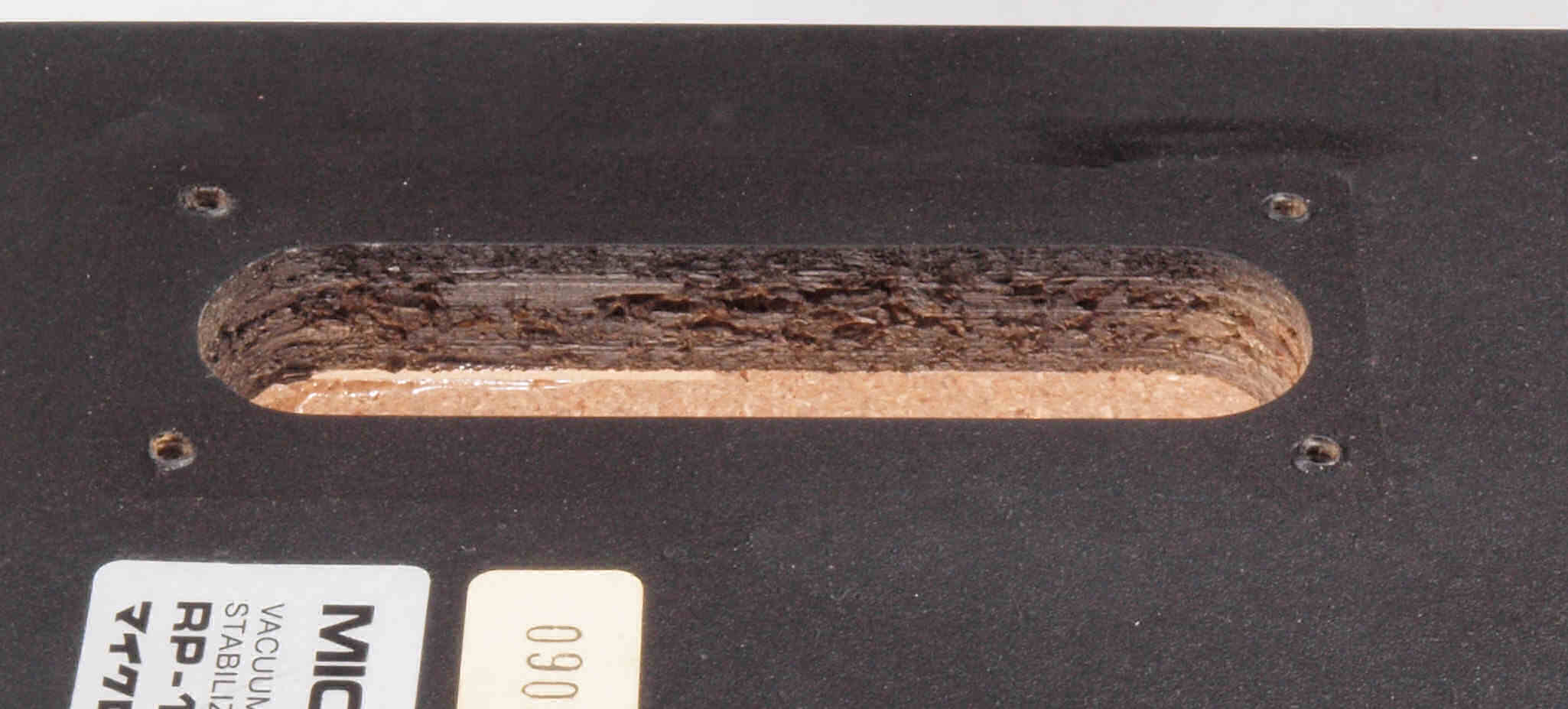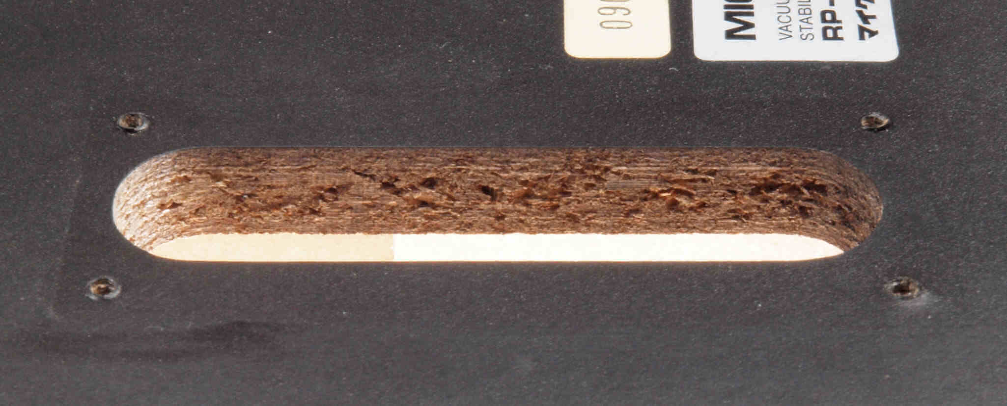 C55. 修理前 操作パネル取り付け穴、反対側。 ボンドを染みこませる。