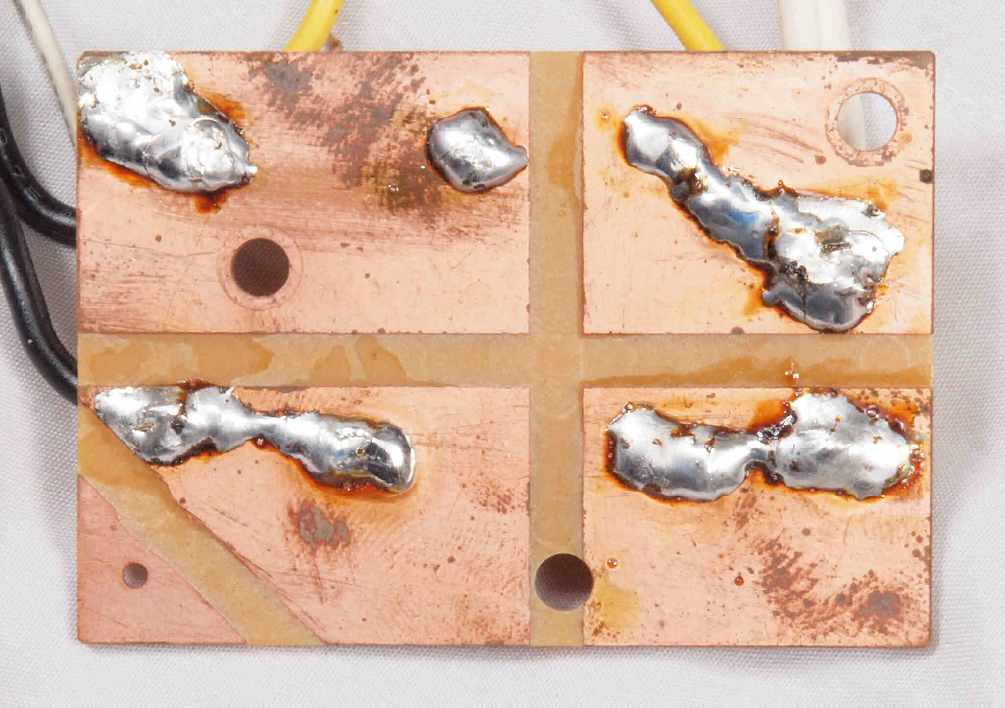 CB4. 完成フューズ基板裏、 洗浄後コート液を塗る。