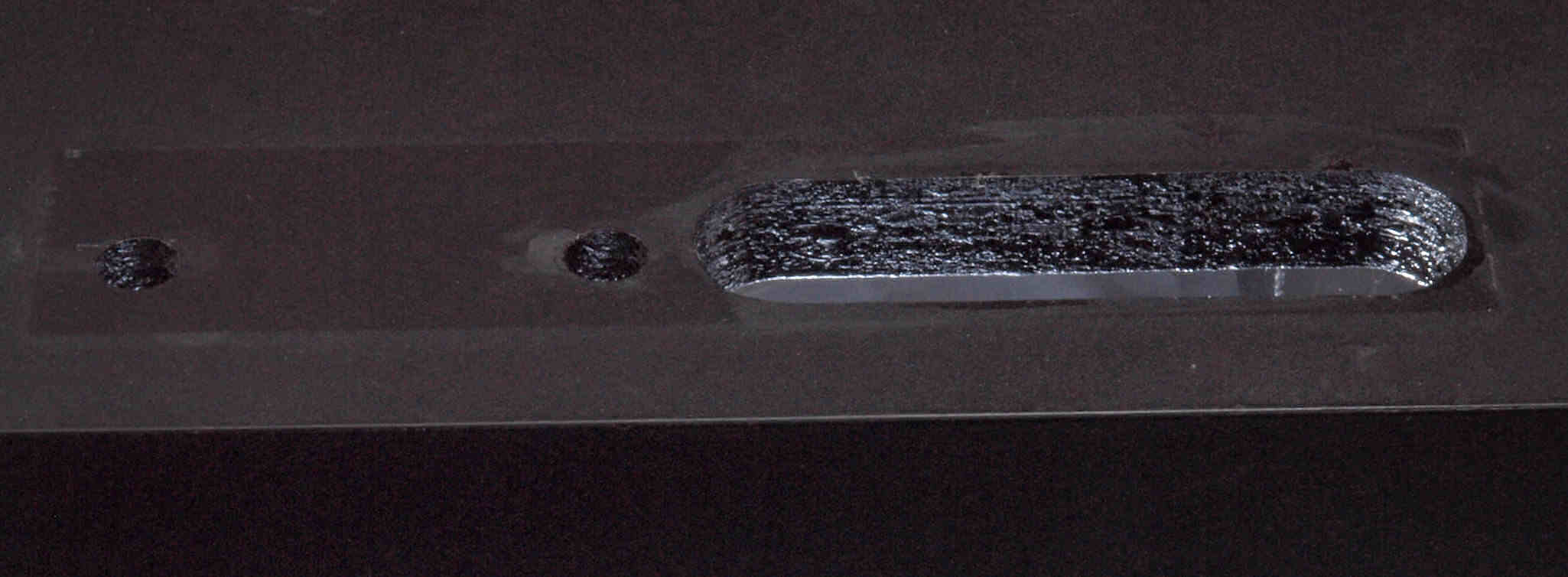 C45. 修理前 電源入り口・吐出口端子取り付け穴、反対側。 ボンドを染みこませる。