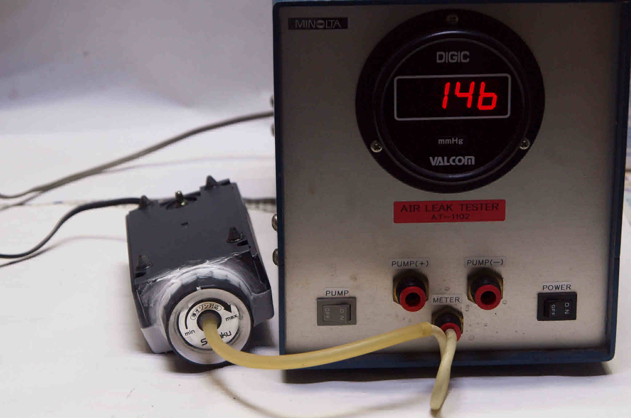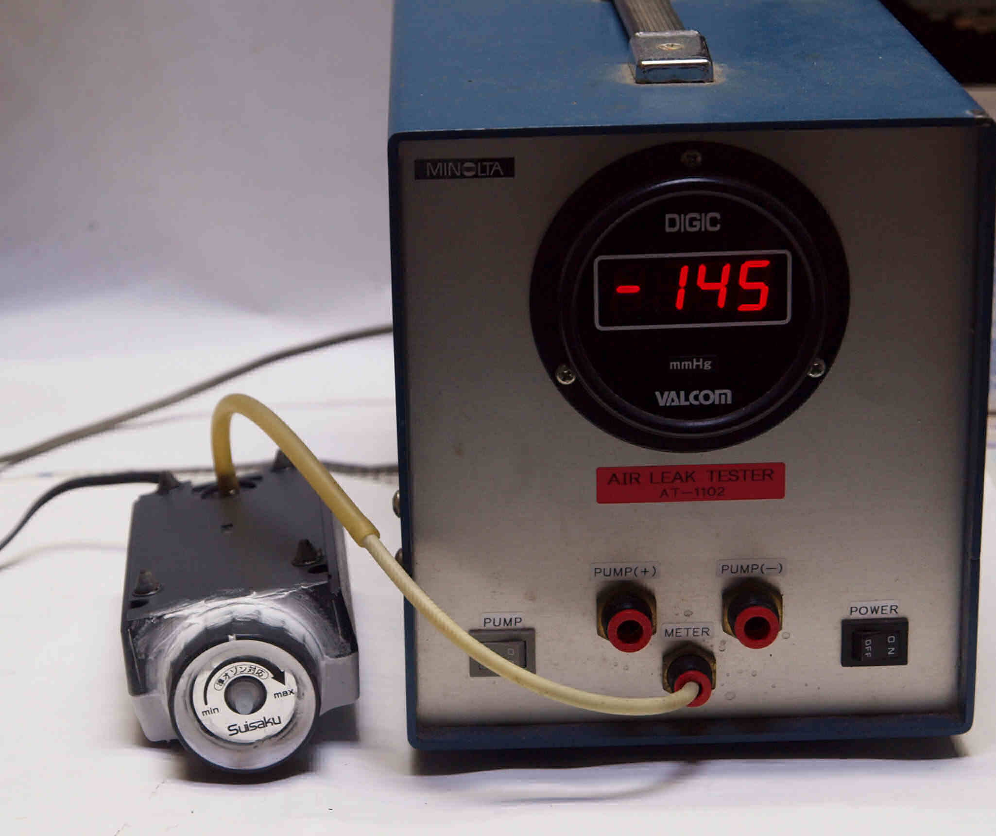 E2.  「B=吸い込」 の圧力測定。 Cより低いのは圧力調整バイパスが有る為。