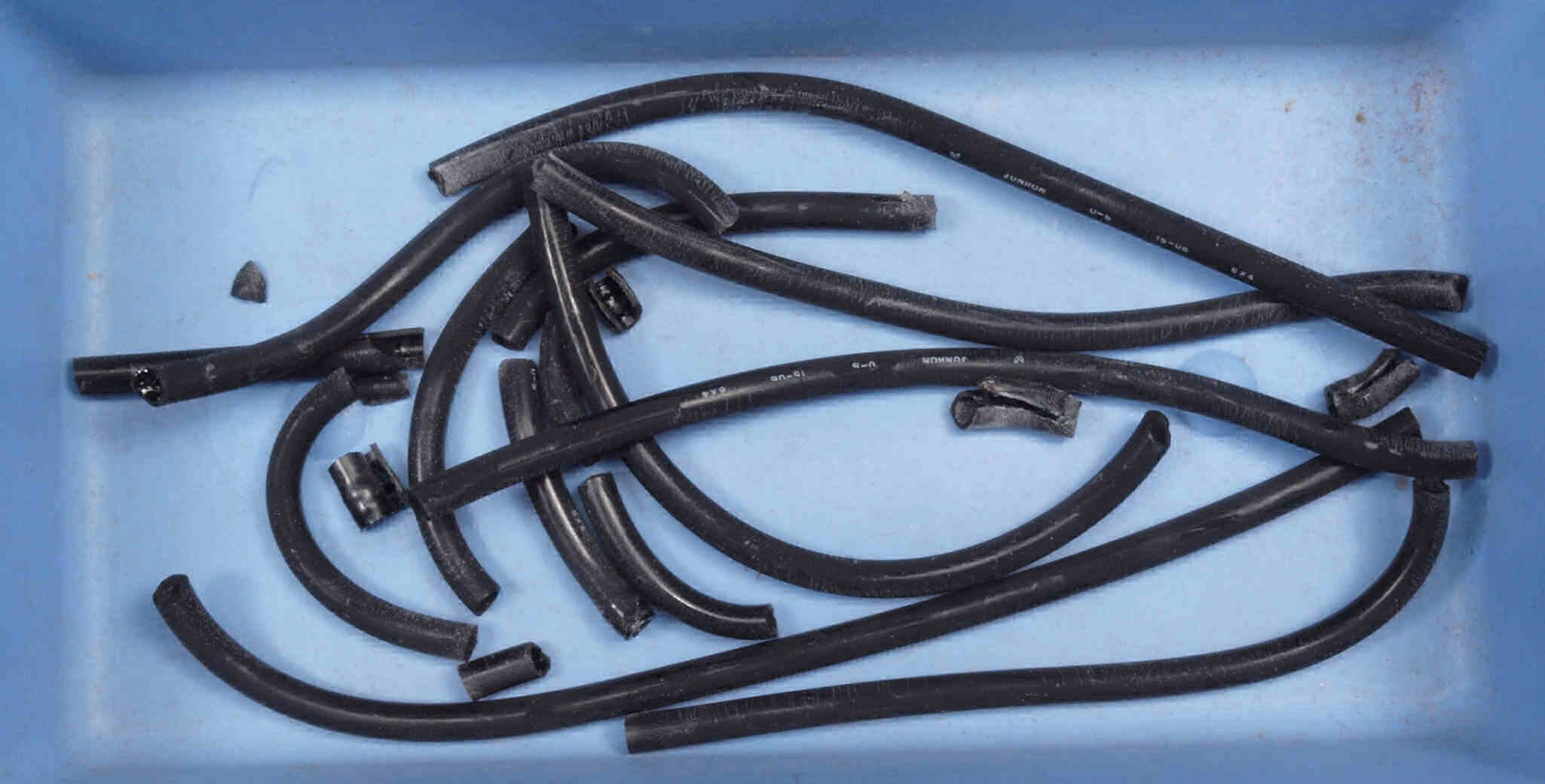 A24. RV−1090点検中 ポンプを取り去り、チャンバーを見る。 配管が経年硬化し、切れているので交換する。