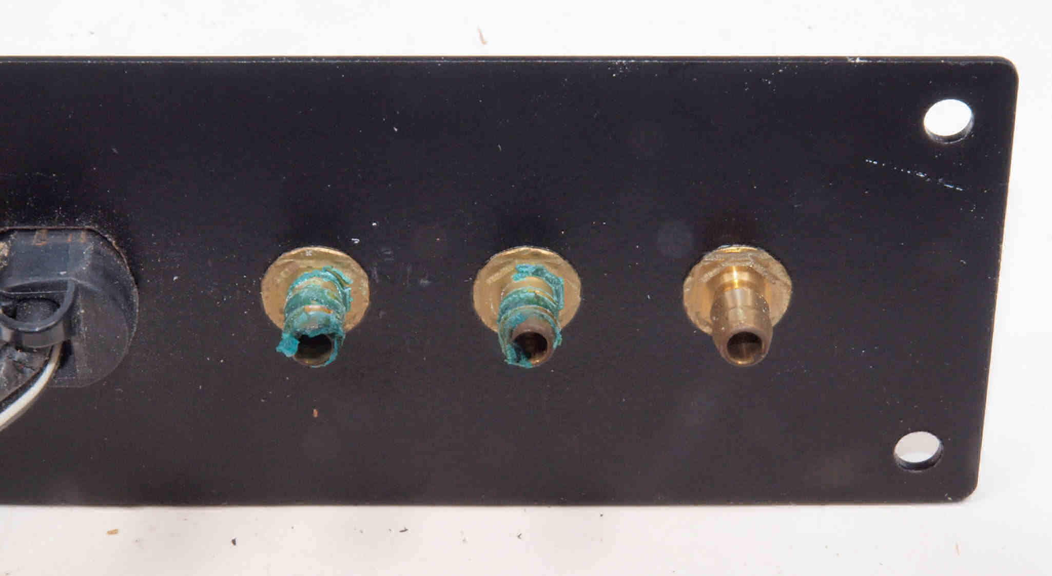 CE2. 修理中 チャンバー入出力接続端子、緑青が出ている。