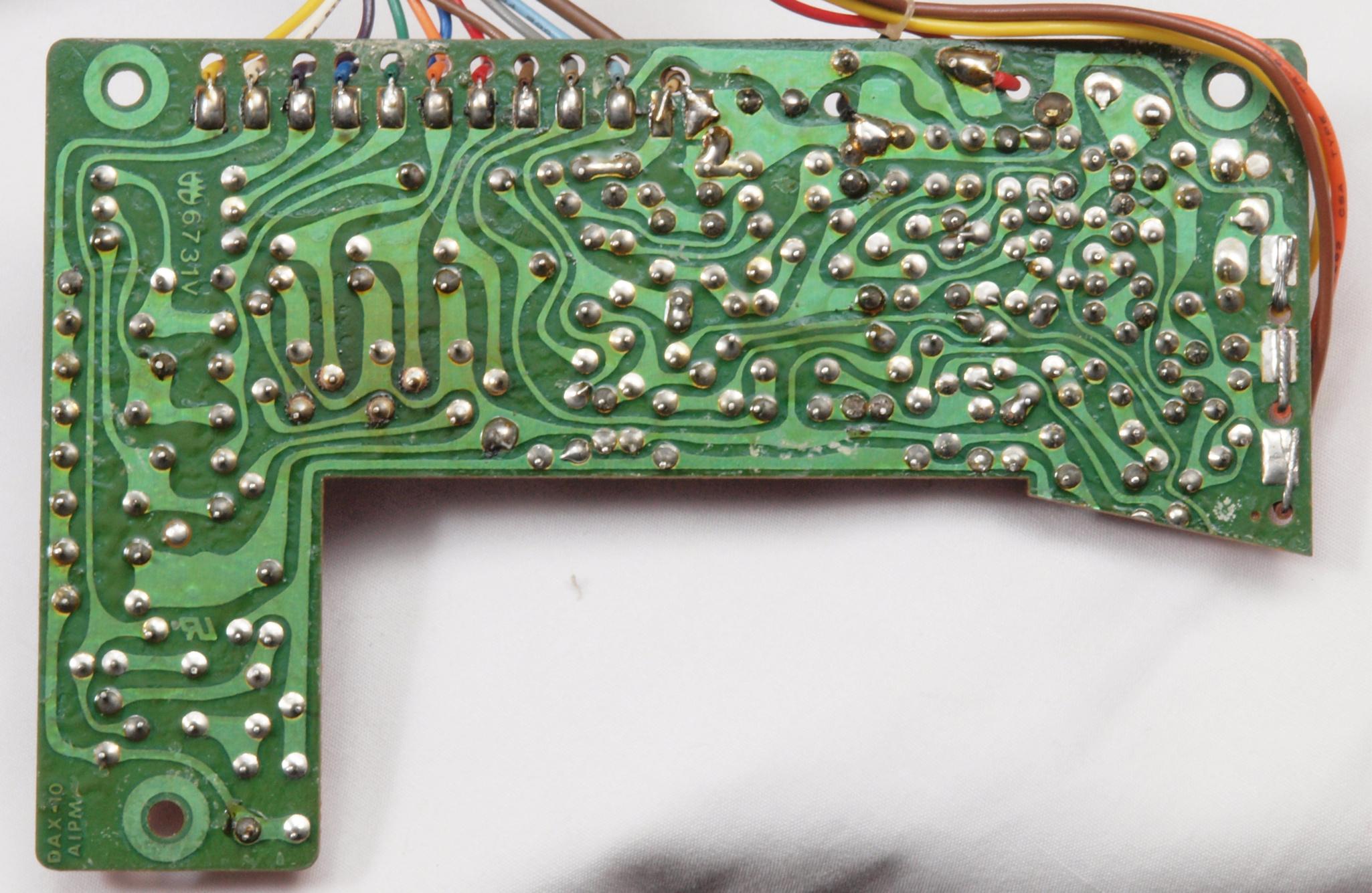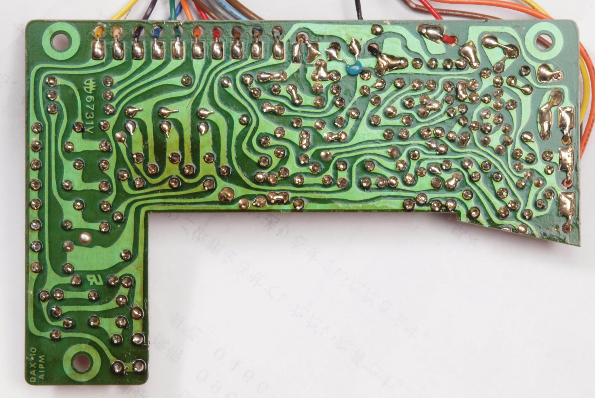 C34. 修理(再半田)後 メイン基板裏。 半田を全部やり直す。フイルムコンデンサー1個追加。