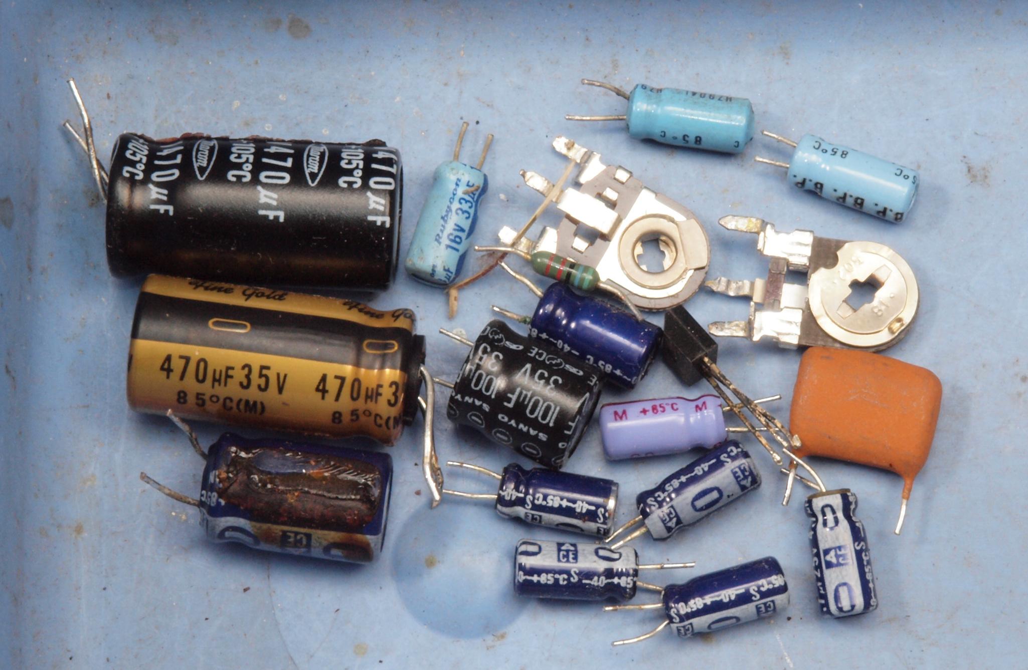 C32. 修理後 メイン基板。 電解コンデンサー8個、半固定VR2個交換