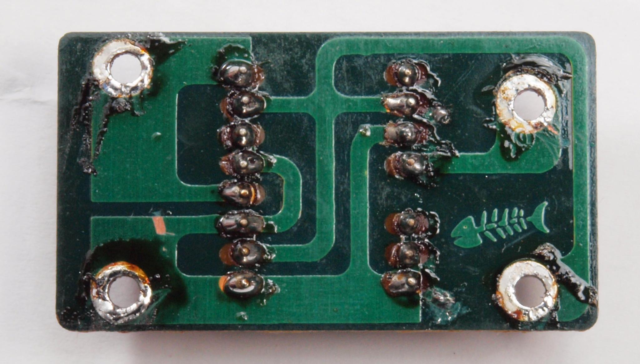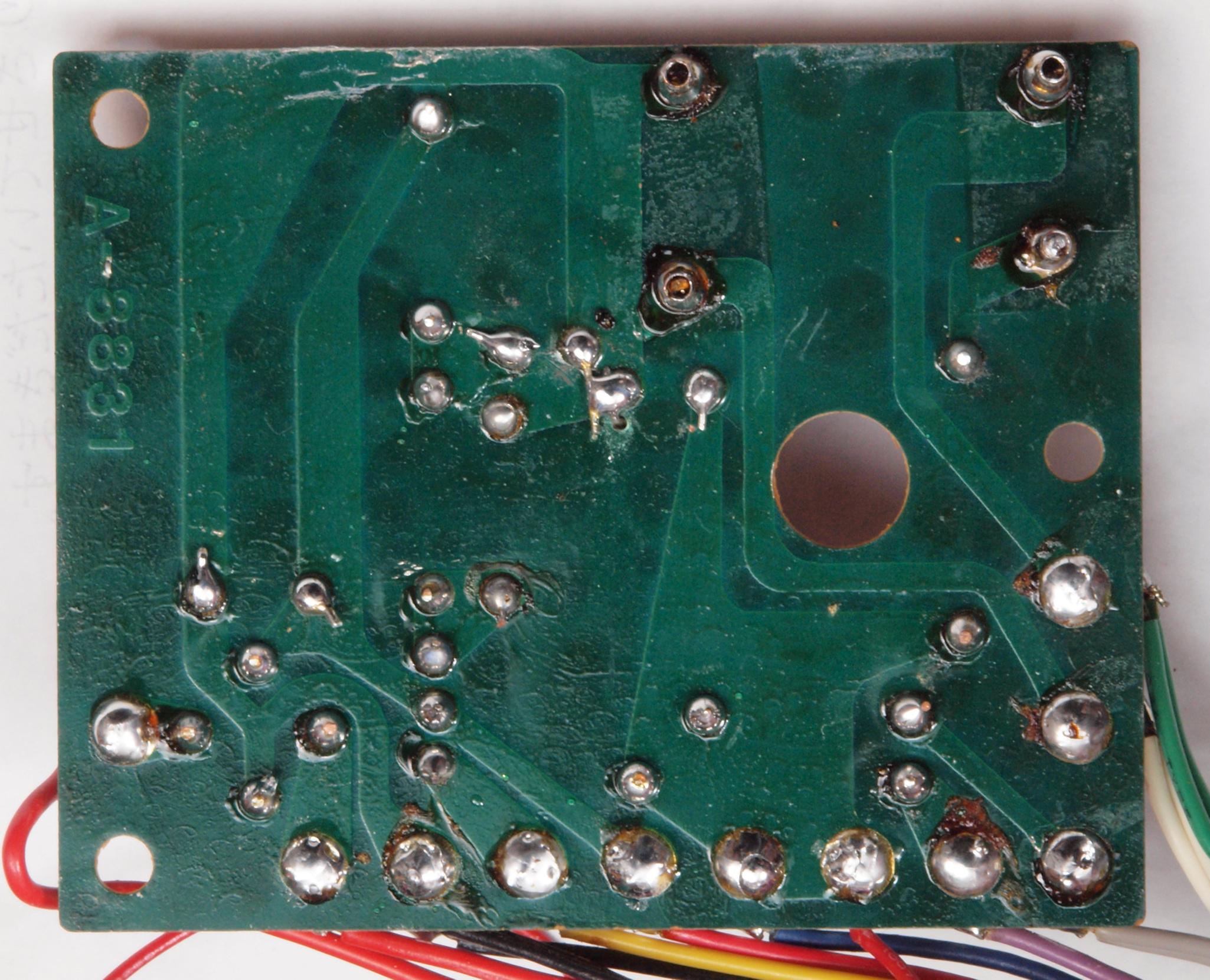 C16. 修理(再半田)後 電源・LED表示基板裏。 半田を全部やり直す。