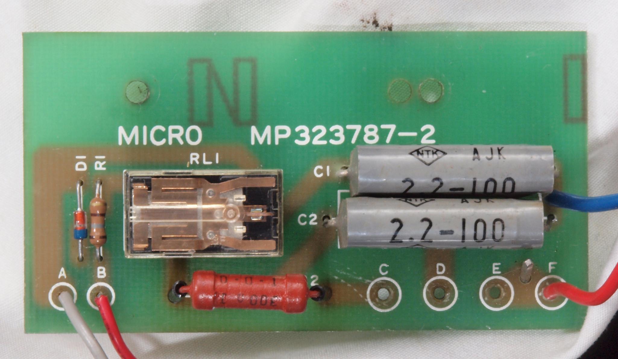 C32. 修理後 モーター33/45回転切換基板。 フイルムコンデンサー2個、リレー1個交換。
