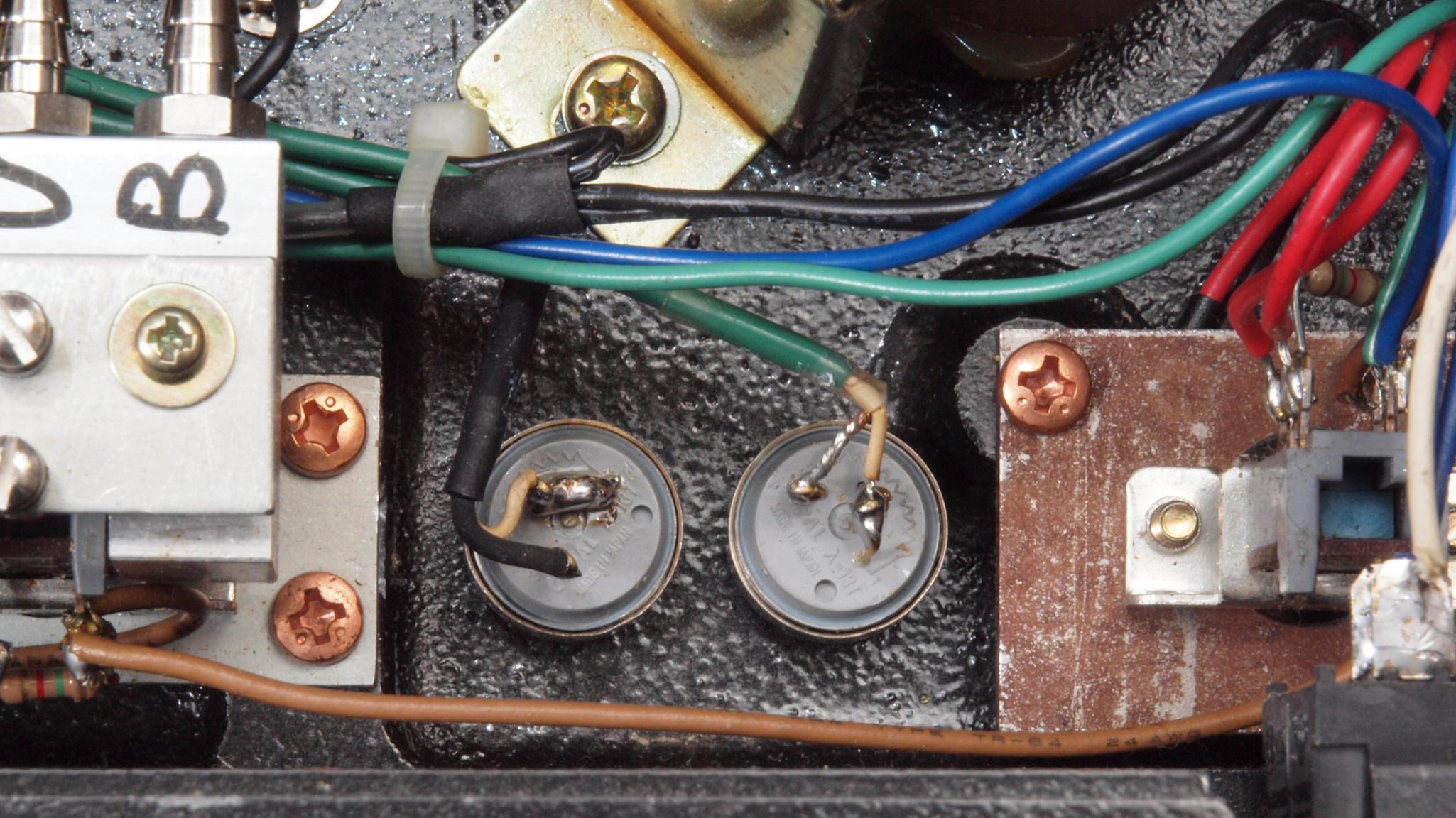 C14. 修理(半田補正)後 電源部整流基板裏。 フイルムコンデンサー2個追加。