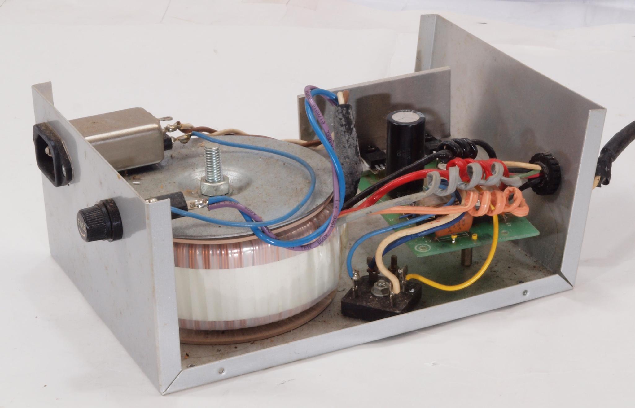 A64. 製作RY−5500U電源点検中 上から見る。巨大なトロイダルトランスは24V4.17A!純正は19V1A。