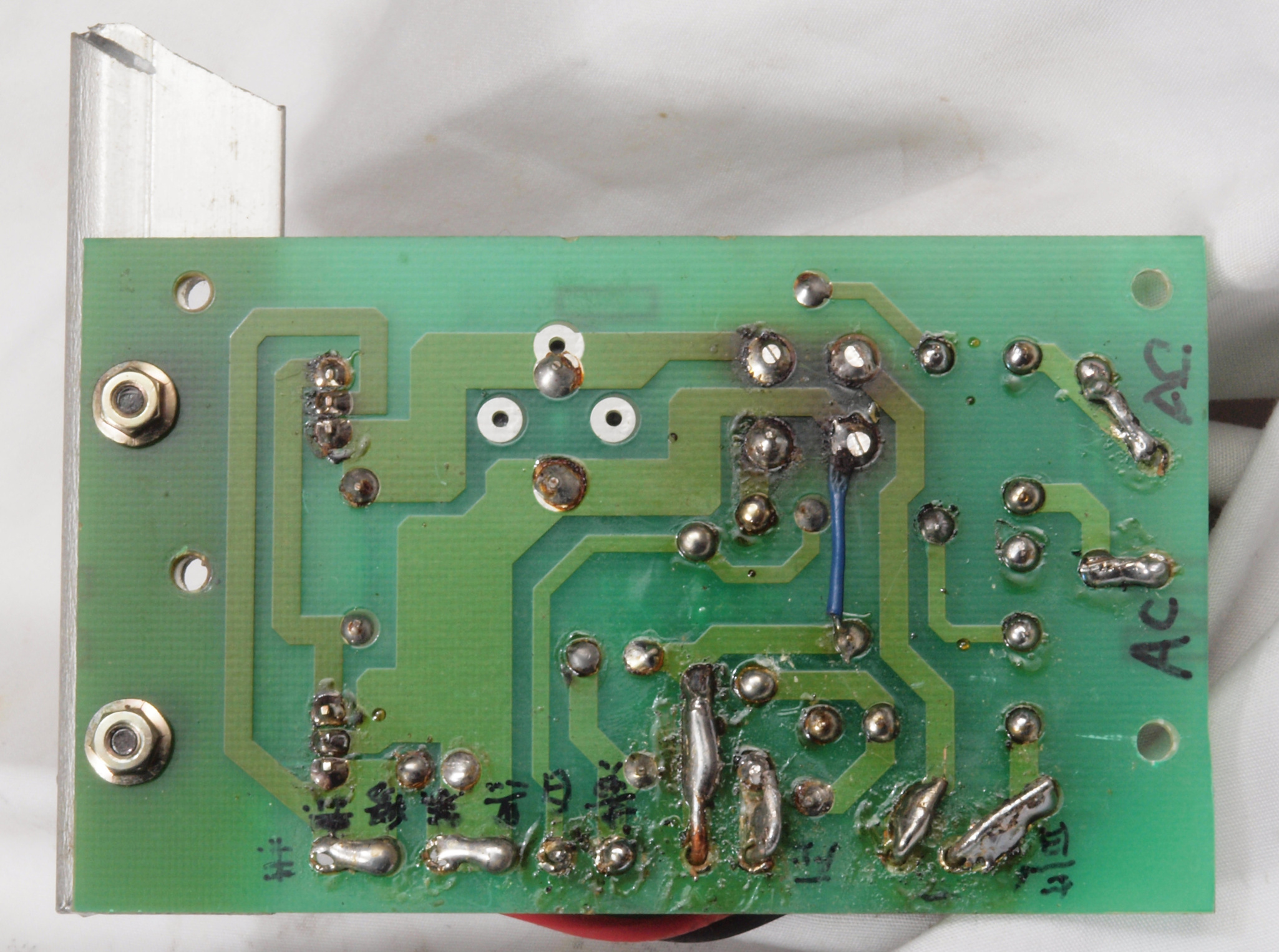 C24. 修理(半田補正)後 モーターコントロール基板裏。 フイルムコンデンサー1個追加。