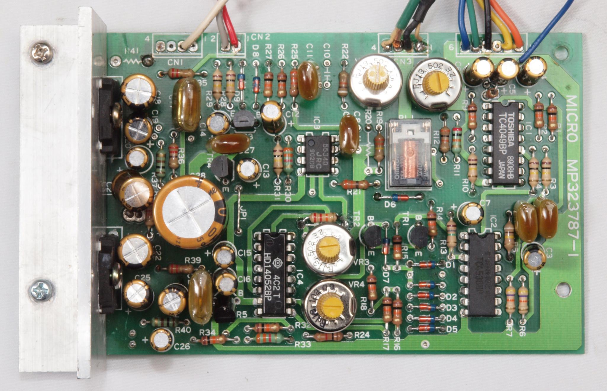 C22. 修理後 モーターコントロール基板、半固定VR4個、電解コンデンサー18個、モーター駆動AMP−IC.2個、全IC交換、抵抗2個追加。