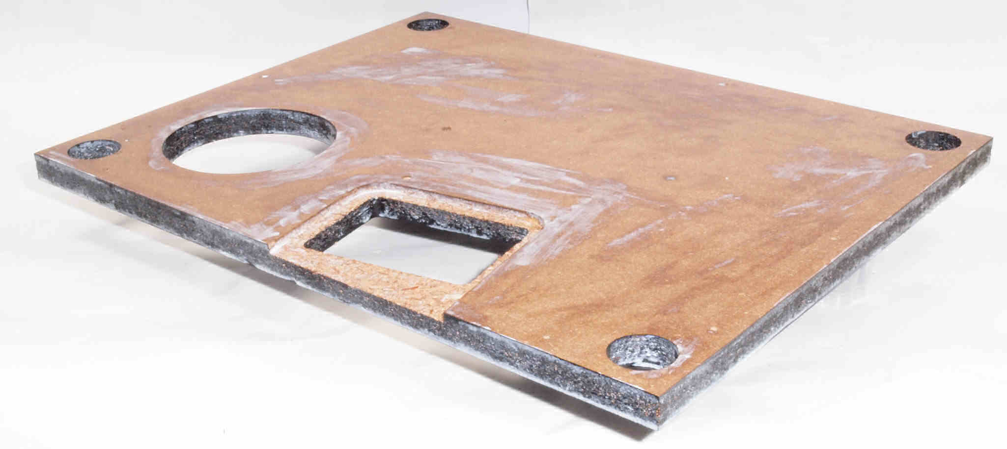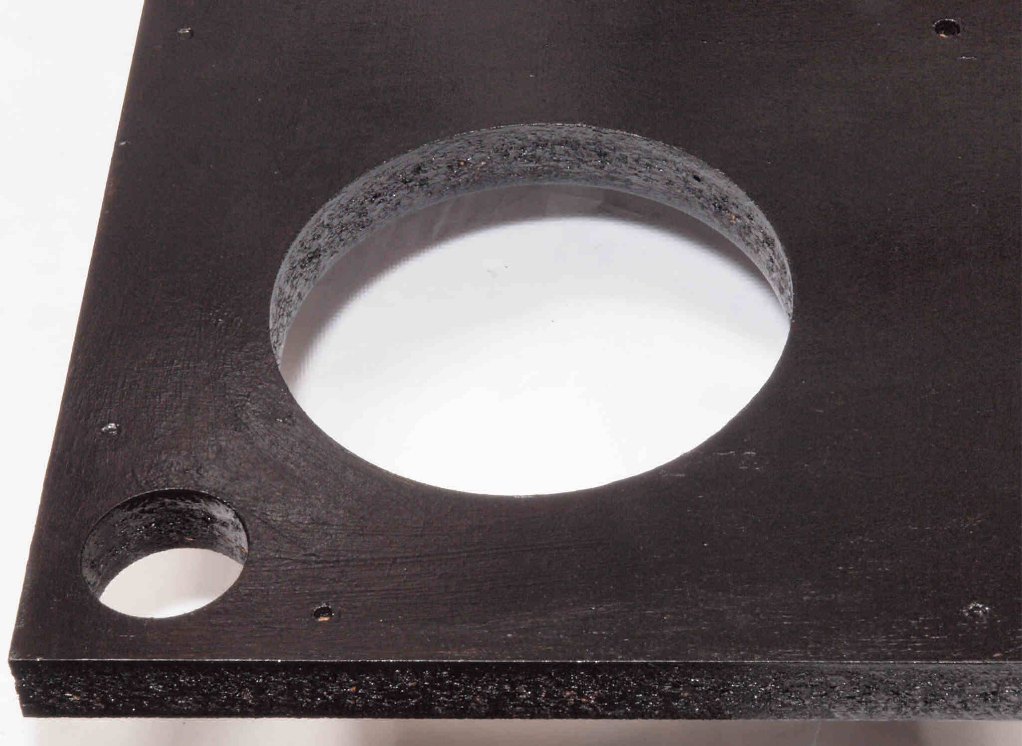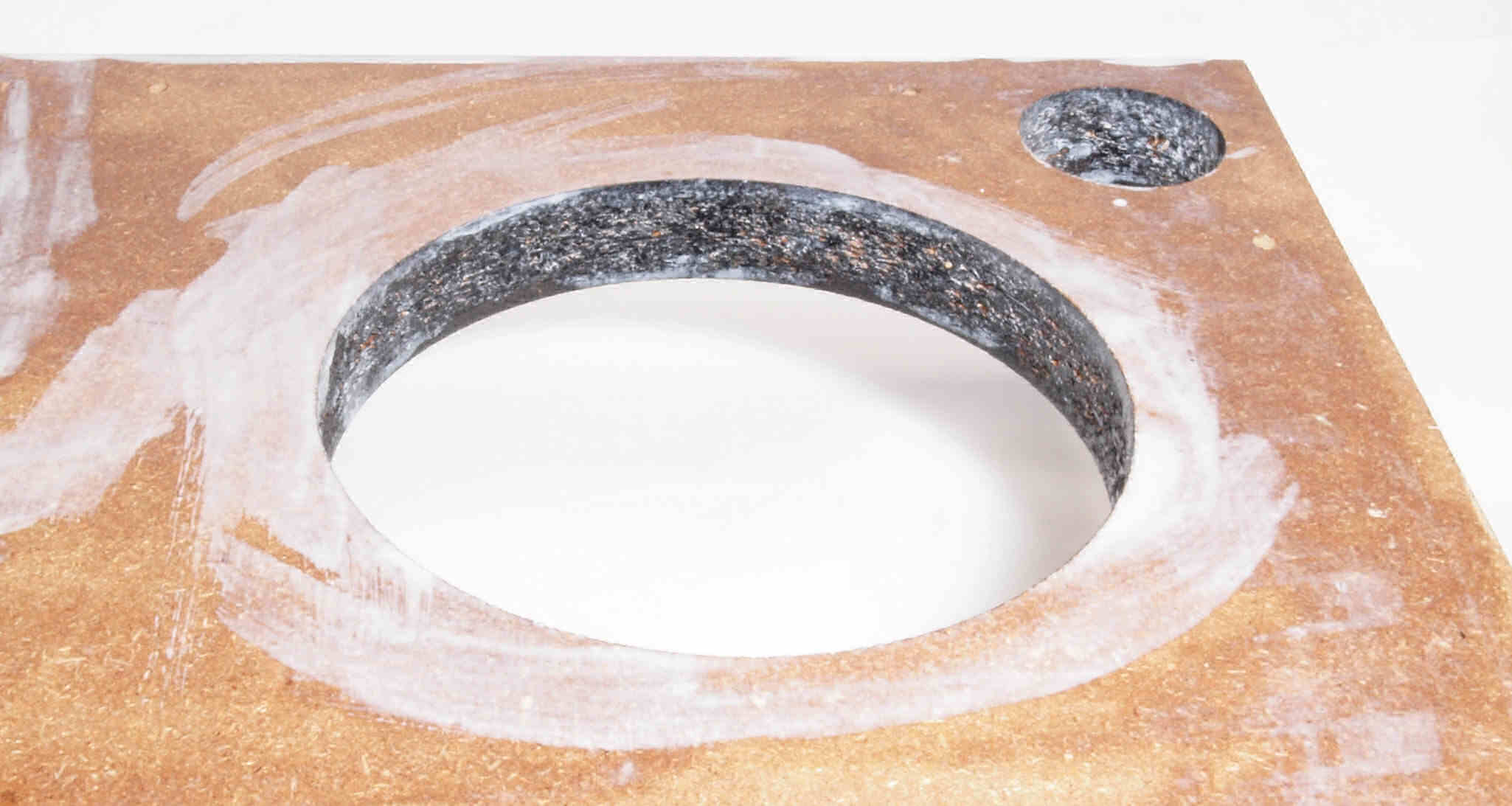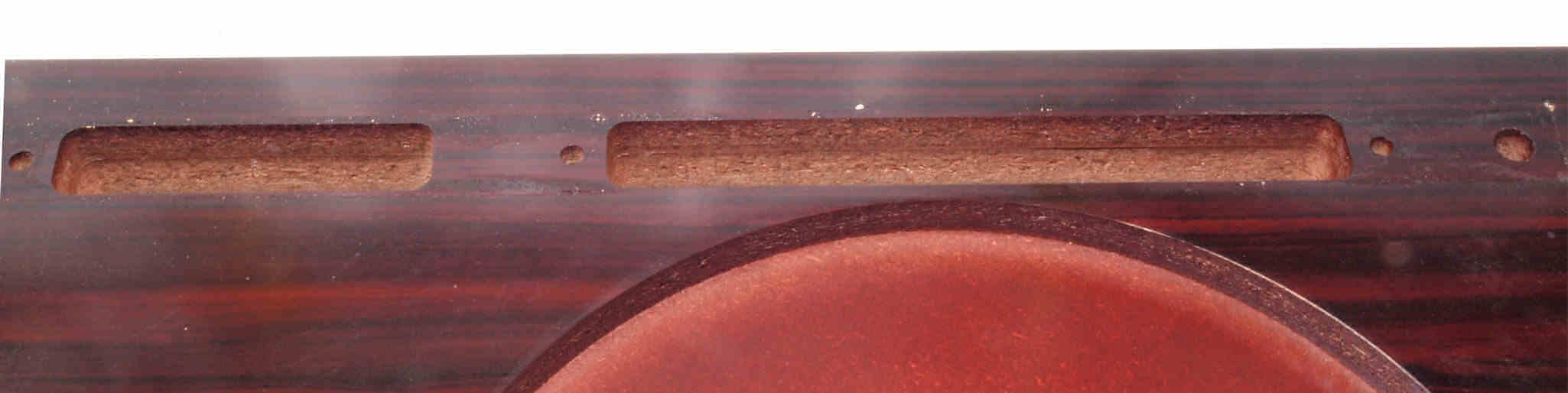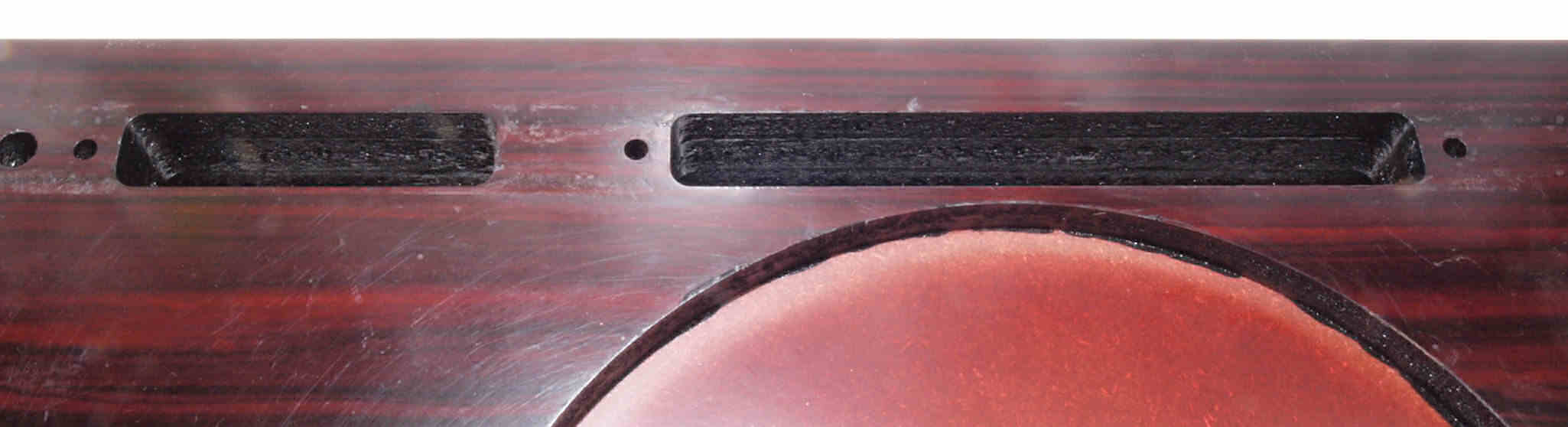 W18. 修理後 タンテーブル取り付け穴。 キズを消す為と割れを防ぐのに、塗装する。