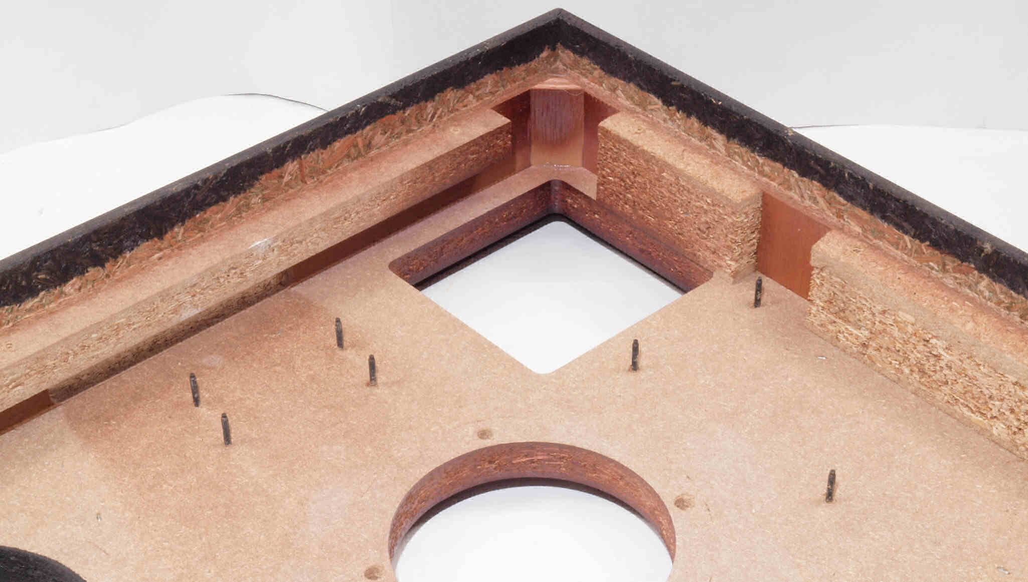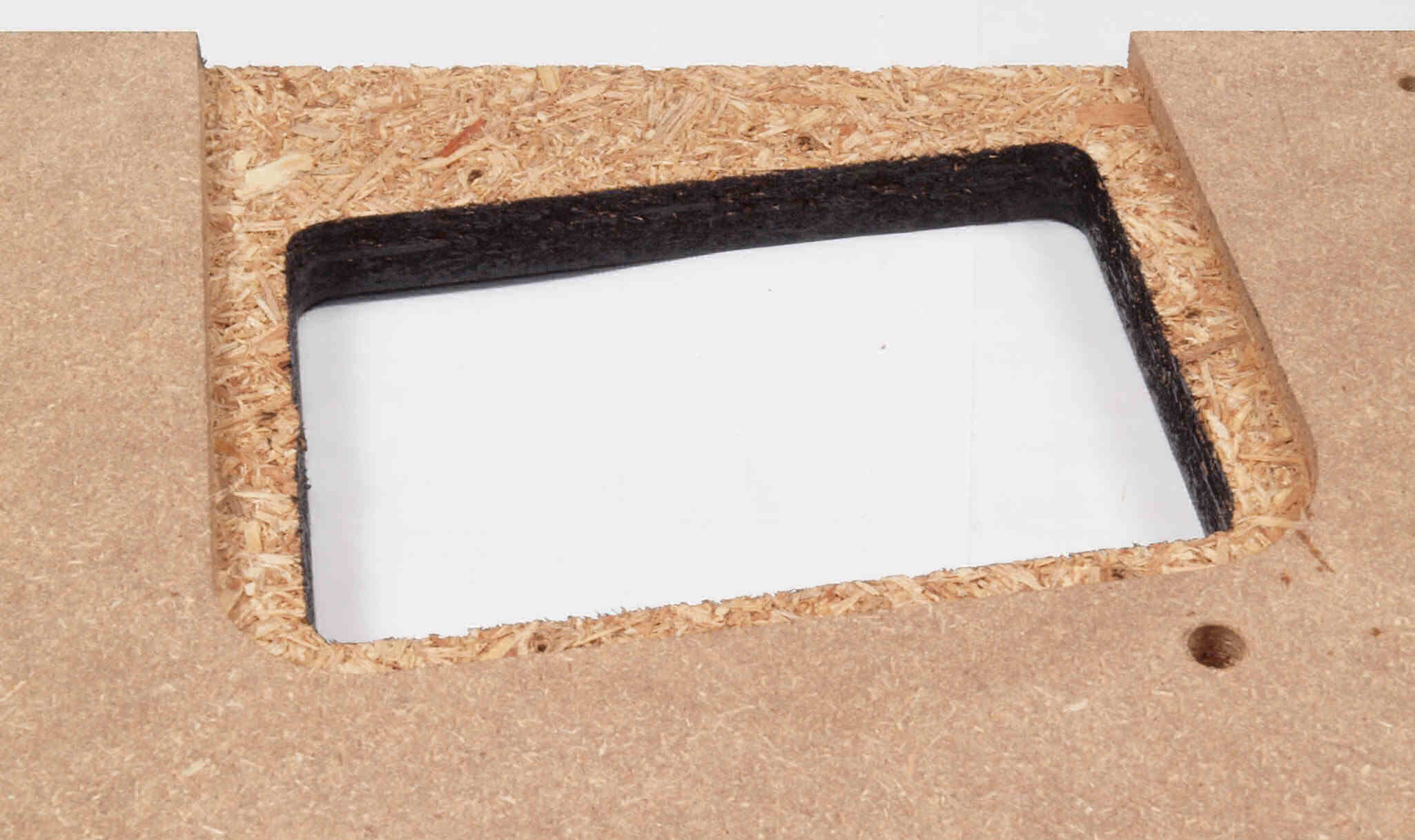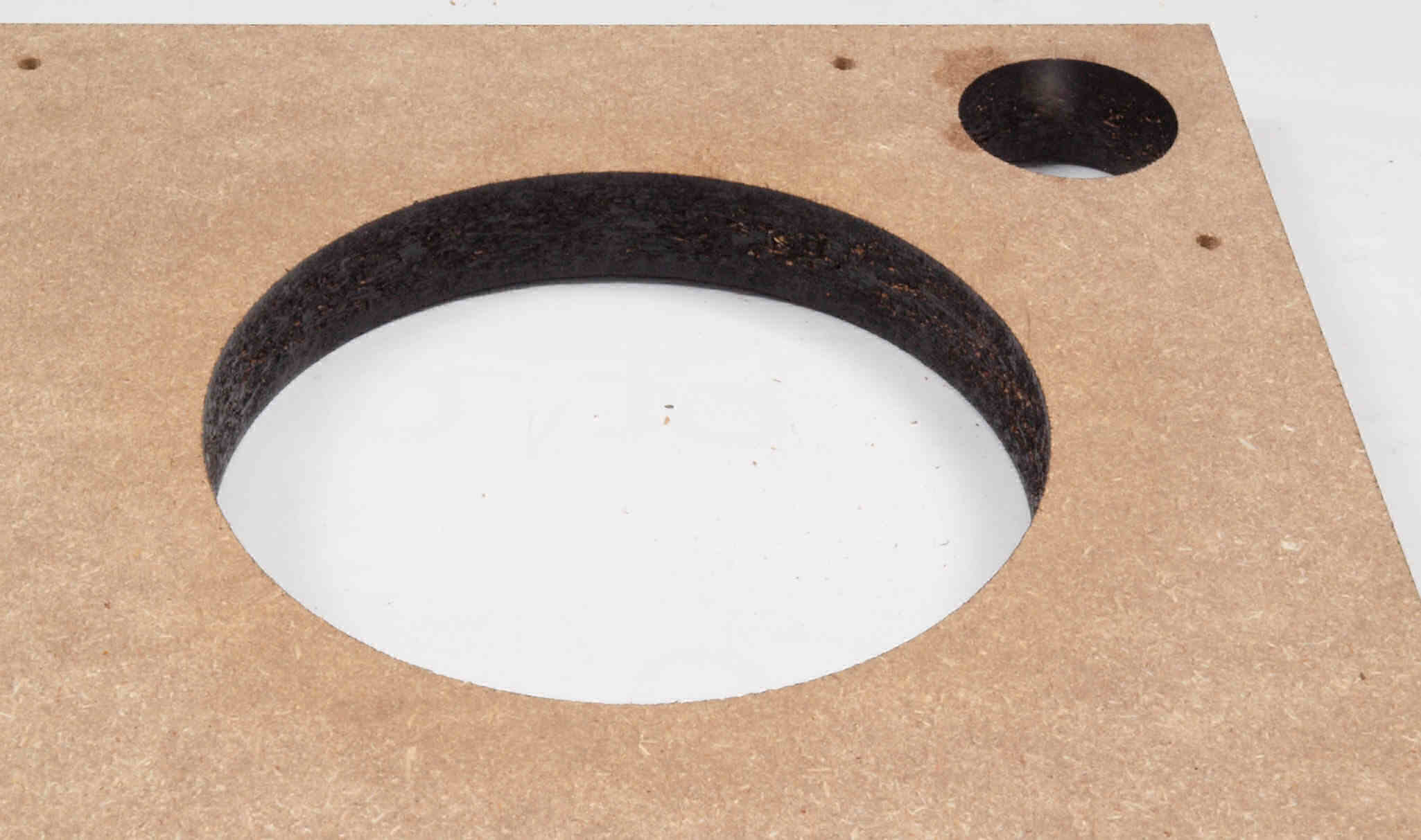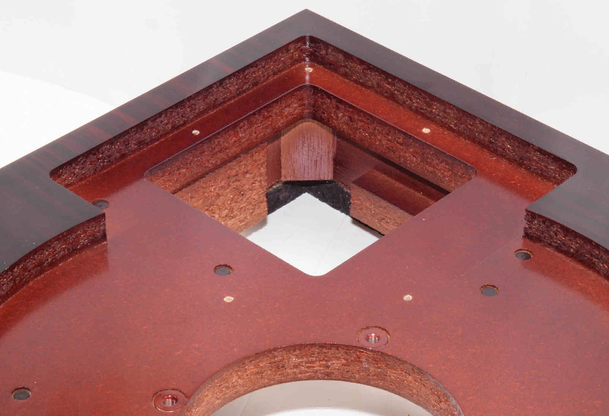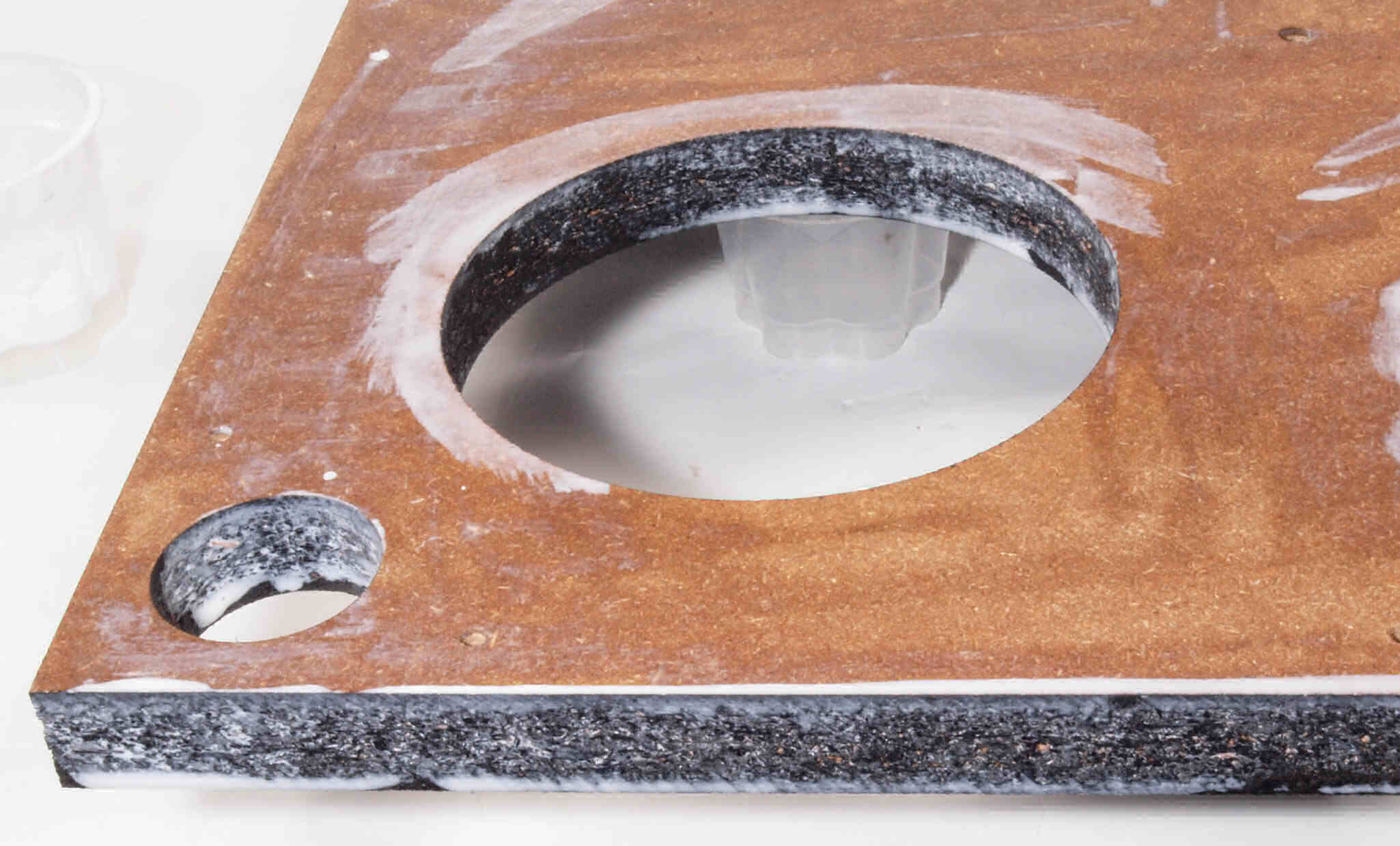 W18. 修理後 タンテーブル取り付け穴。 キズを消す為と割れを防ぐのに、塗装する。
