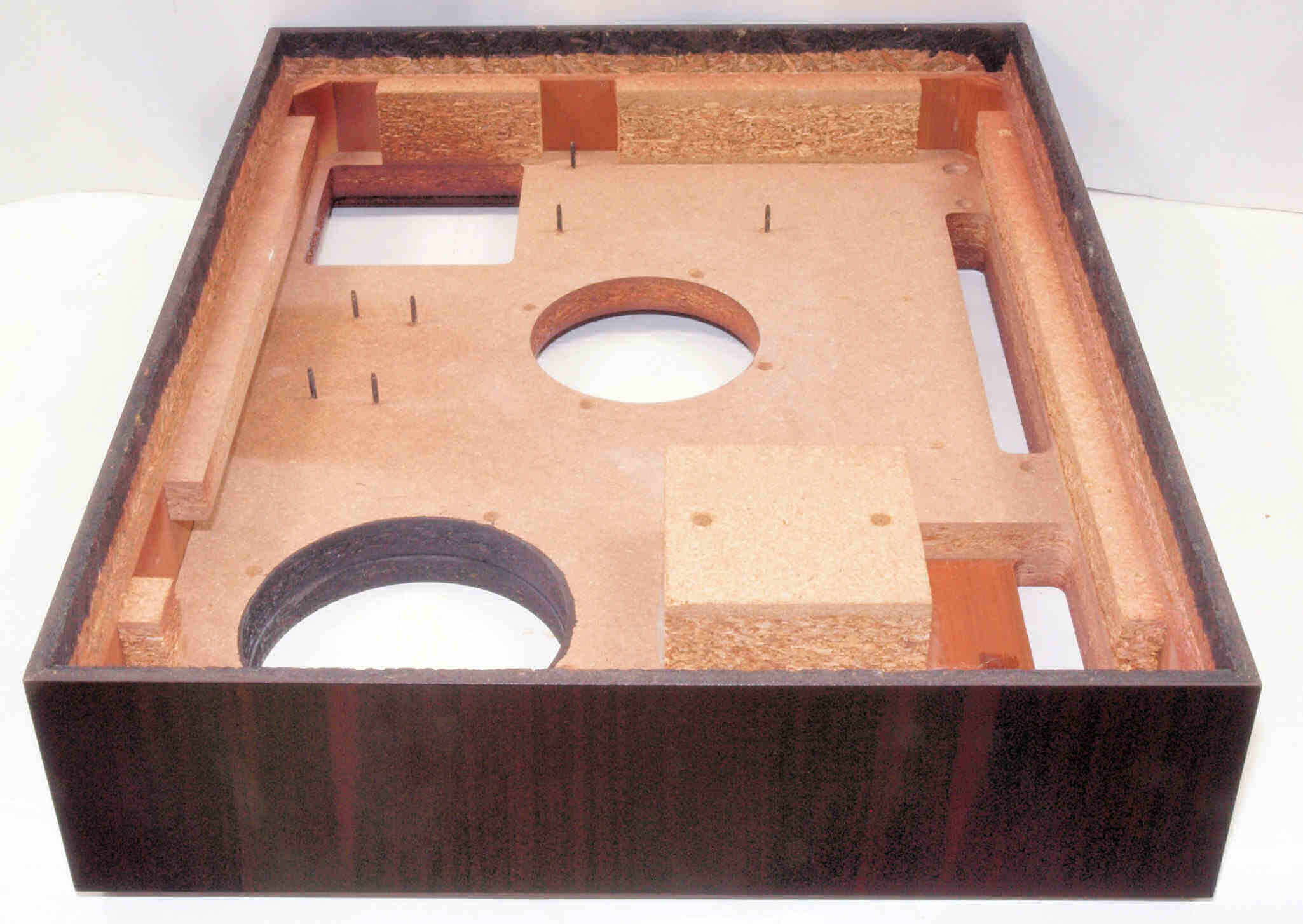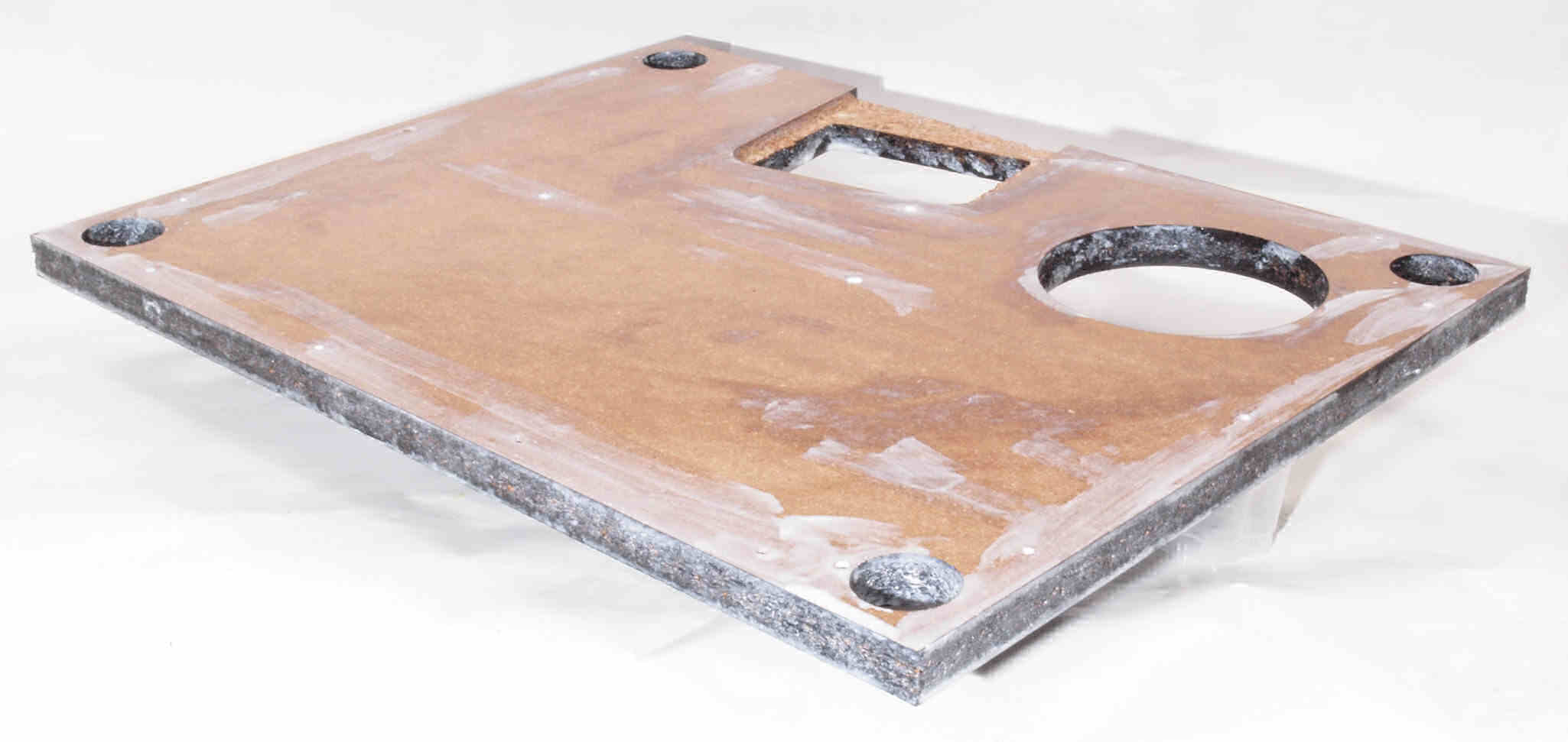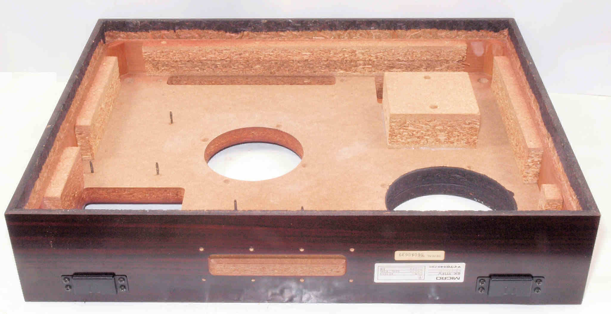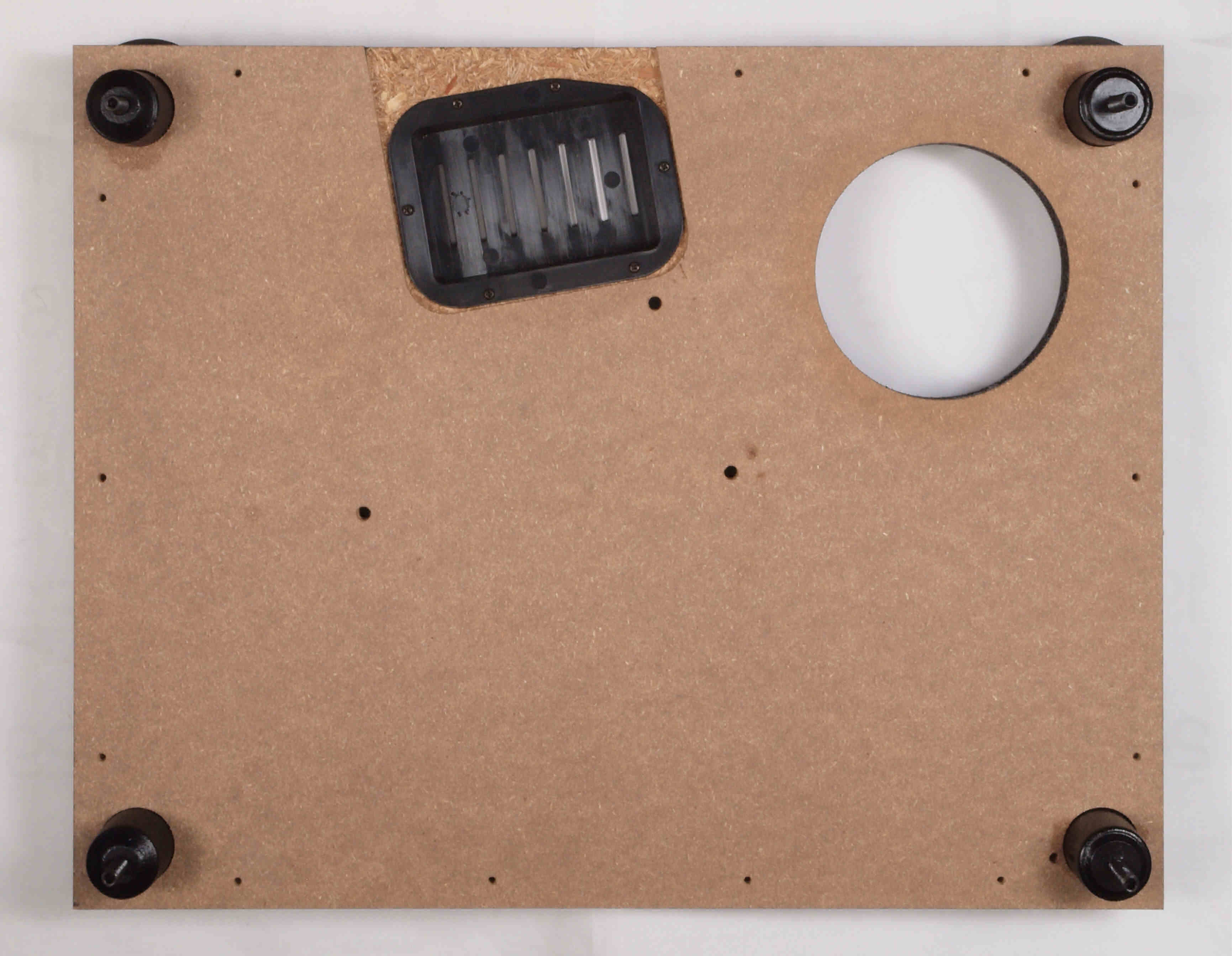 W72. 修理(塗装)後 底板裏側、 前右から。 圧縮材に、水性木工ボンドを塗布。
