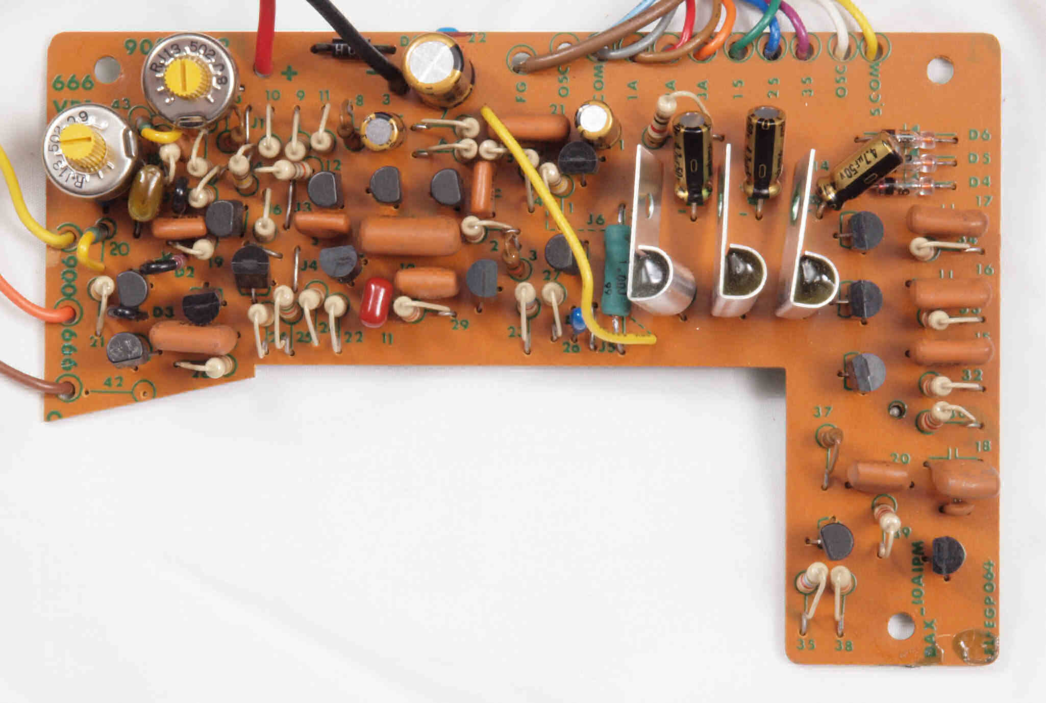 C12 .修理後 制御基板、 半固定VR2個、電解コンデンサー7個、フイルムコンデンサー2個交換
