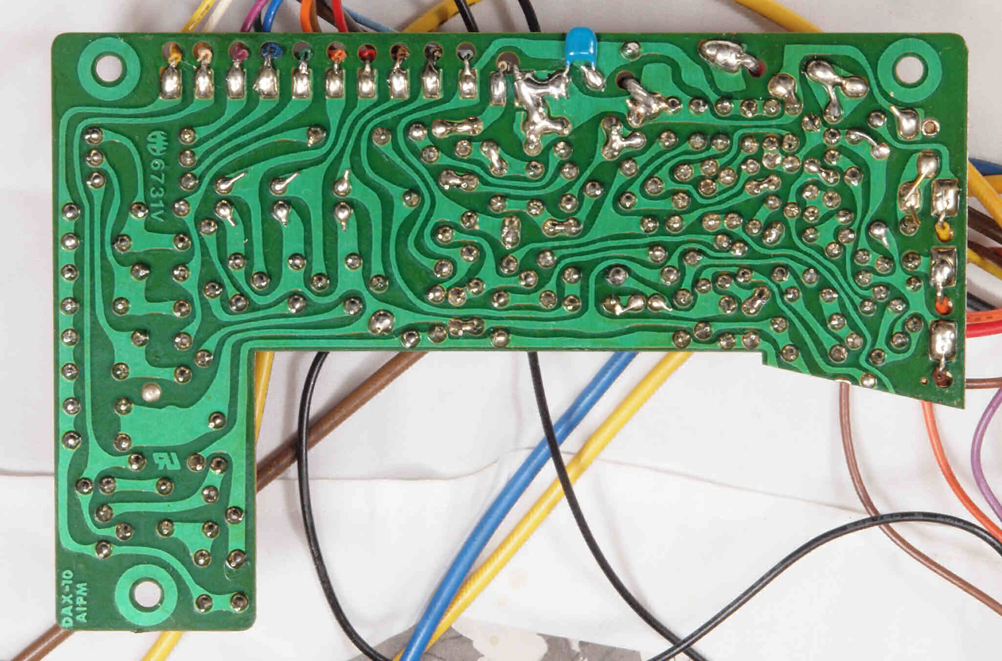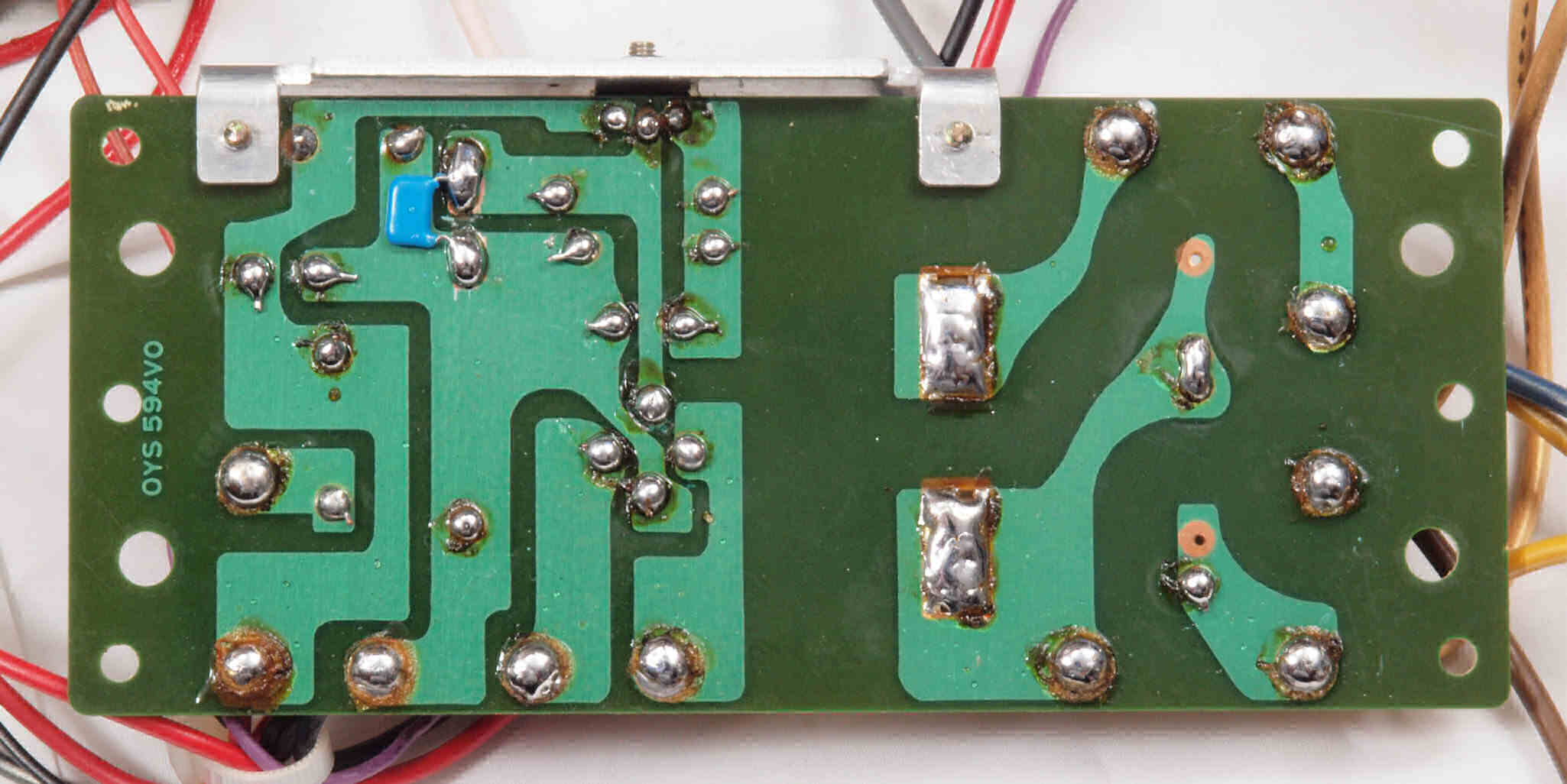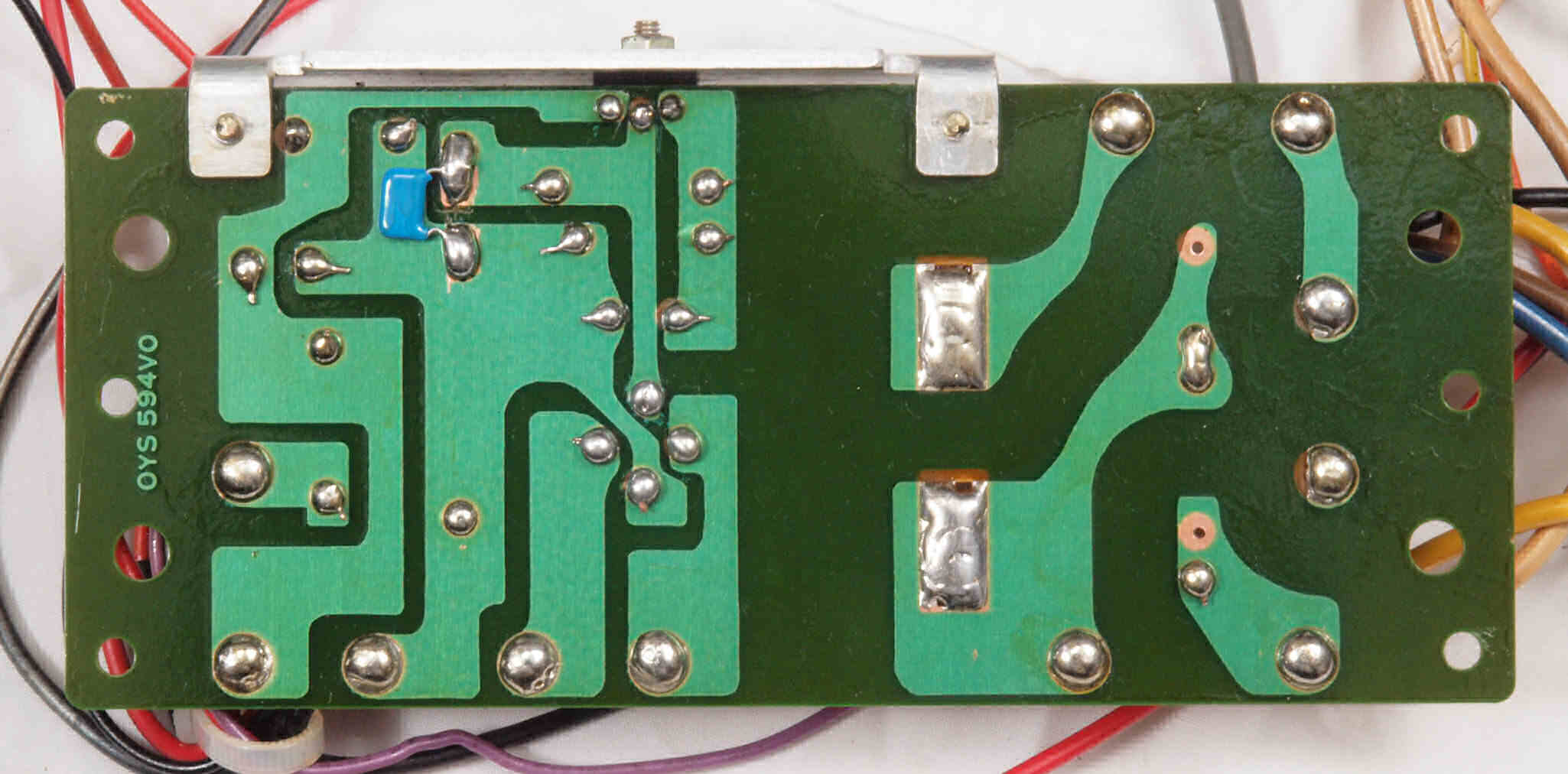 C26. 修理(半田補正)後 電源・ヒューズ基板裏。セラミックコンデンサー1個追加。