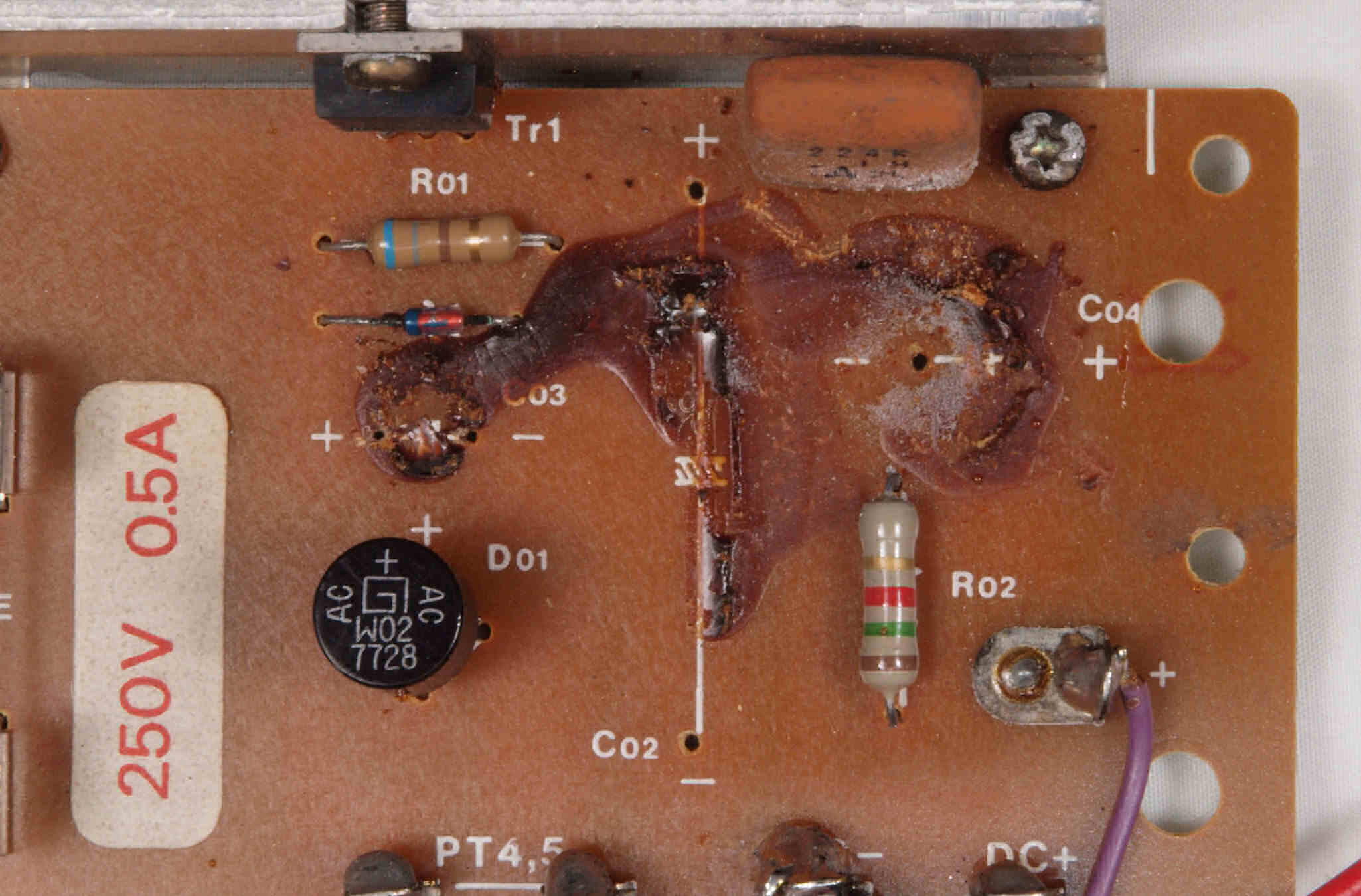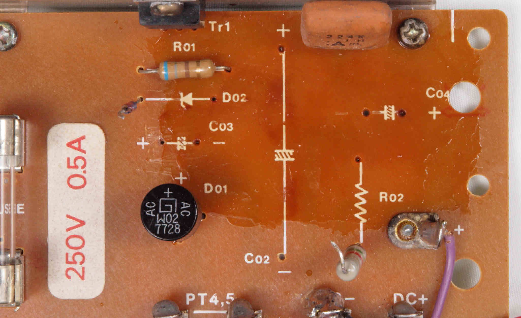 C25. 修理前 電源・ヒューズ基板裏