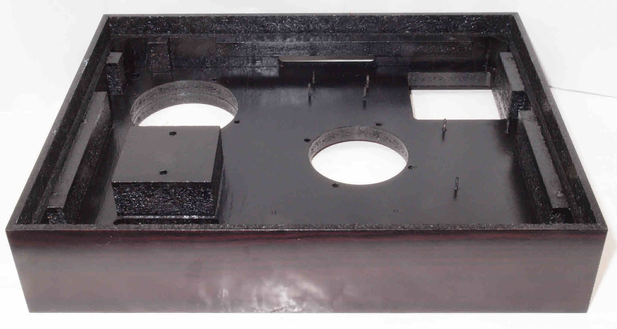 W93. 修理中 底板裏側、アーム取り付け穴、さらに、キズを消す為と割れを防ぐのに、ペンキを塗る。