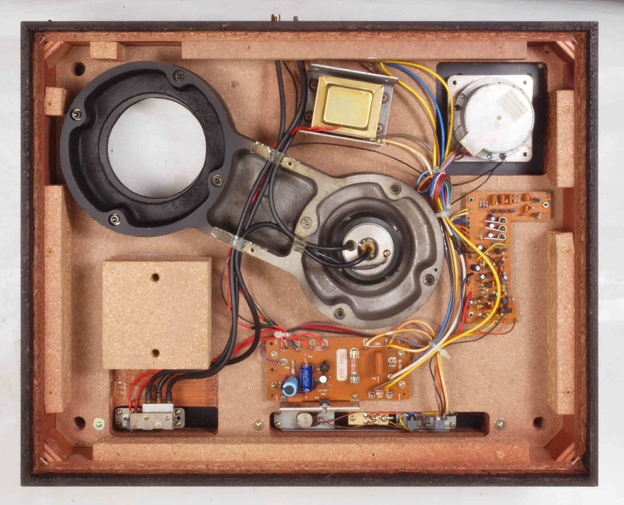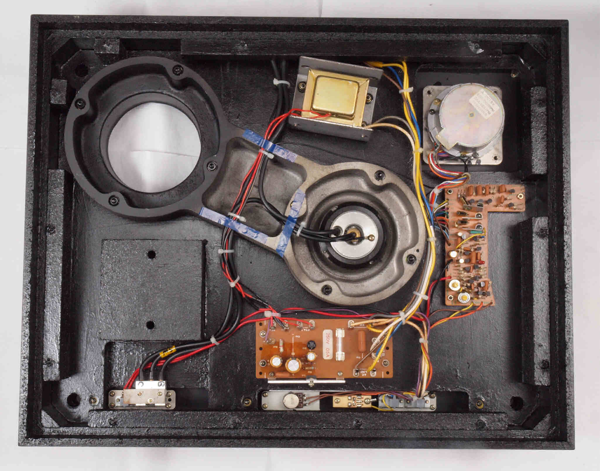 W0. 修理前 タンテーブル軸ユニット、アーム取付一体シャーシを外した本体。