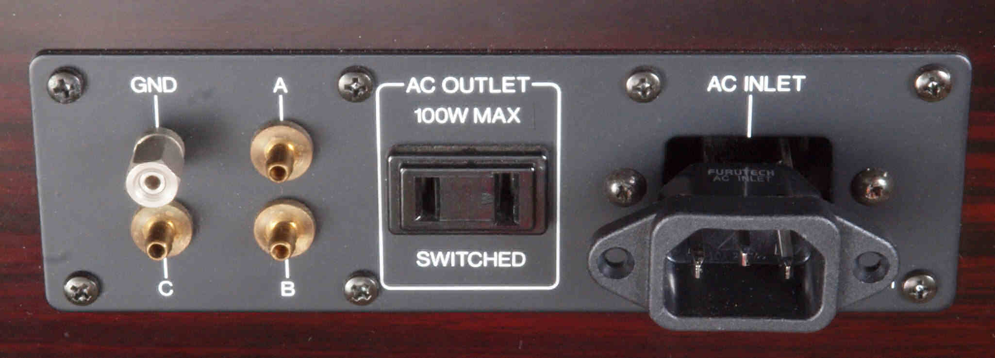 3Pインレットに交換可能。FURUTECH製FURUTECH FI-10(R) ロジウムメッキ。