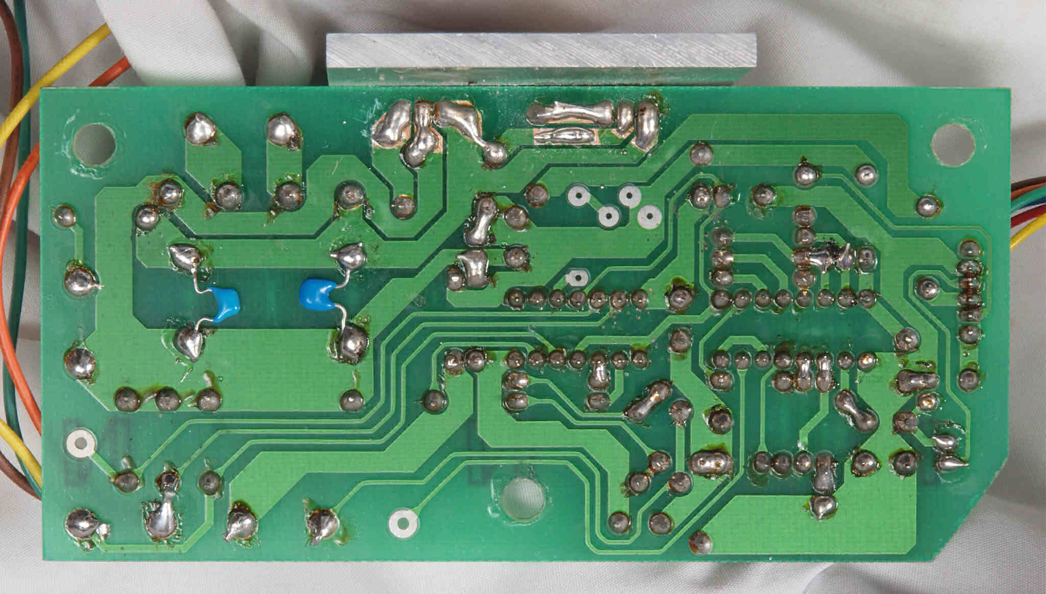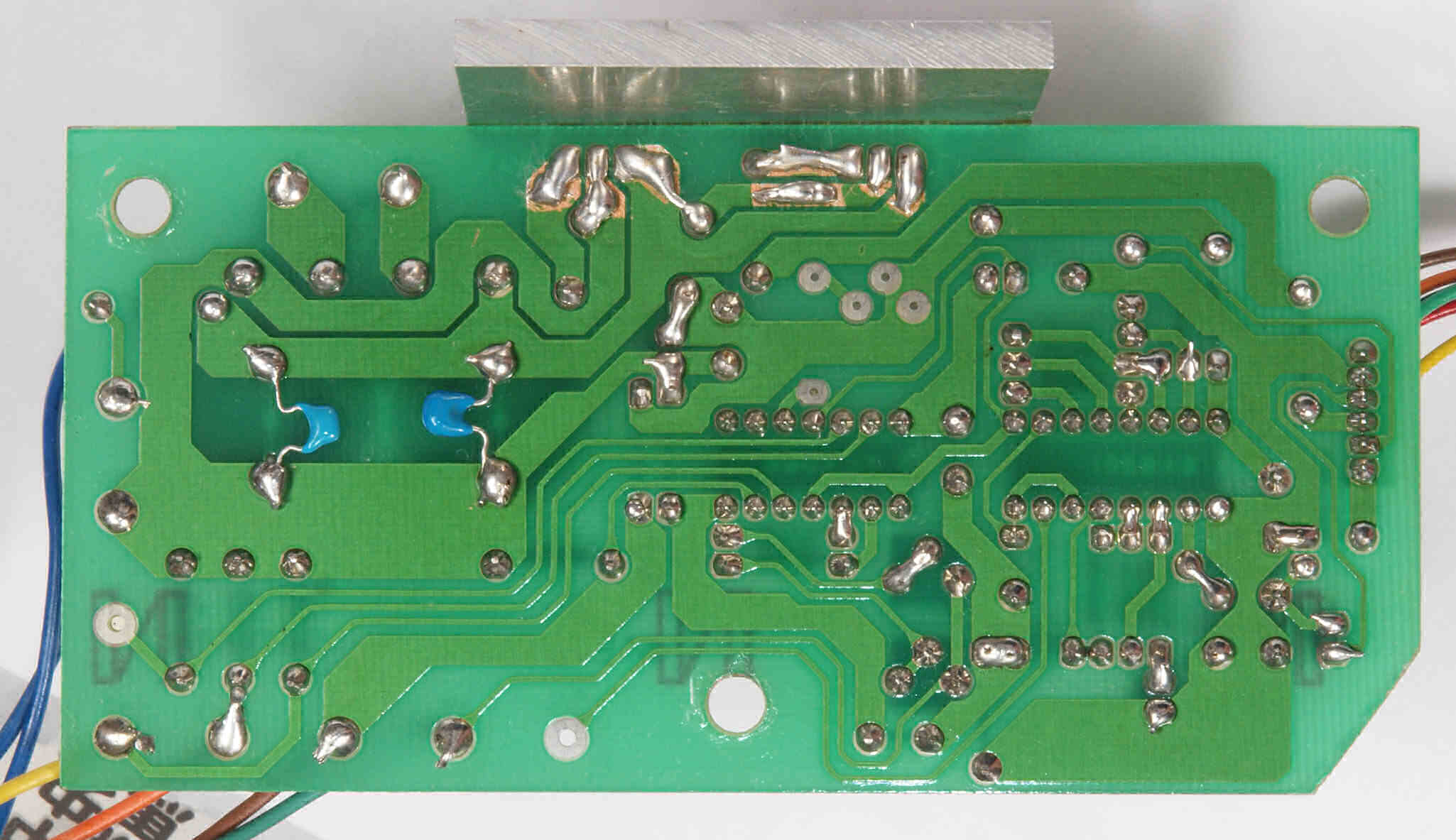 | D132. 修理中 モーター部コントロール基板裏。 定電圧ICの足銅箔広げる。 | ||||||||||||||||||||||||||||||||||||||