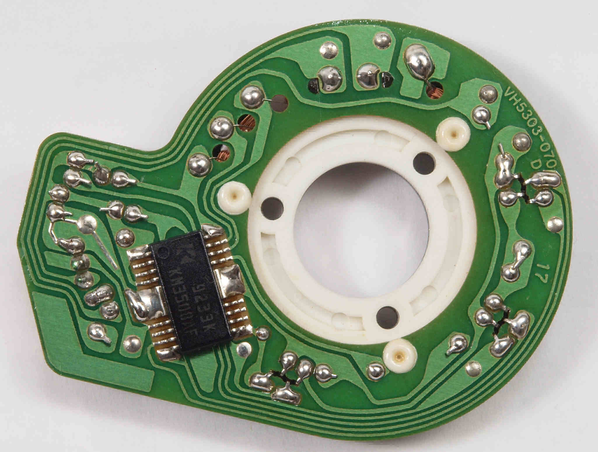 | D15. 完成モーター部コントロール基板裏。余分なフラックスを落として、コート液を塗る。 | ||||||||||||||||||||||||||||||||||||||