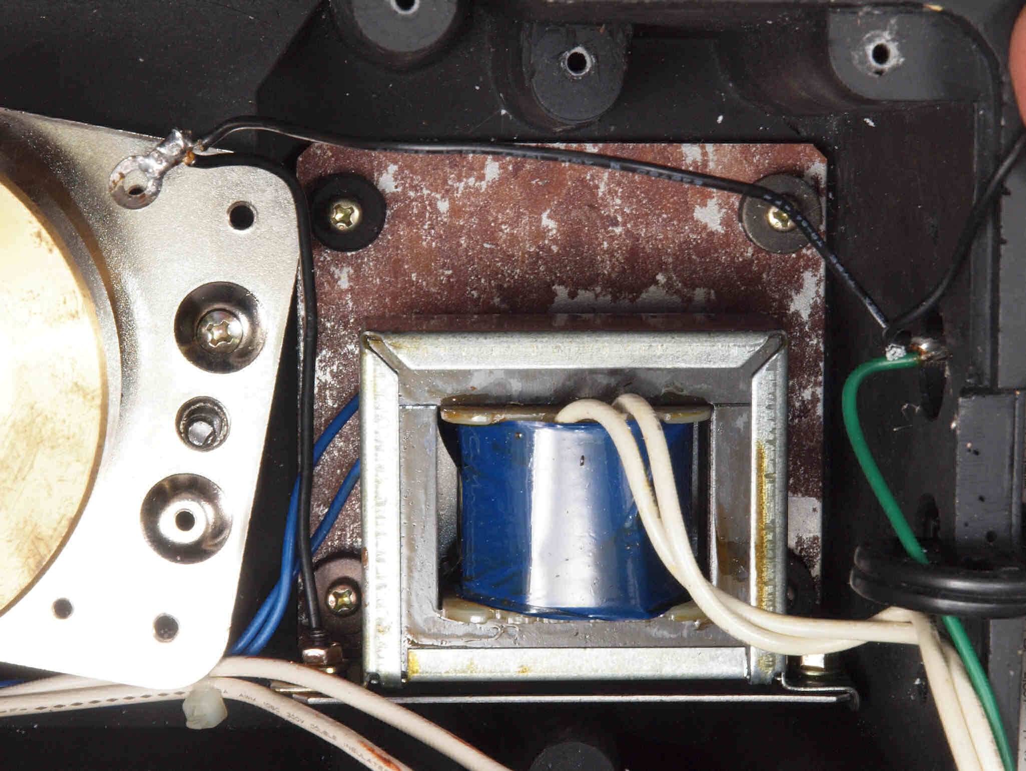 | B272. RY−1500D点検中 モータユニットベース「RS−1500」を取り+下蓋を取り、下から見る。トランス取付金具にサビ発生。 | ||||||||||||||||||||||||||||||||||||||