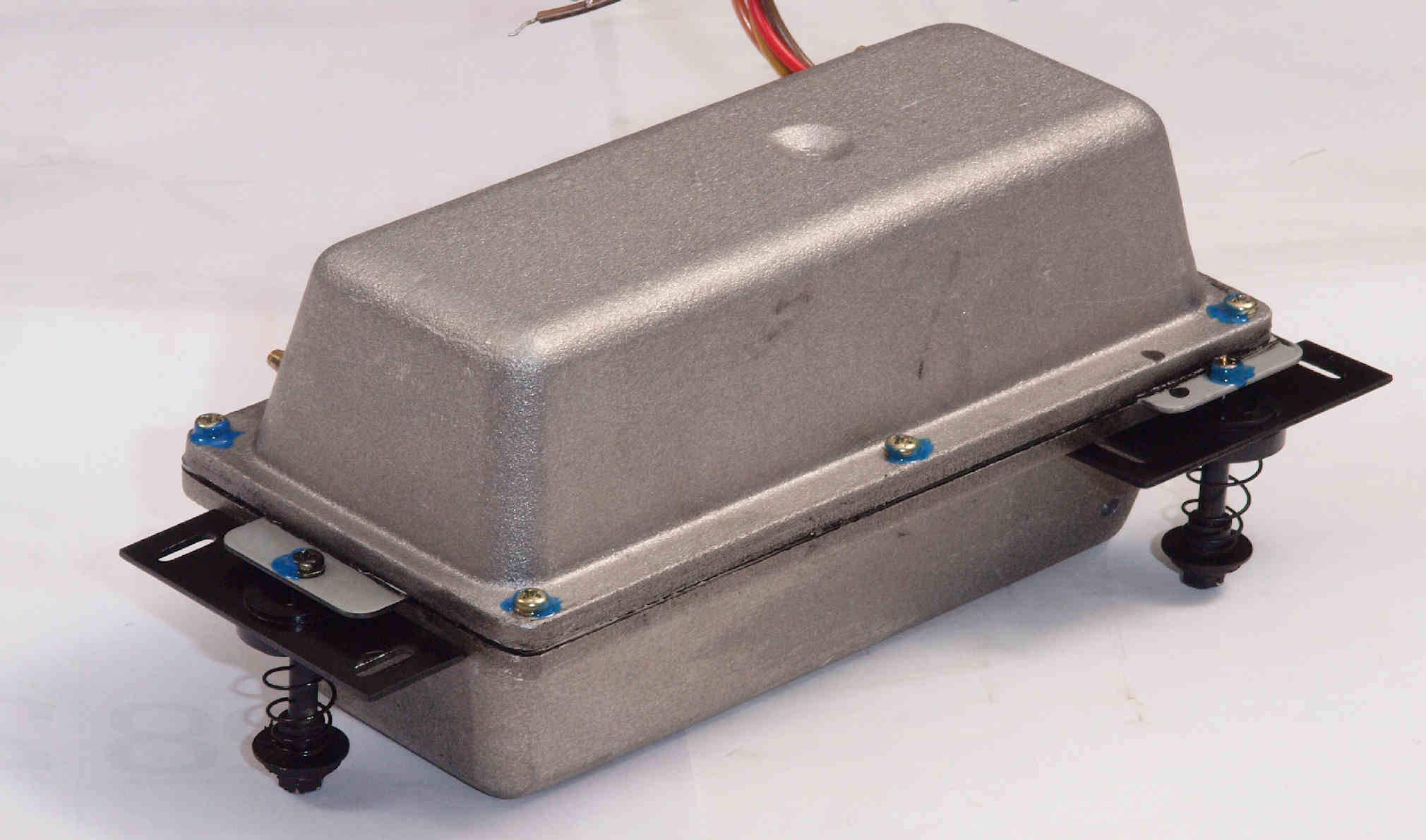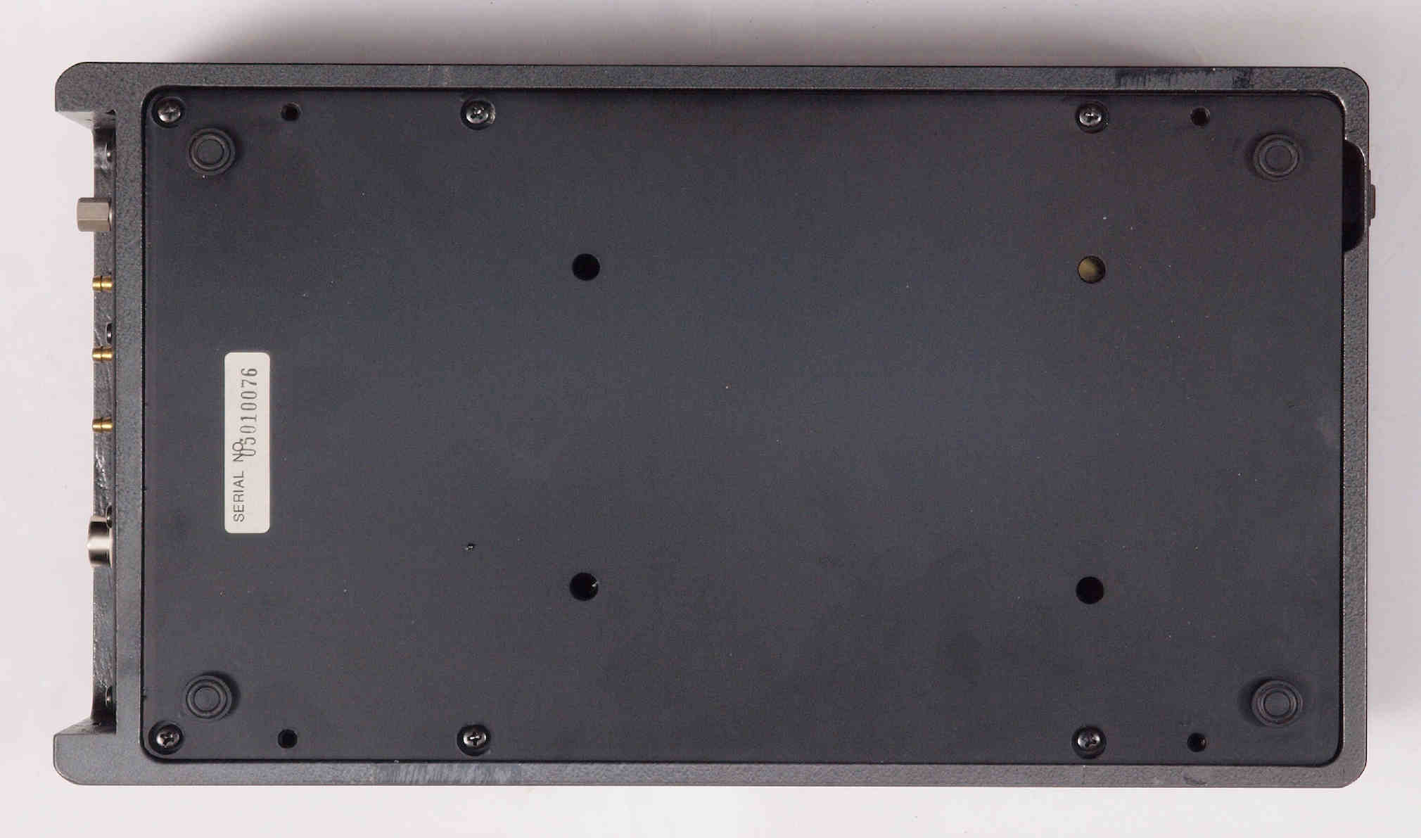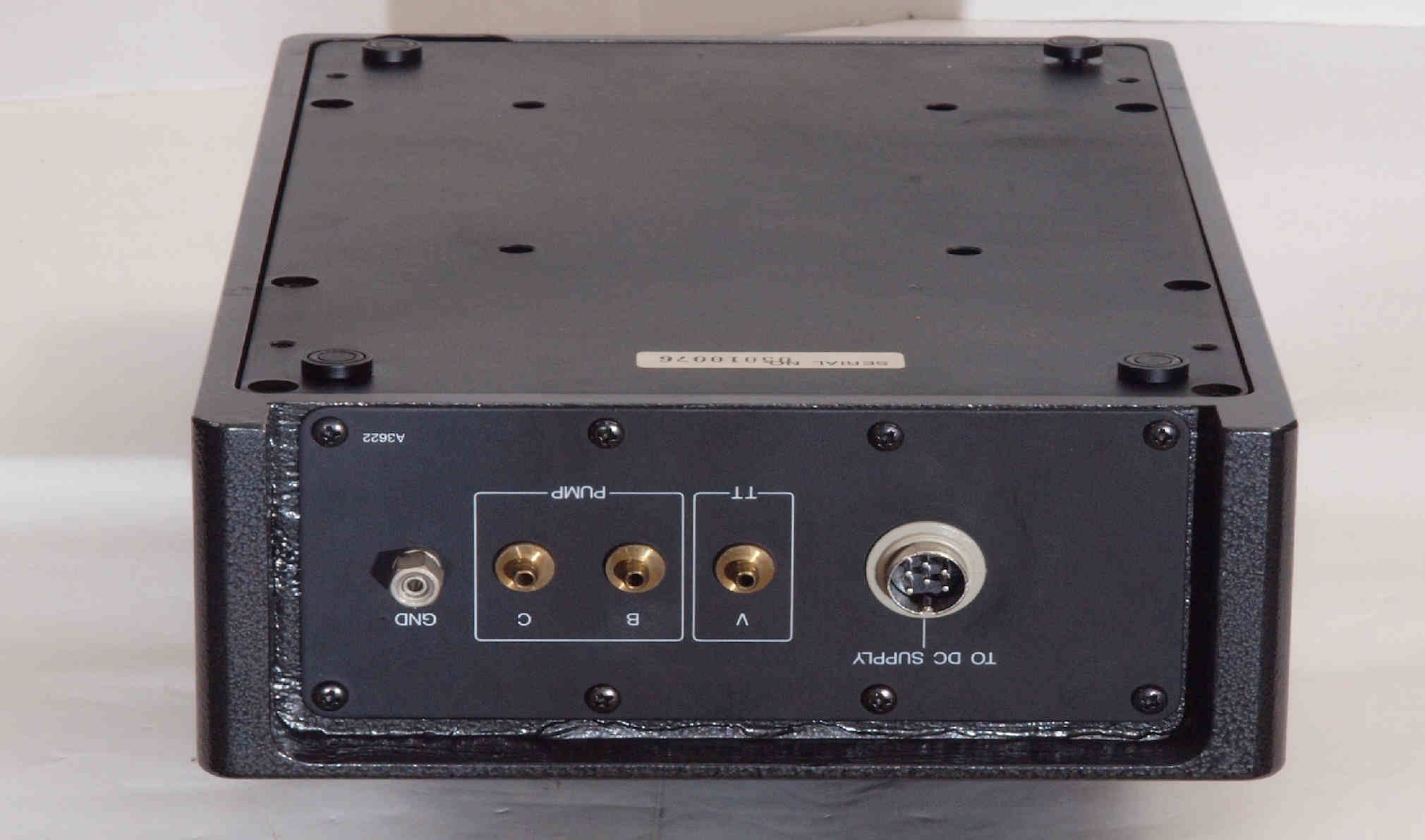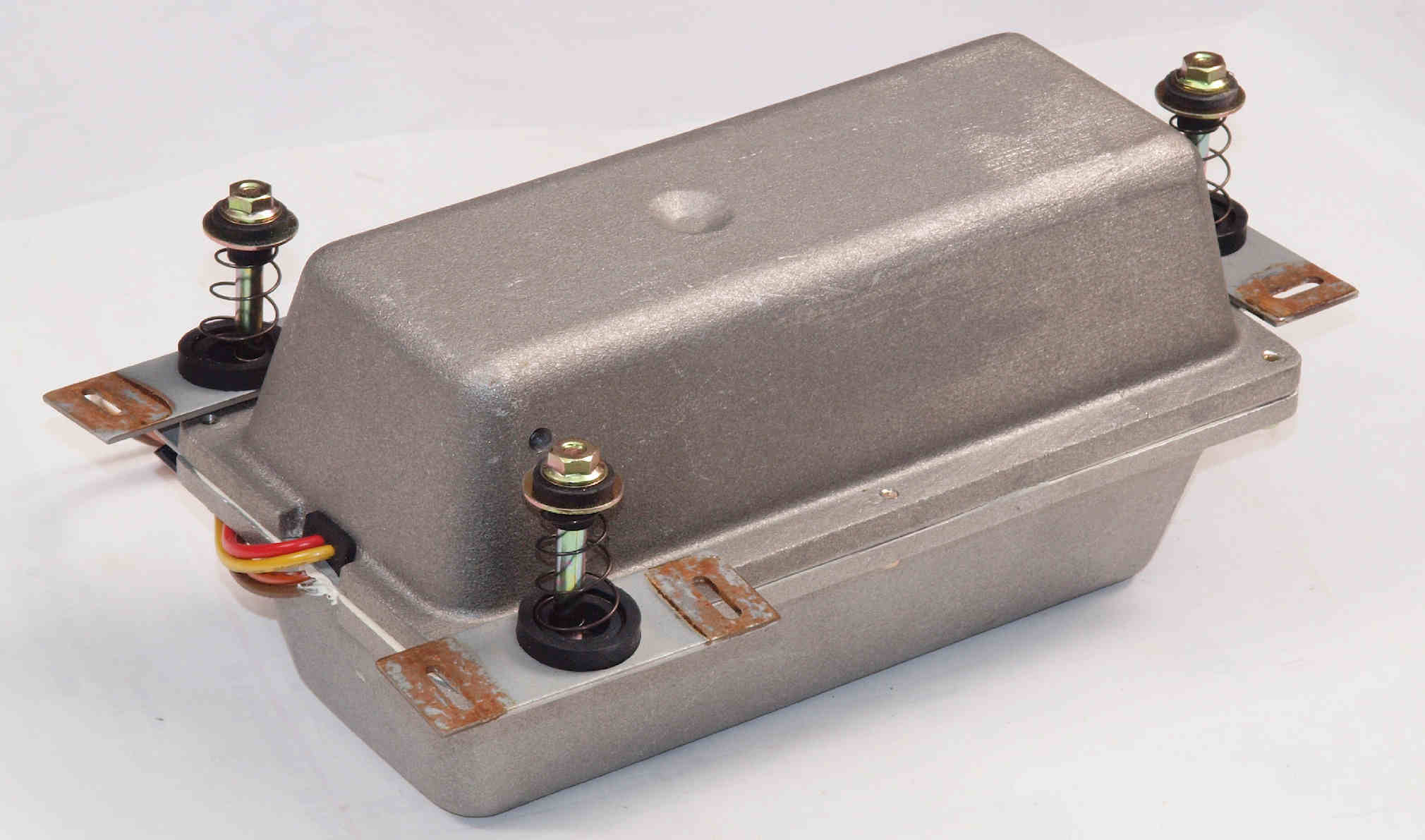| D422. 修理後 下から見る。ケースが鉄製なので、ICの放熱を助ける為、銅板を取り付け。 |