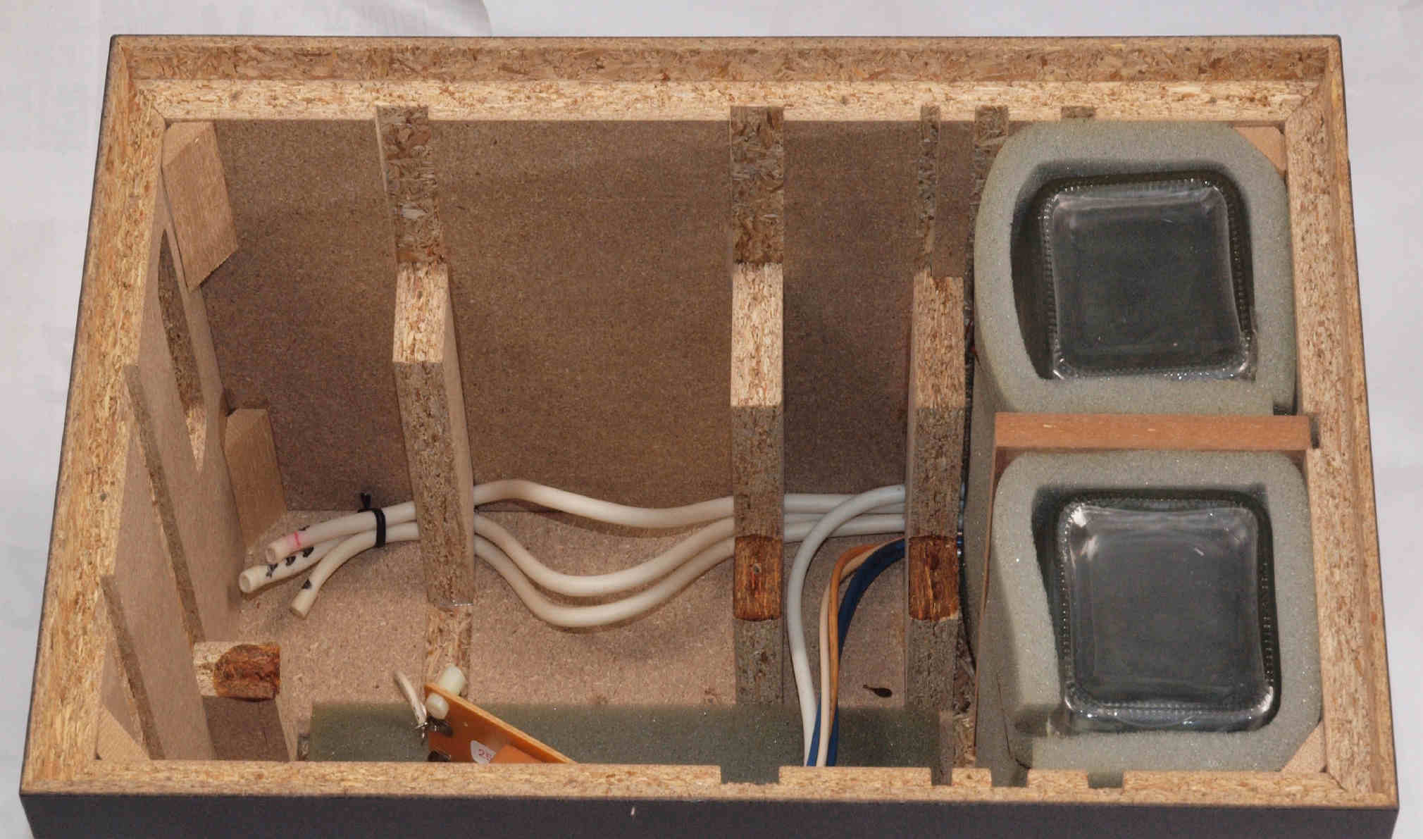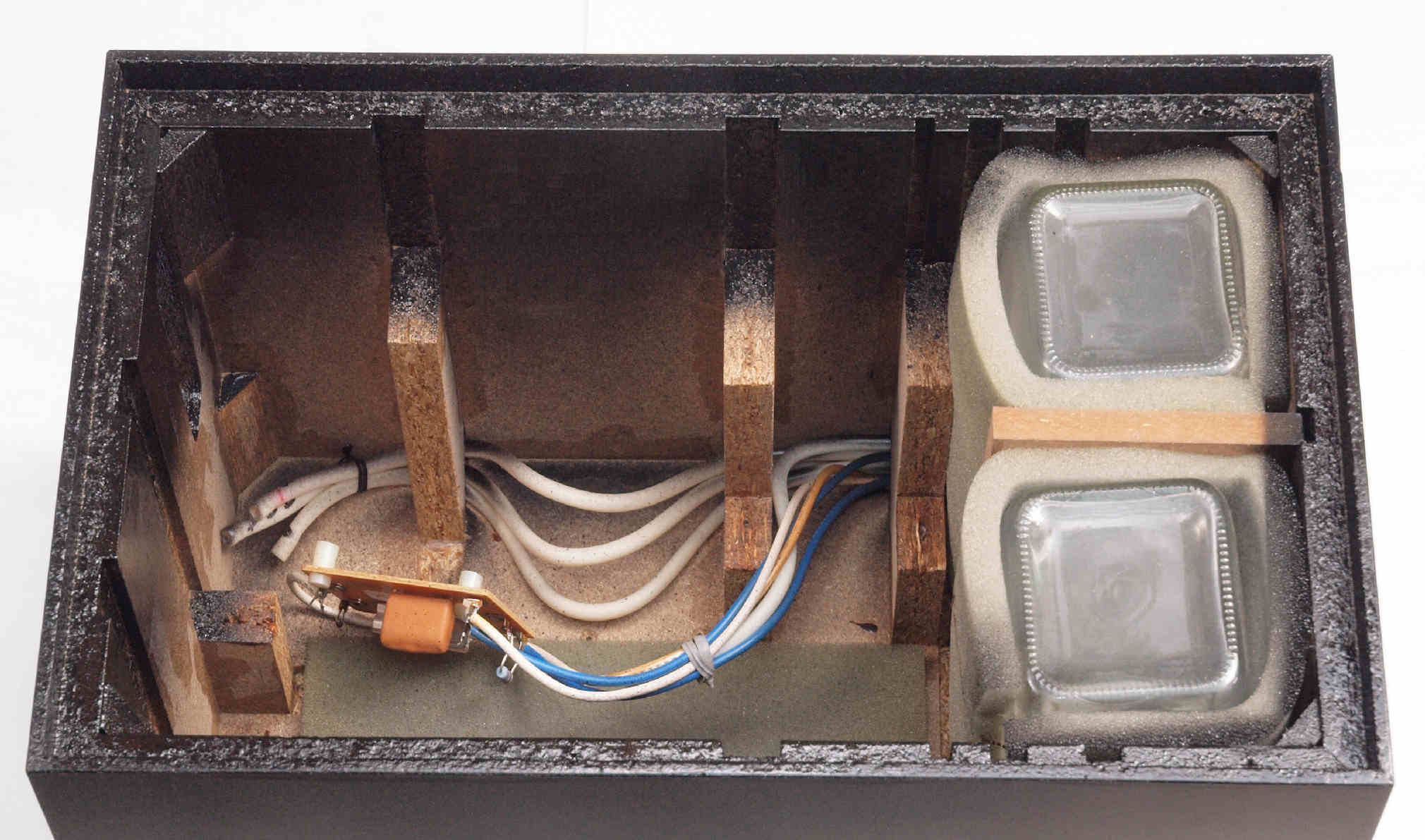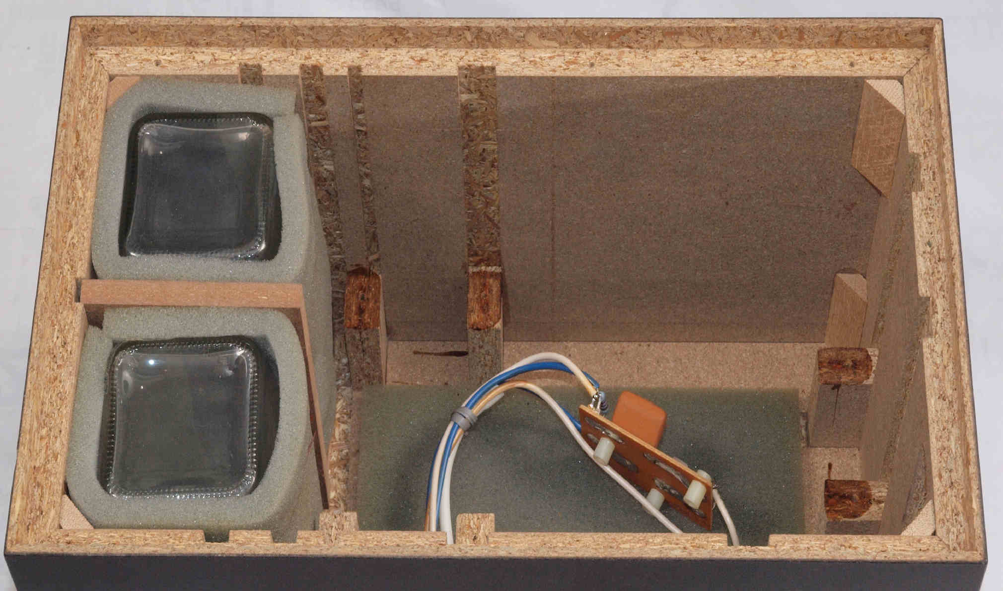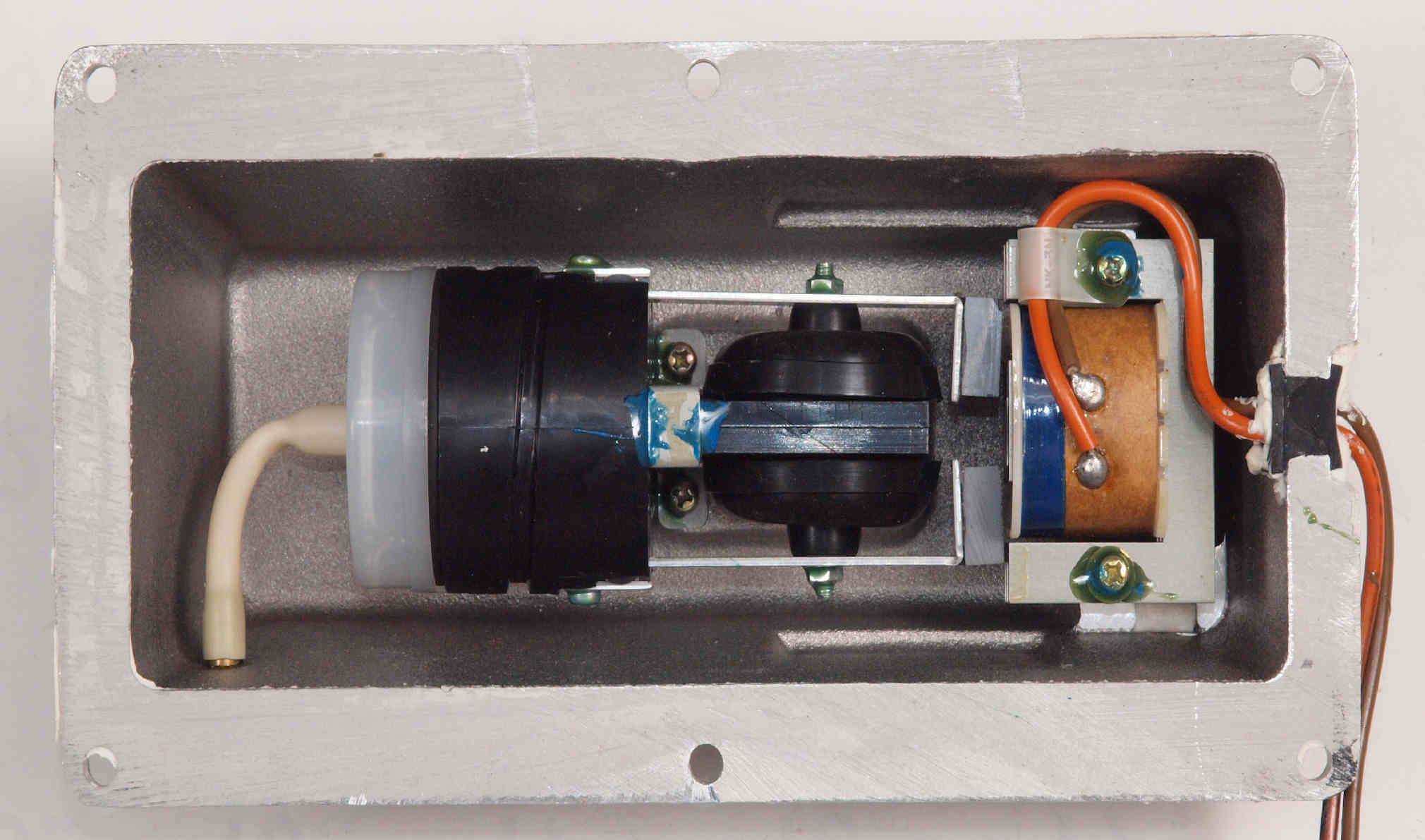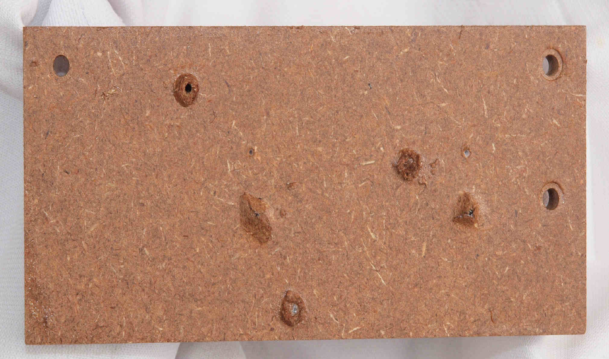 | C62. 修理中 木ネジで割れた、「ポンプ取り付け圧縮板」、「フューズ取付圧縮板」、ボンドを染みこませる。 |