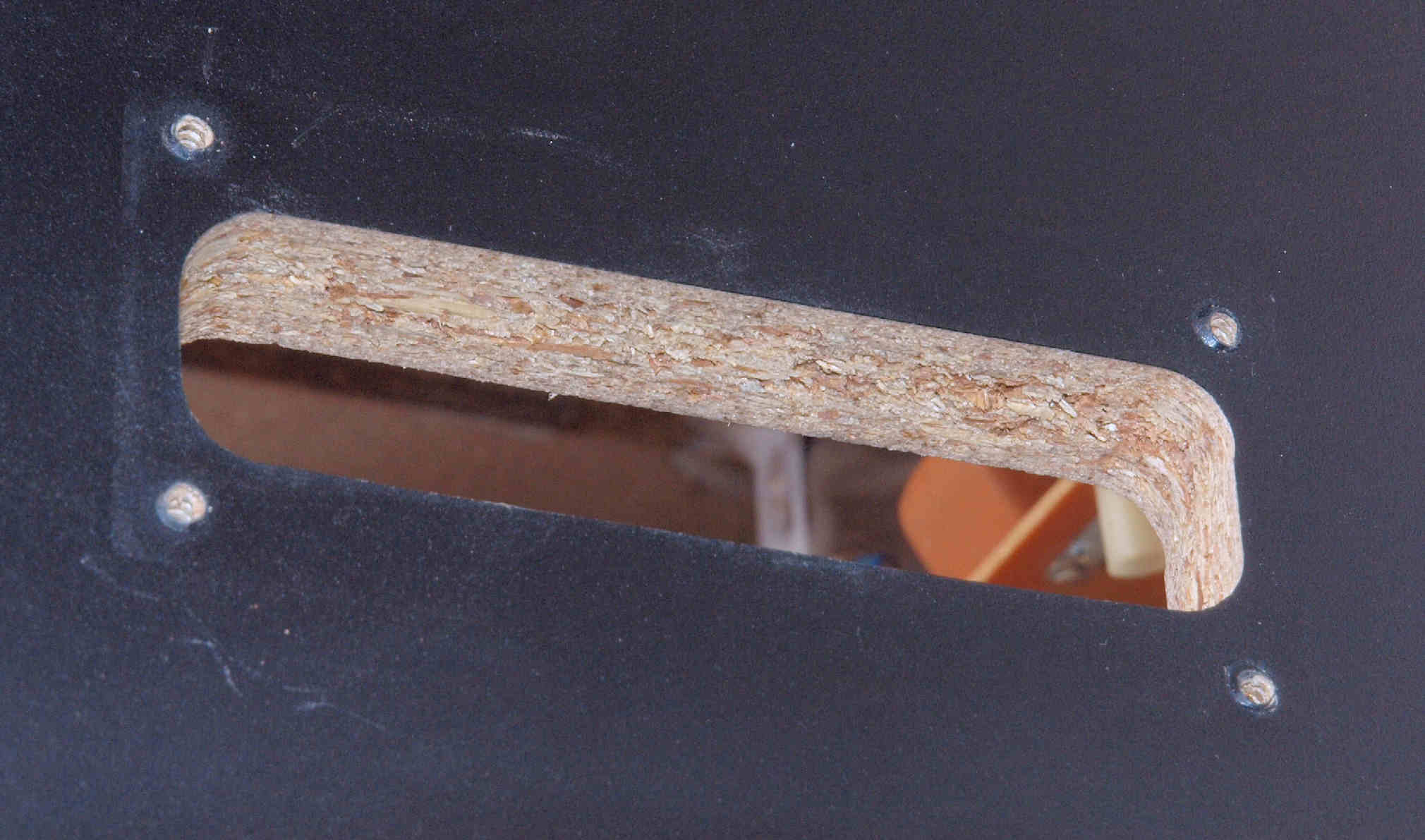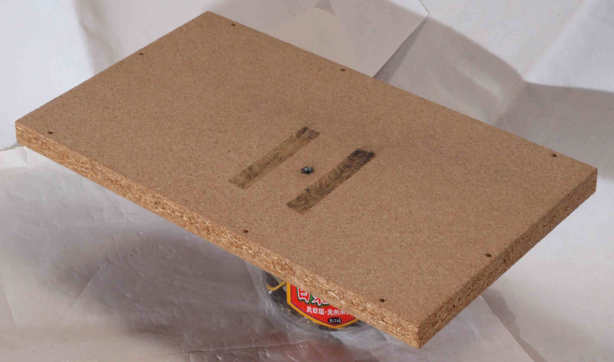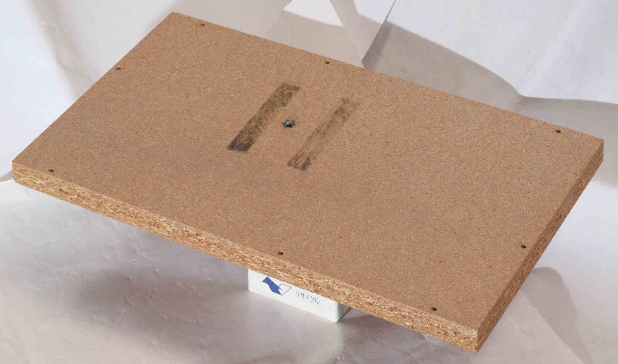 | C63. 修理前 木ネジで割れた、「ポンプ取り付け圧縮板」。 |