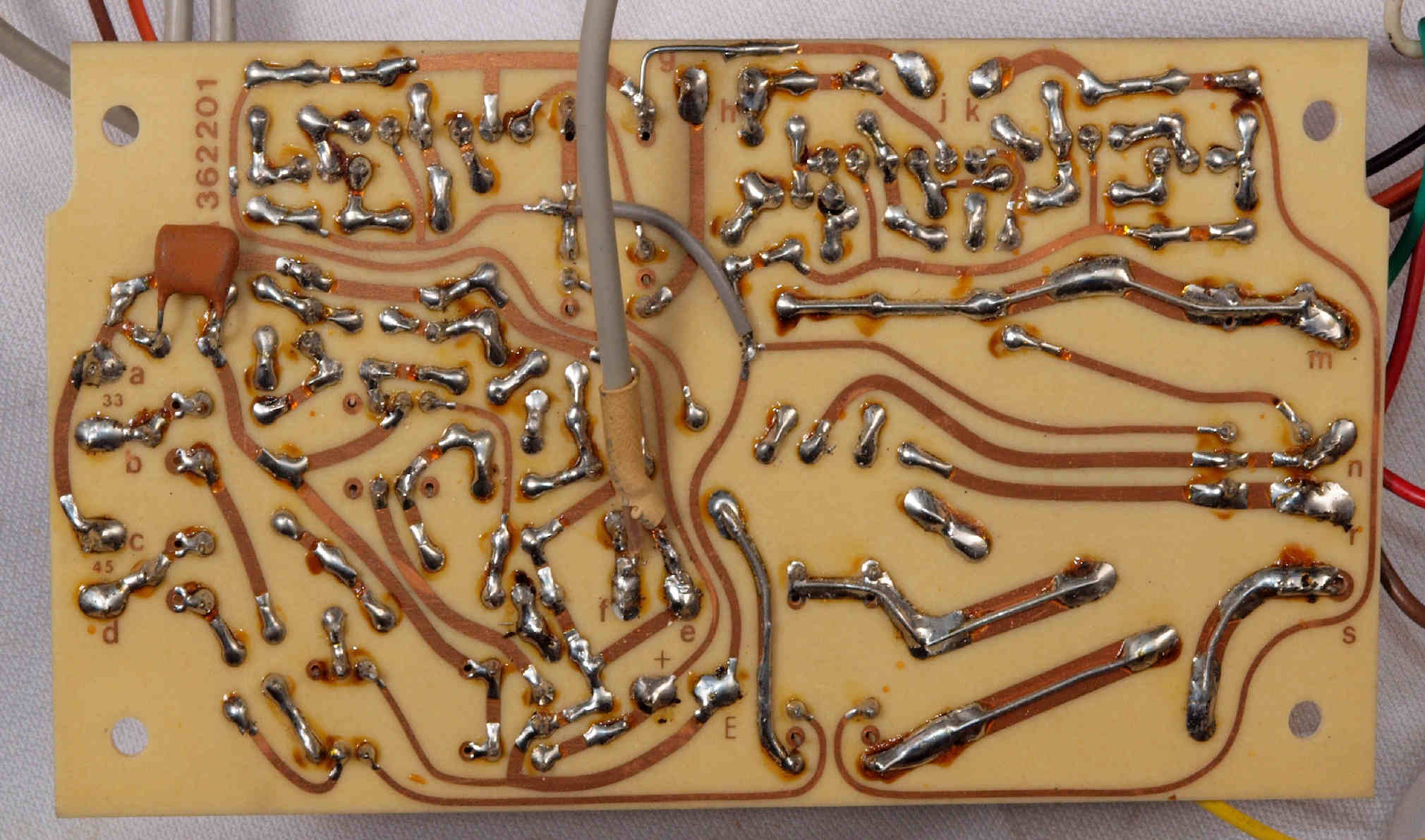 | C83. 修理(半田補正)後 フューズ基板裏。 |
