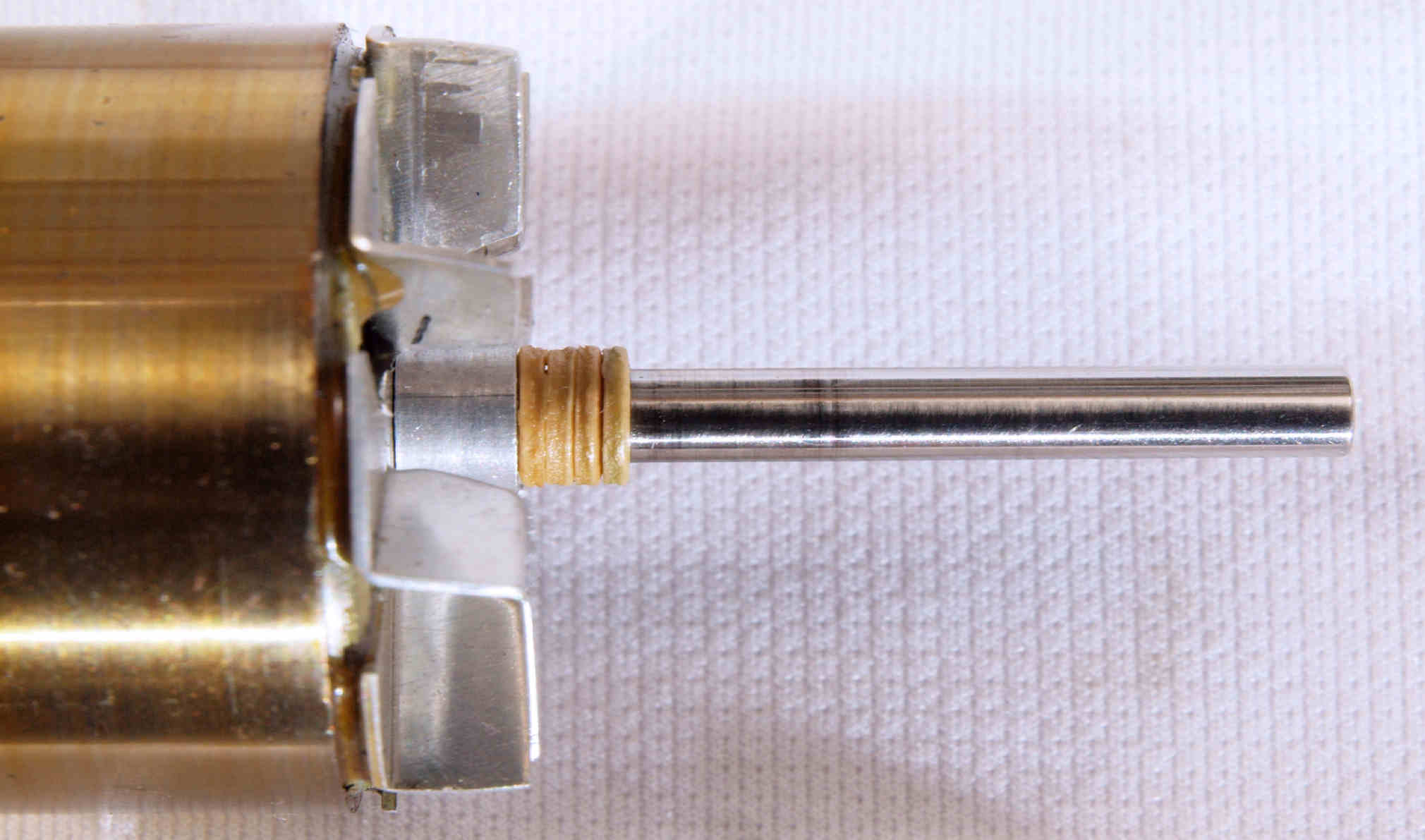 | D35. 修理中 モーター回転子(アマチュア)の軸、オイル切れで焼けた跡が見える。 |