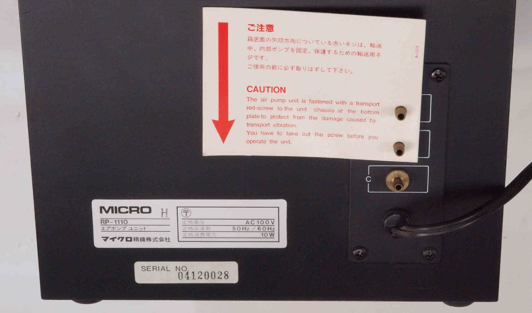 | A132. RP−1110点検中、 後から、電源入り口、吐出口見る。 |