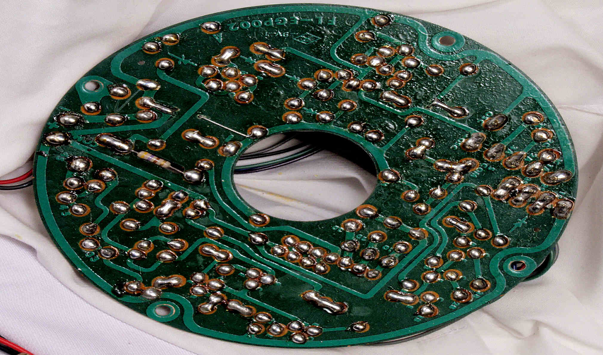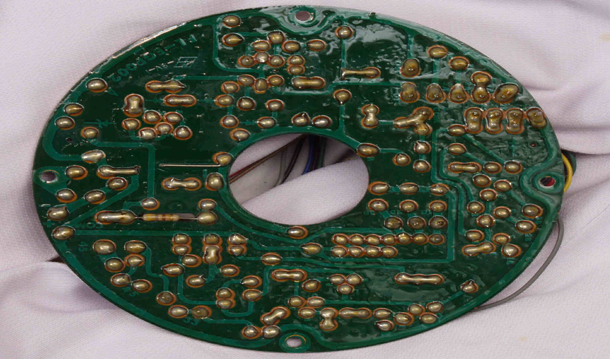 | C35. 完成駆動回路基板裏。余分なフラックスを落として、コート液を塗る。 | ||||||||||||||||||||||||||||