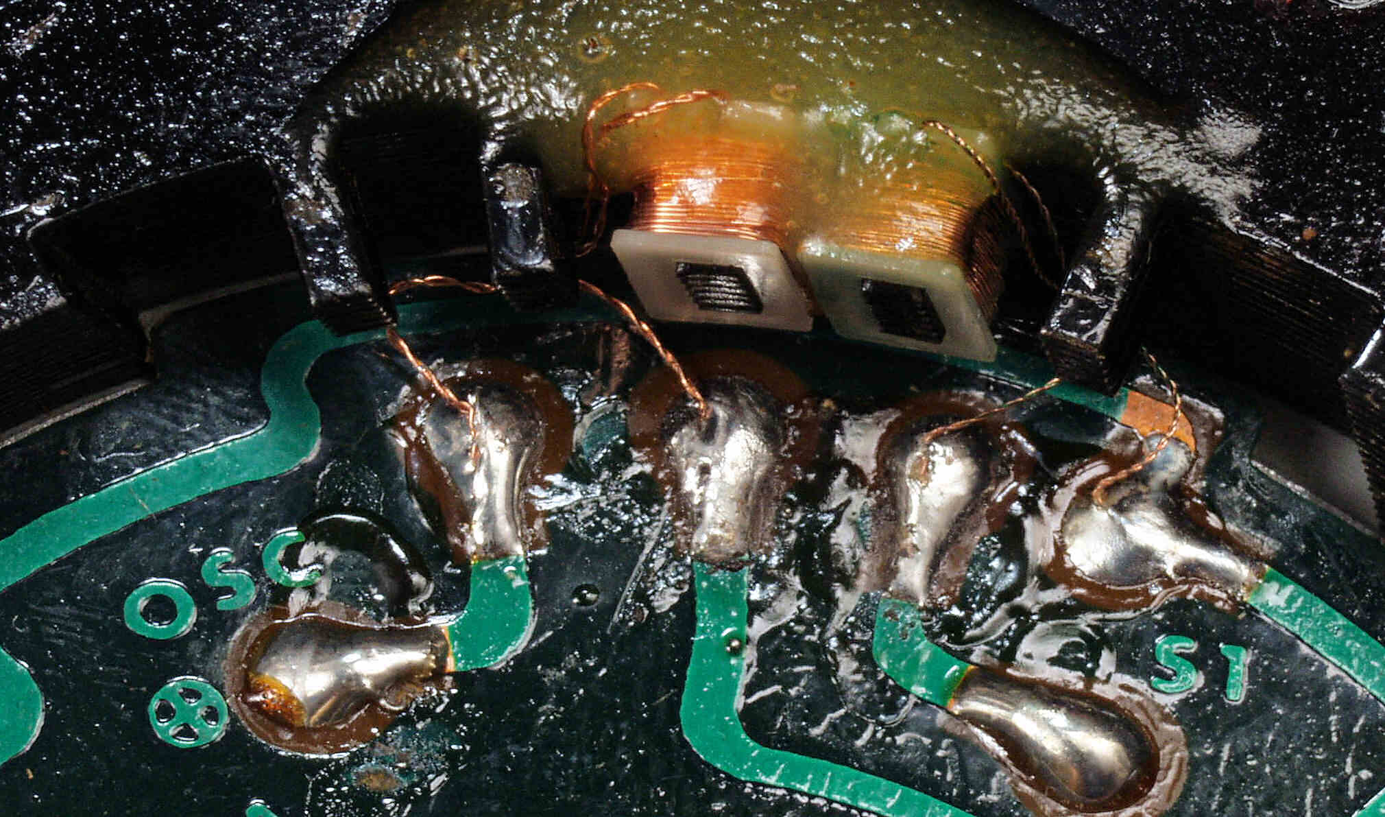 | C93. 完成モータ位置コイル基板S3。余分なフラックスを落として、コート液を塗る。 | ||||||||||||||||||||||||||||